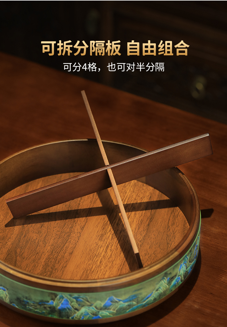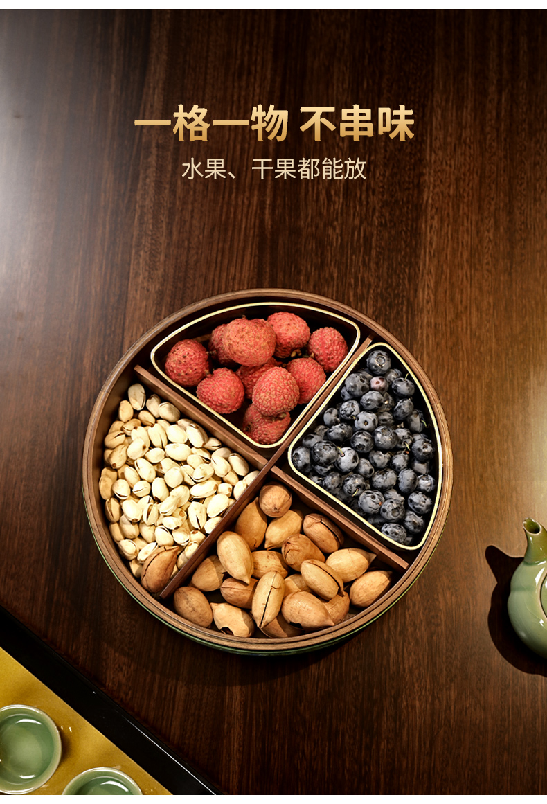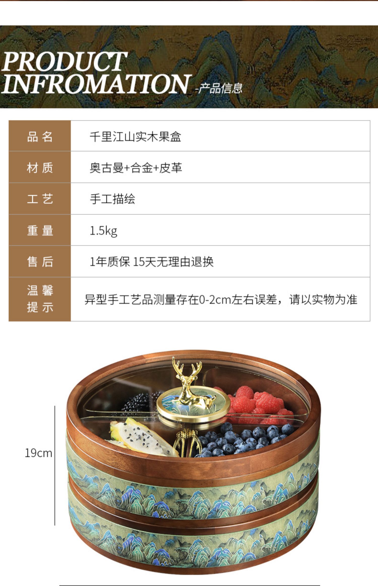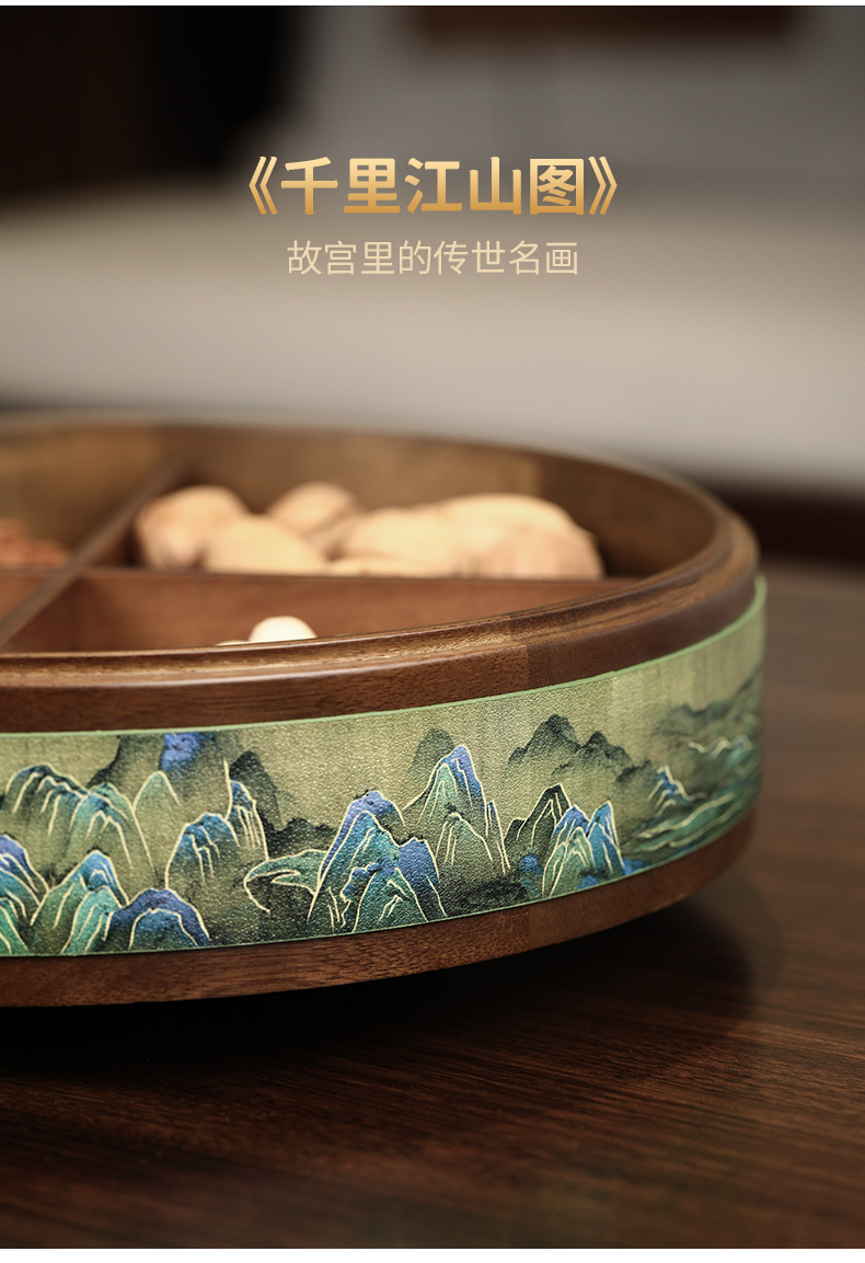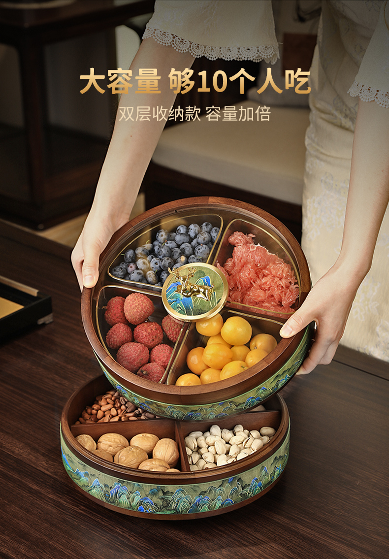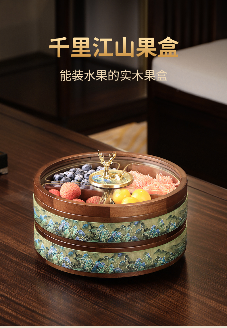 新中式糖果盘2023新款水果盘客厅家用茶几高档轻奢实木干果收纳盒 月销 55千里江山胡桃木双层果盒