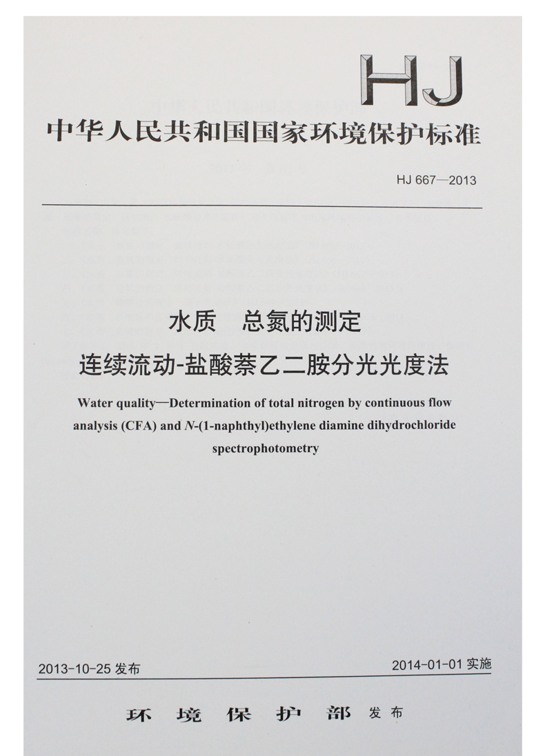 HJ 667-2013 水质 总氮的测定连续流动-盐酸萘乙二胺分光光度法 国家标准 国标GB 环境保护中国环境出版社135111295