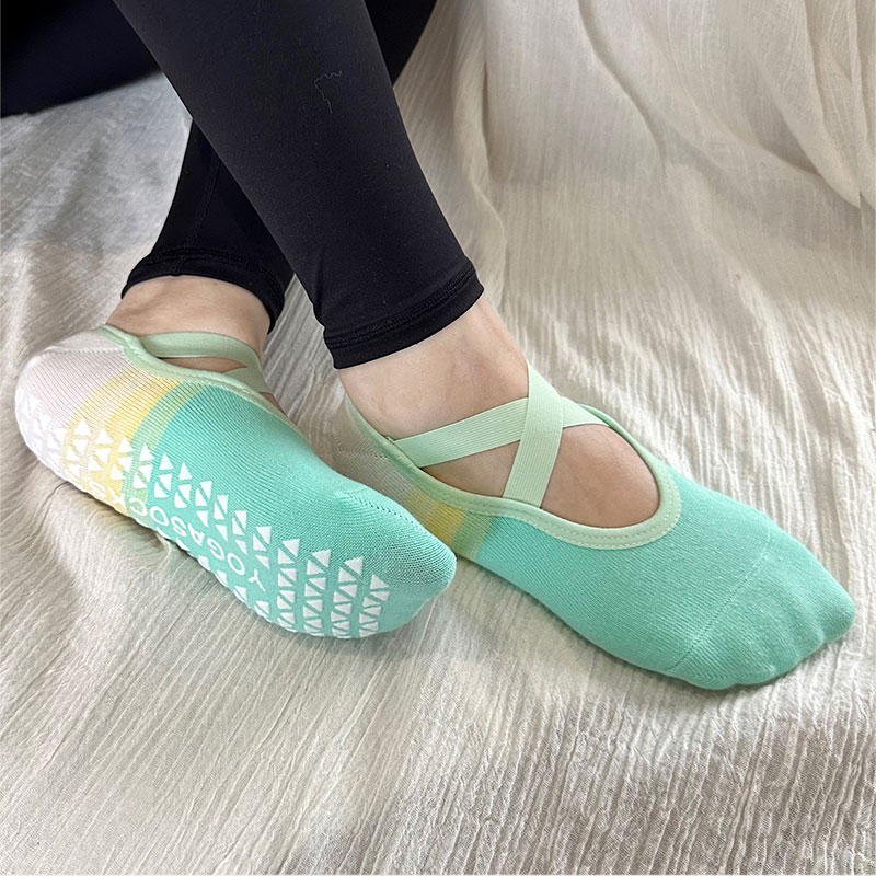【现货秒发】壁虎瑜伽【2503WZ351】渐变交叉带防滑瑜伽袜