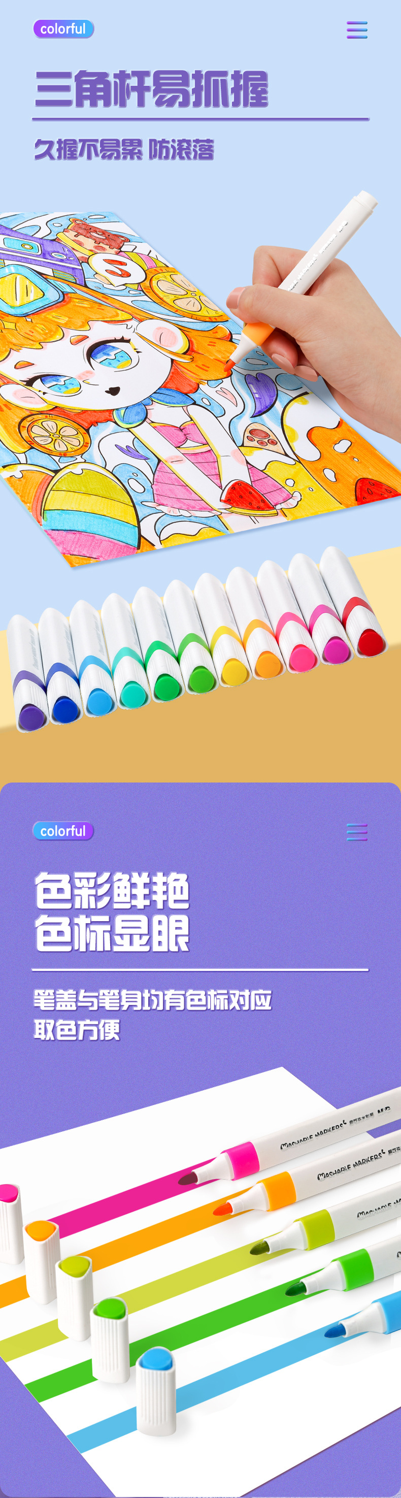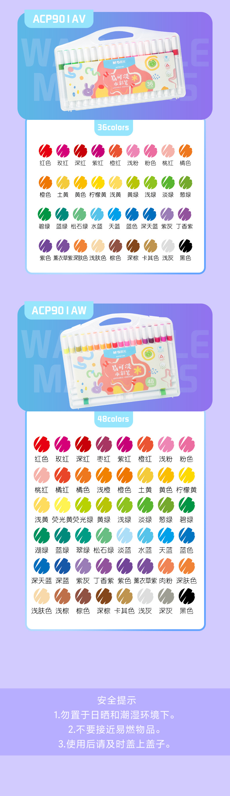 【易握三角杆!12/24/36/48色】晨光ACP901AT水彩笔 儿童可水洗无毒画笔套装 幼儿园彩色笔文具 不性墨水 无异味 以水为溶剂 不含酒精