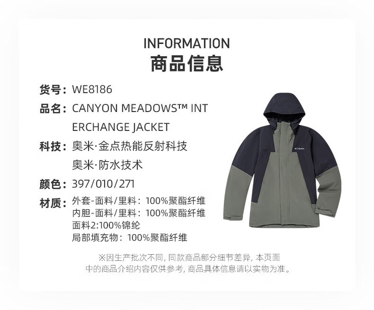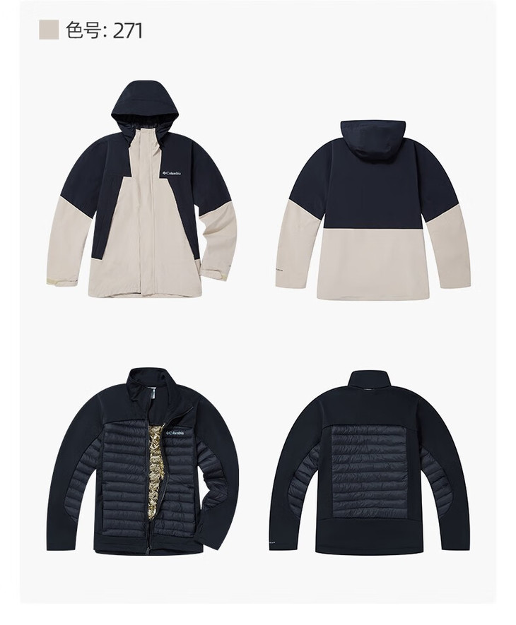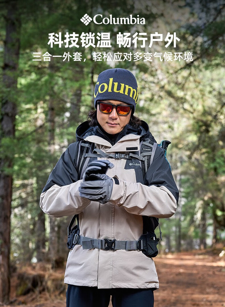 哥伦比亚男式夹棉内胆三合一外套WE8186