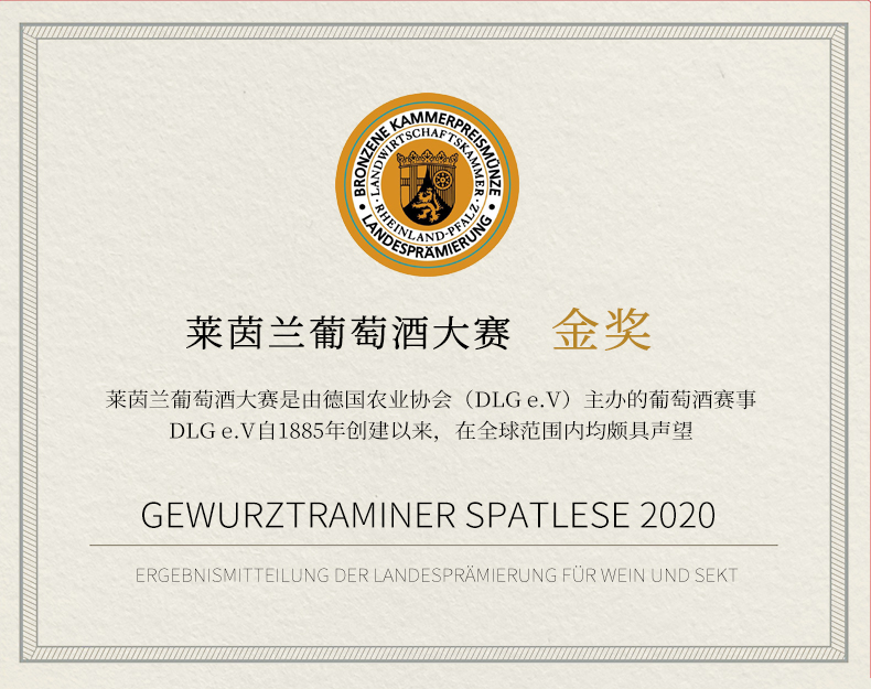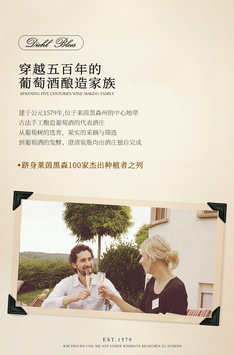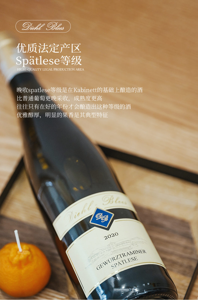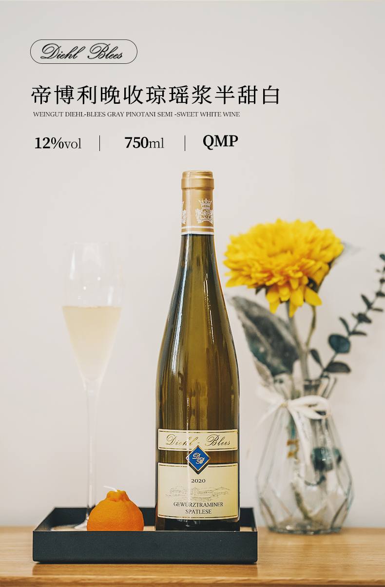 【莱茵黑森葡萄酒大赛金奖】德国帝博利琼瑶浆晚收半甜白葡萄酒 QMP级 12.5%vol