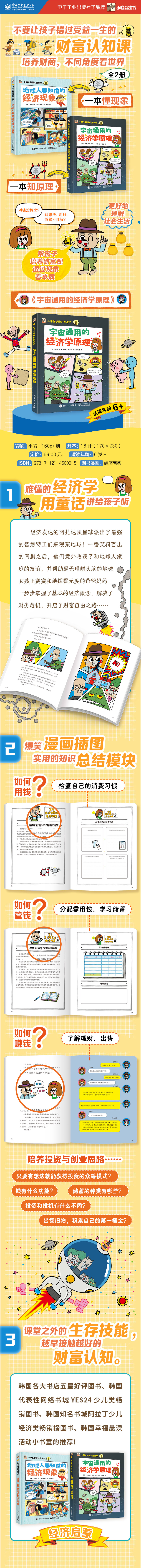 国际童书奖项认可的作品、韩国超受欢迎的作绘者:韩国各大书店(教保文库、YES24、阿拉丁)五星好评图书、韩国代表性网络书城YES24少儿类畅销图书、韩国知名书城阿拉丁少儿经济类畅销榜图书、韩国幸福晨读活动小书童的推荐!天马行空、幽默有趣的外星人地球征服记:阿扎达卡星球的特工们来地球执行秘密计划,意外入住了地球人家的阁楼,短短时间内他们不仅侦查清楚了地球生活,还帮助“月月光”地球人家庭的小女孩开启了财富自由之路……课堂学不到的生存技能:一本知原理——《宇宙通用的经济学原理》。在学校中老师不会教孩子什么是经济,也不会教孩子怎么赚钱、怎么管钱、怎么用钱。本书通过宇宙*强经济间谍和爱挥霍的地球人家庭之间爆笑故事,轻松学习经济概念。充满趣味地帮助孩子初步总体地理解经济原理,建立日常理财观念,培养理财习惯,掌握经济、理财的知识。累积成为富翁的智慧。爆笑漫画插图+实用的知识总结模块:每段小故事告一段落后,都会有具体的经济知识总结,帮助孩子提炼重点,掌握概念,并付诸理财实践。