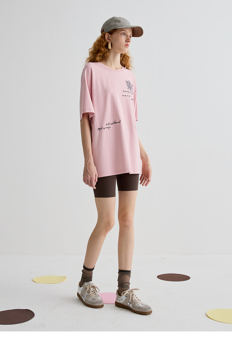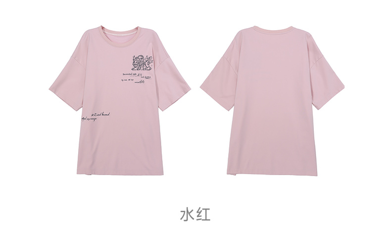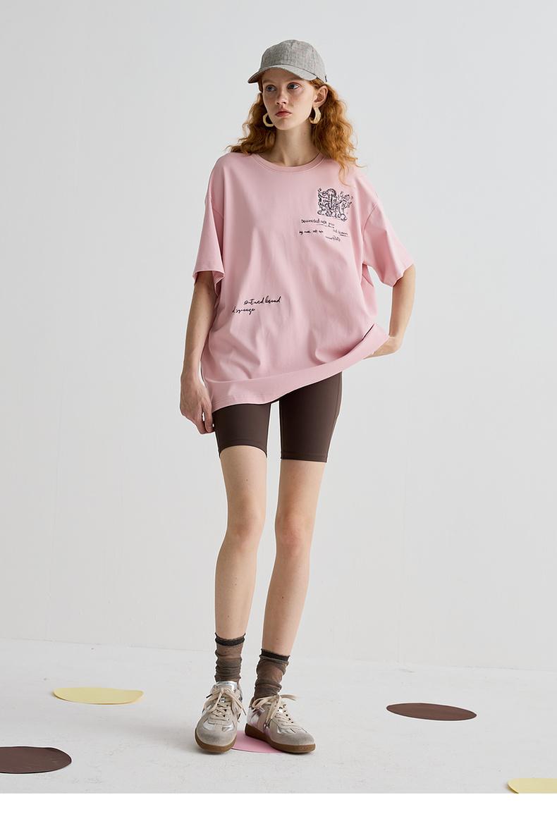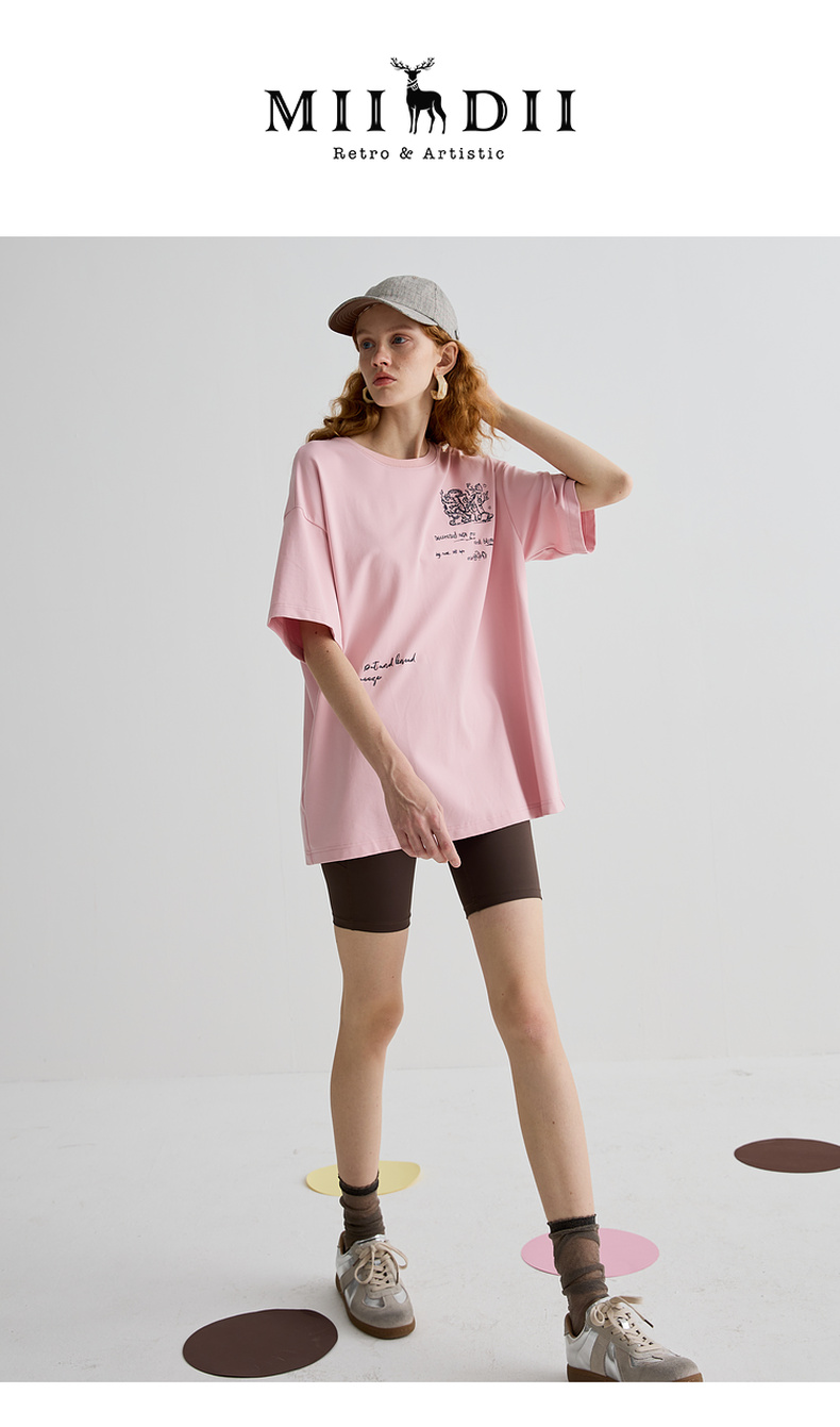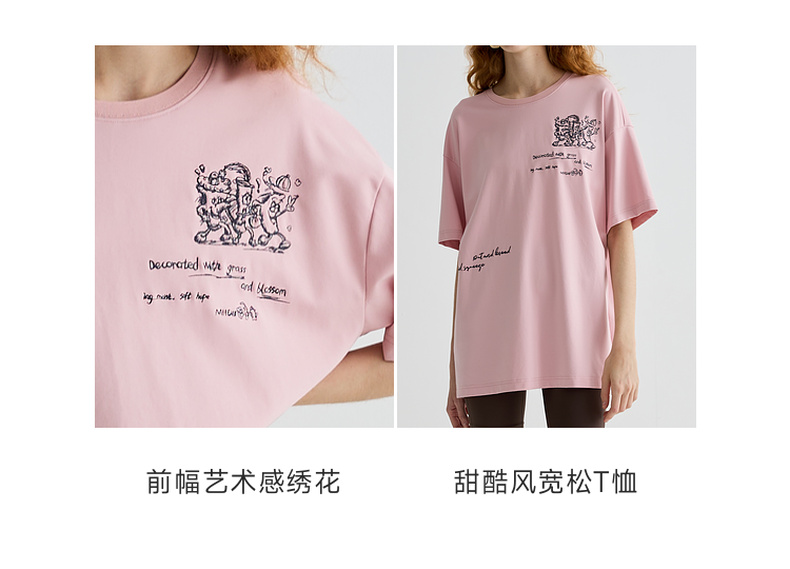 谜底T恤短袖女2025夏季新品休闲日常百搭绣花宽松上衣252MT0693