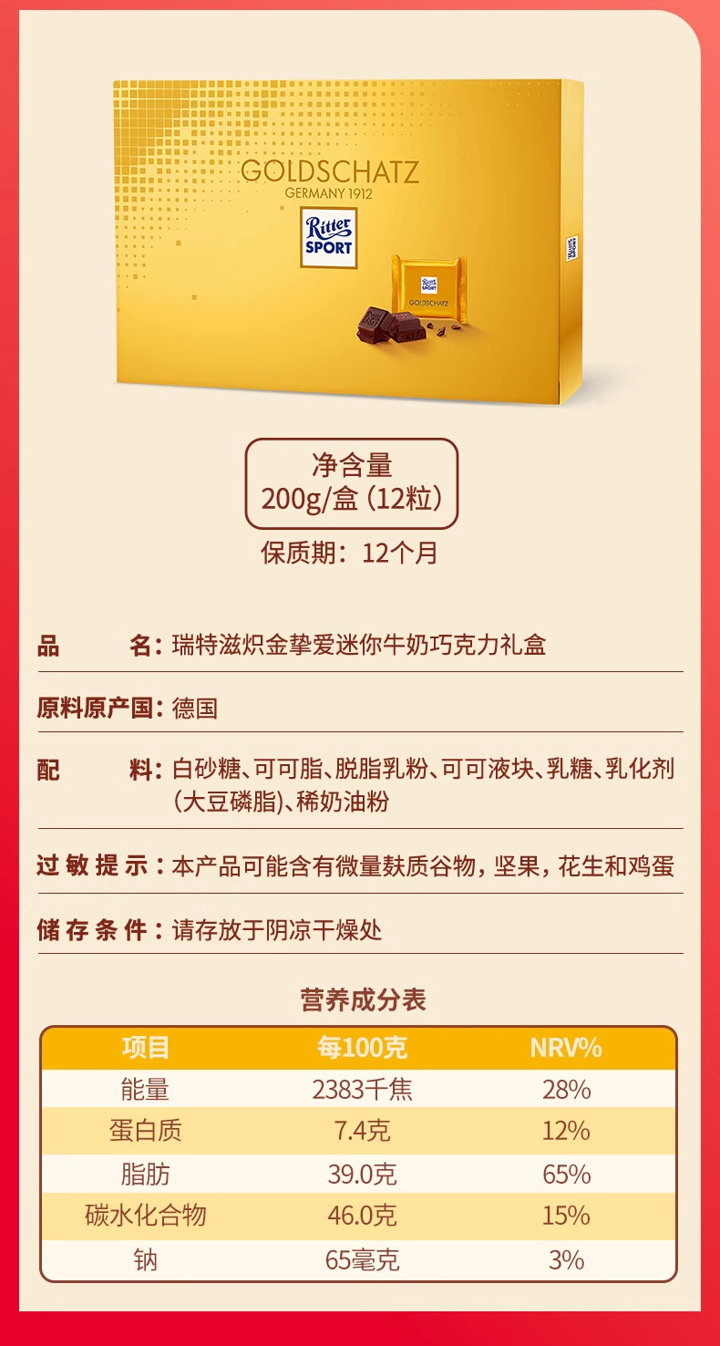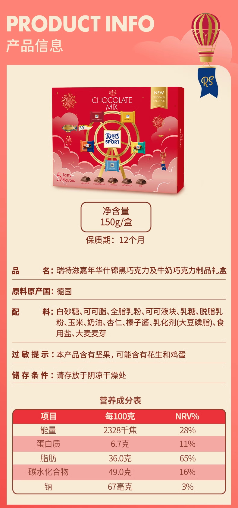 【中欧班列精选】德国进口瑞特滋嘉年华什锦/炽金挚爱牛奶巧克力150g礼盒装