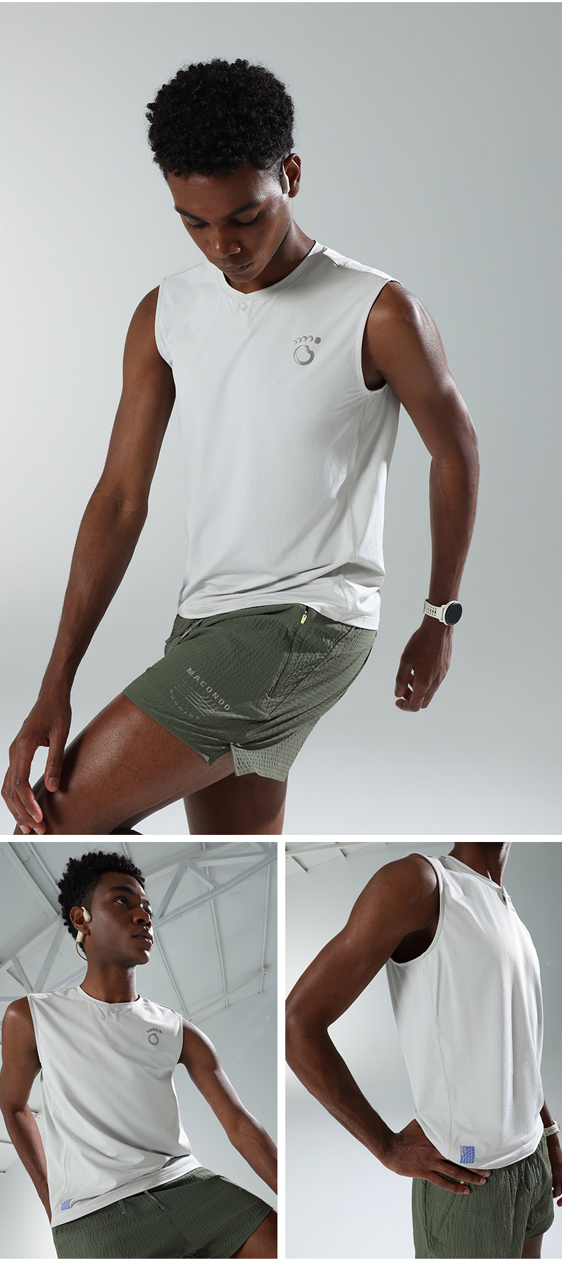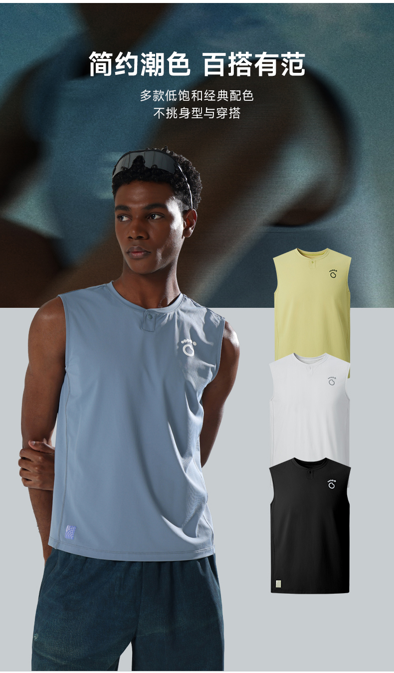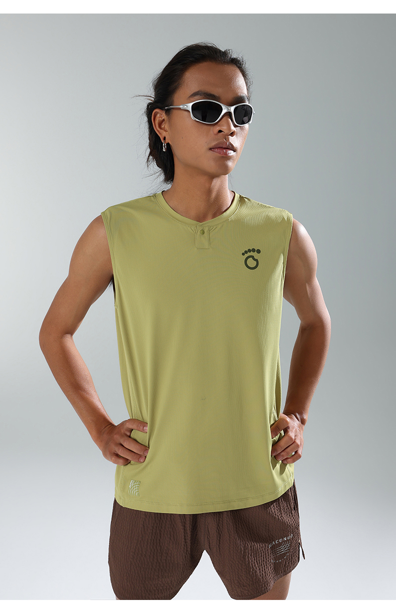 马孔多 | 男子跑步背心速干无袖亨利领吸湿排汗凉感运动背心防晒