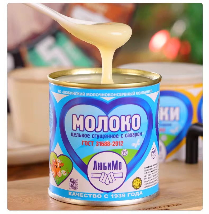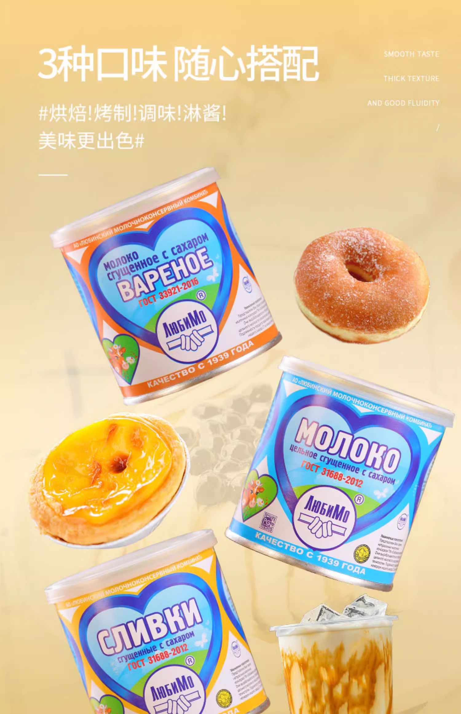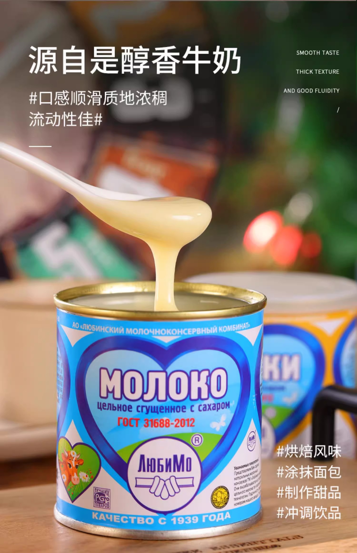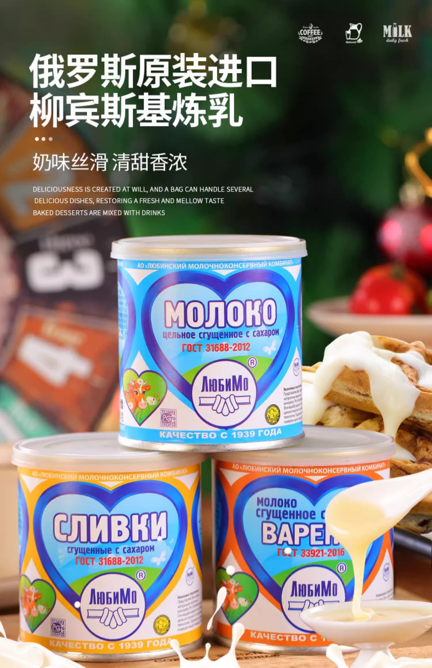 【中欧班列精选】俄罗斯进口柳宾斯基牌经典原味煮制浓缩奶油加糖炼乳罐装380g/罐APX
