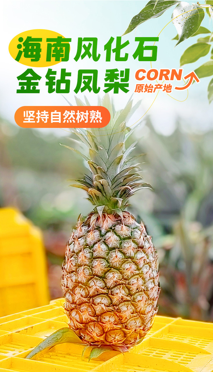 海南【风化石地金钻凤梨】自然树上熟 汁水香甜 风味更浓郁 果肉细腻 口感绵密!