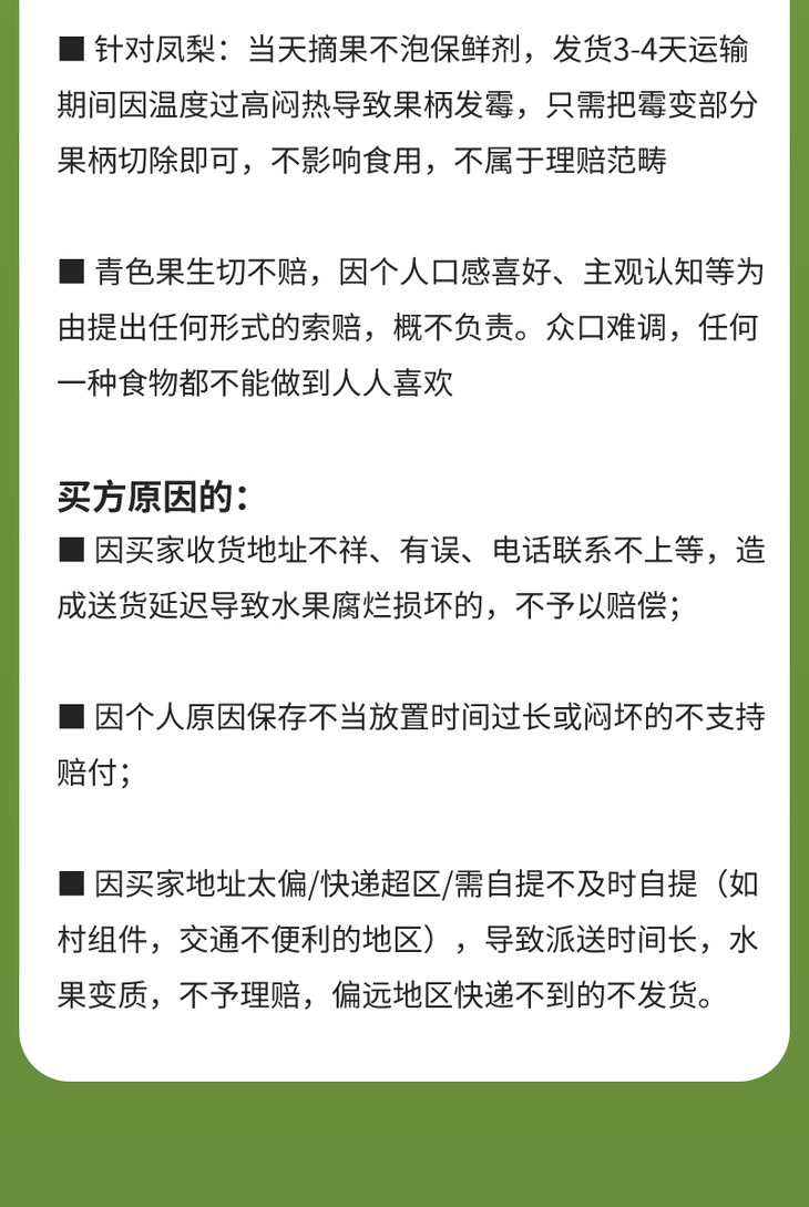 【特别说明】因生鲜产品具有特殊性和相关规定,下单时请一定认真确认收件信息,因客户原因导致转寄、延派、误派、擅自拒收、退货等不在理赔范围。