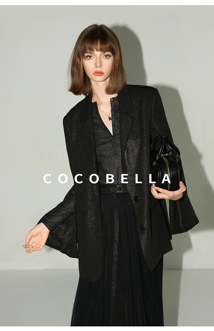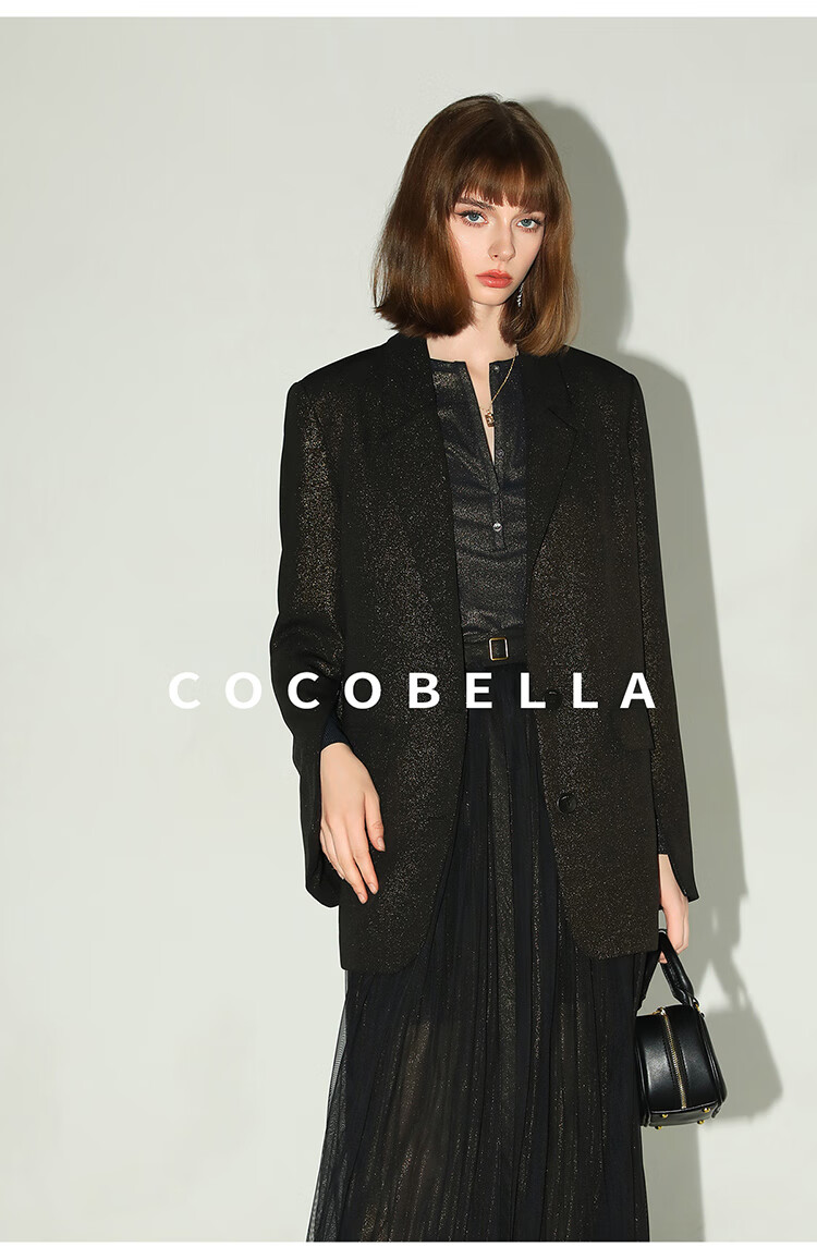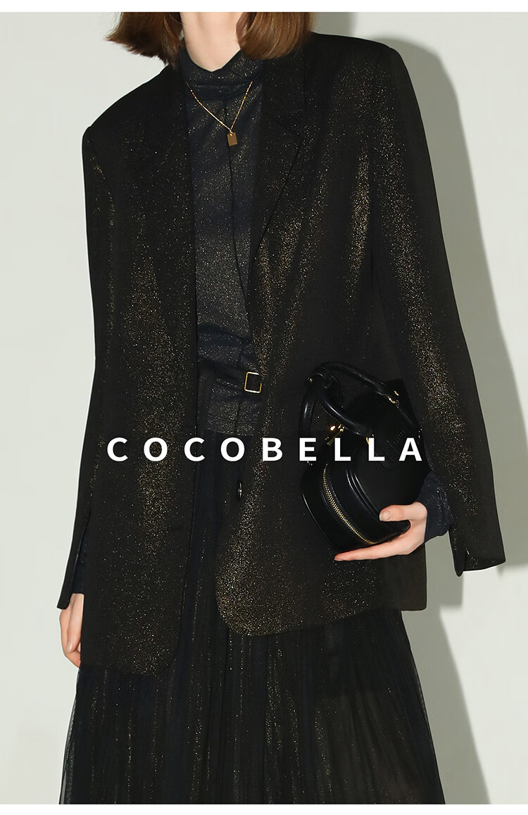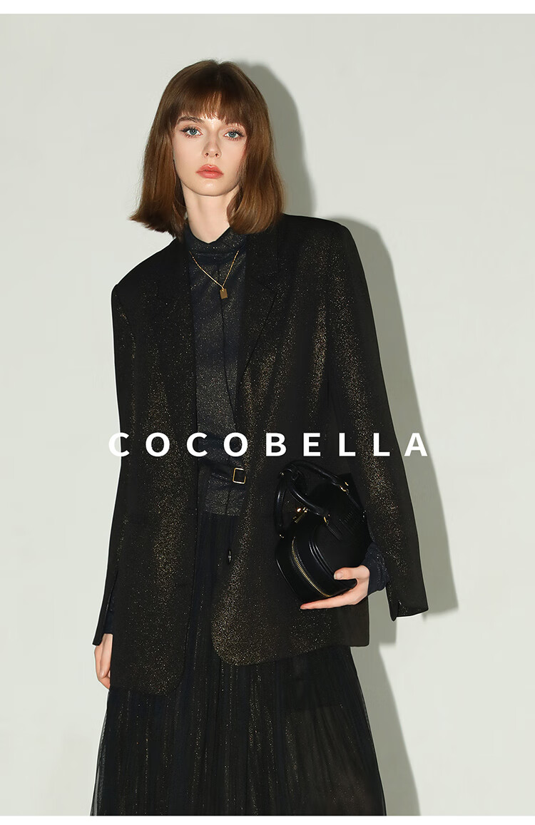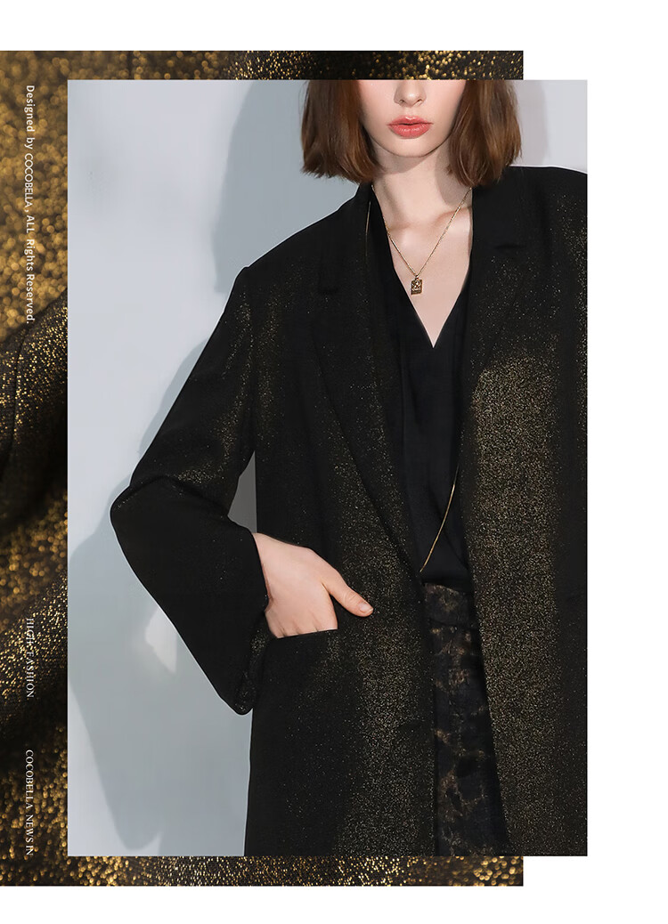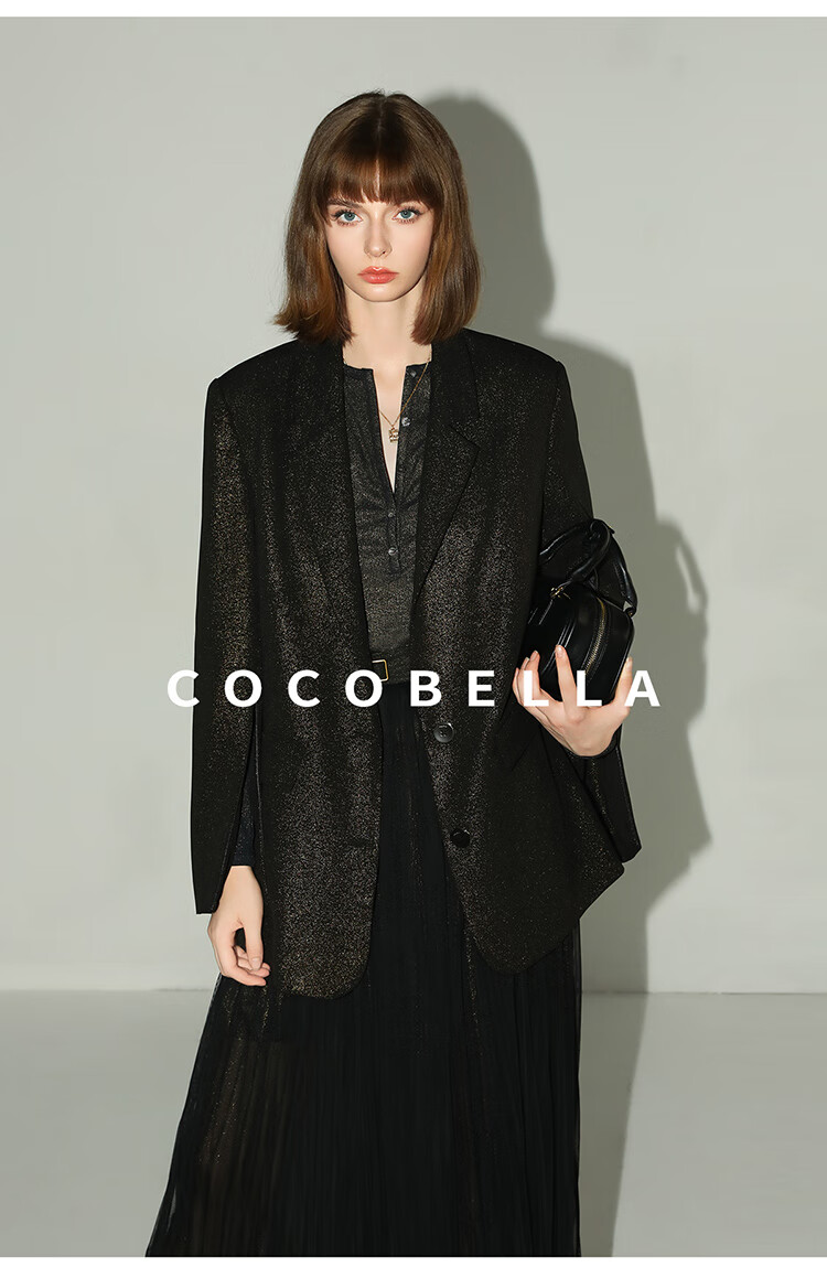 COCOBELLA奢感烫金两穿开叉袖西装秋冬商务通勤西服外套SI43B