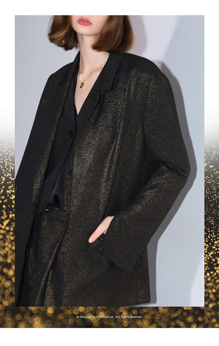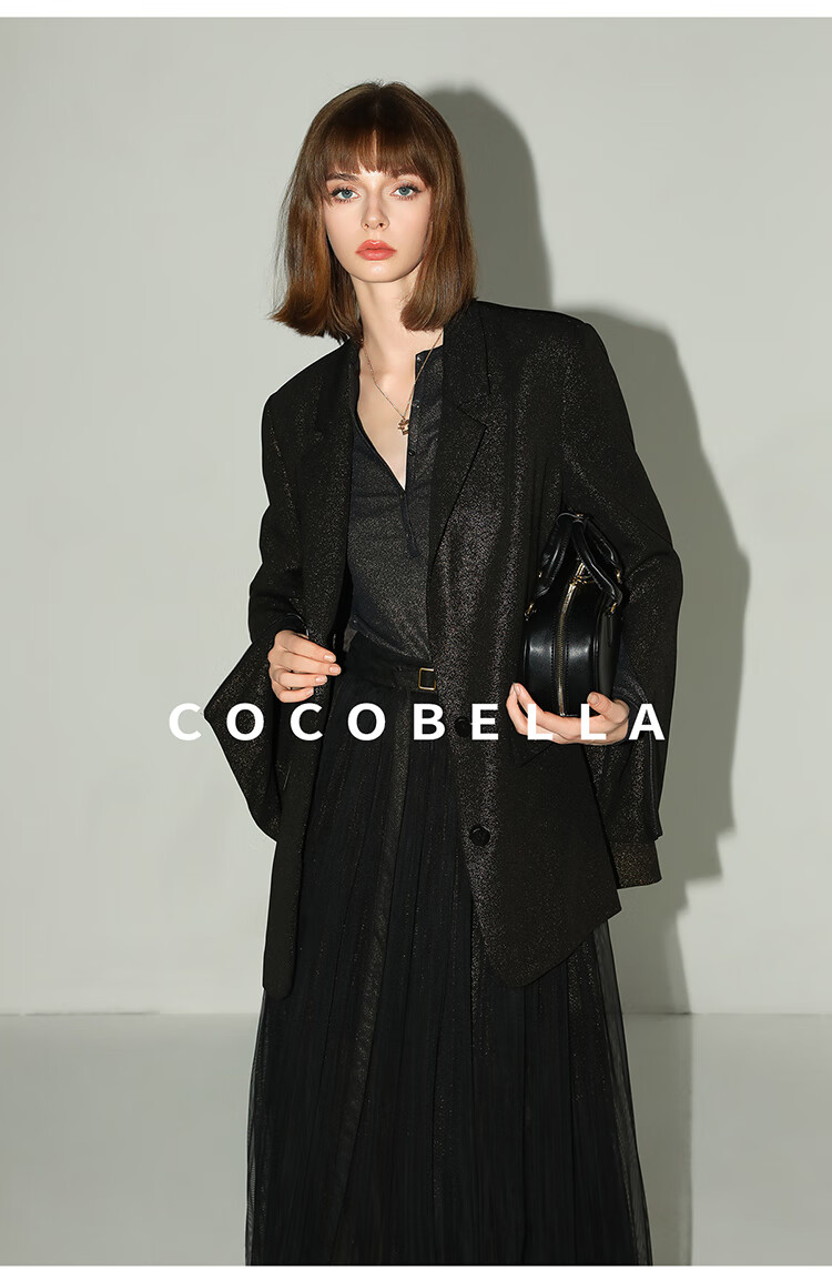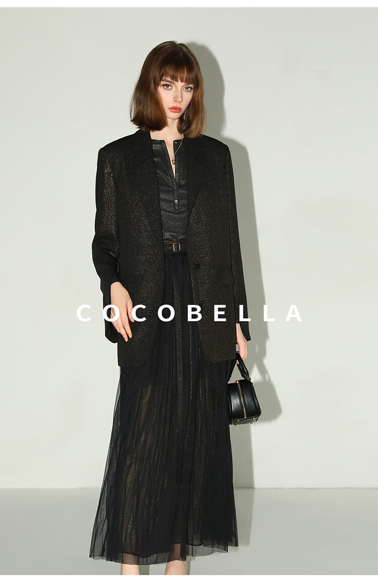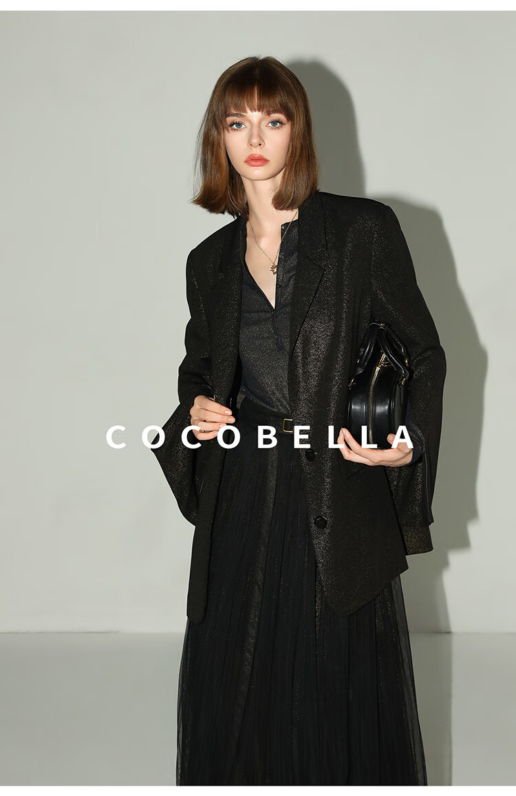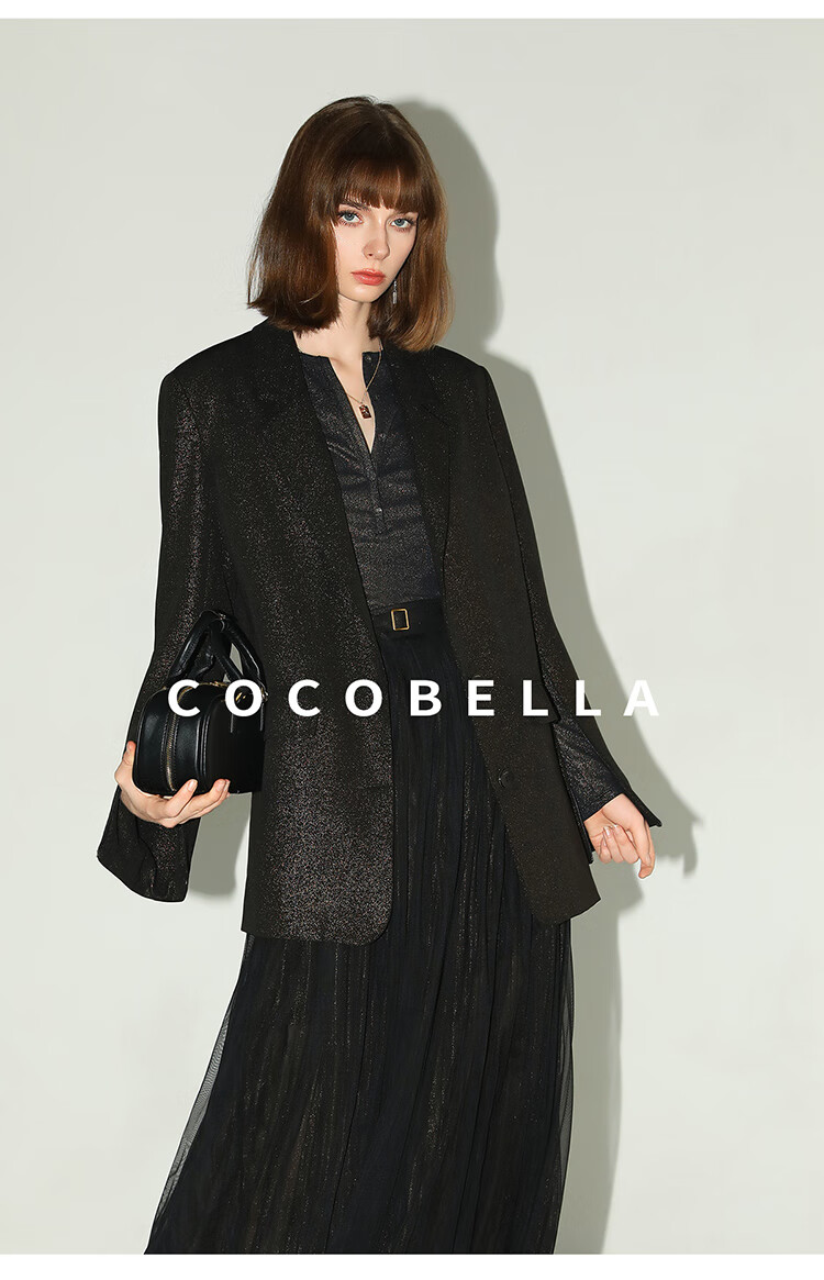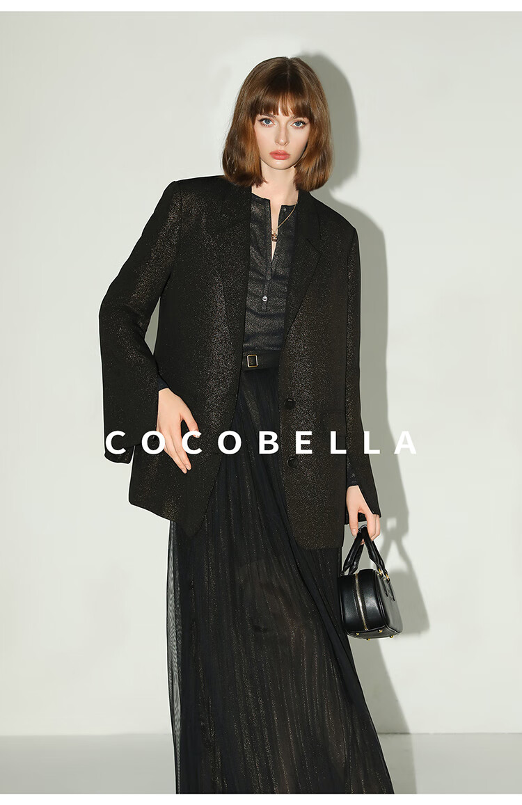 COCOBELLA奢感烫金两穿开叉袖西装秋冬商务通勤西服外套SI43B