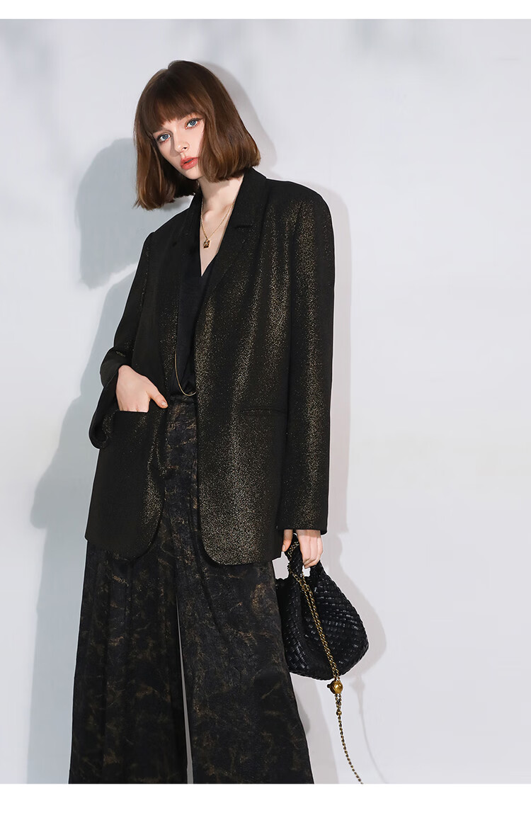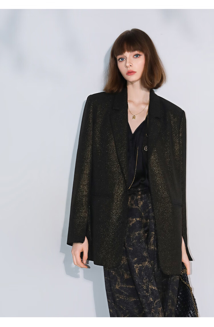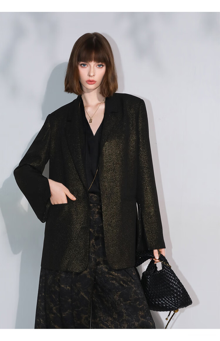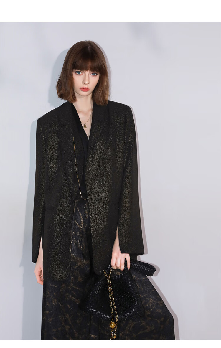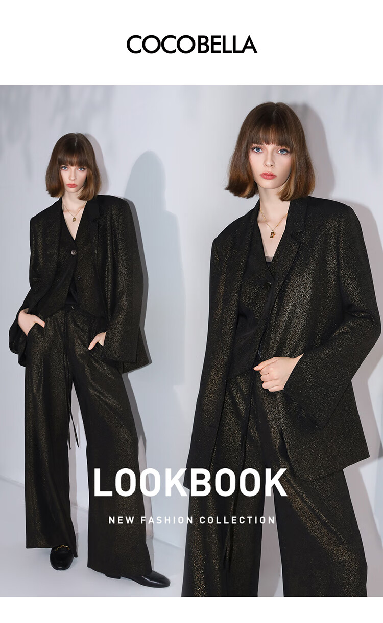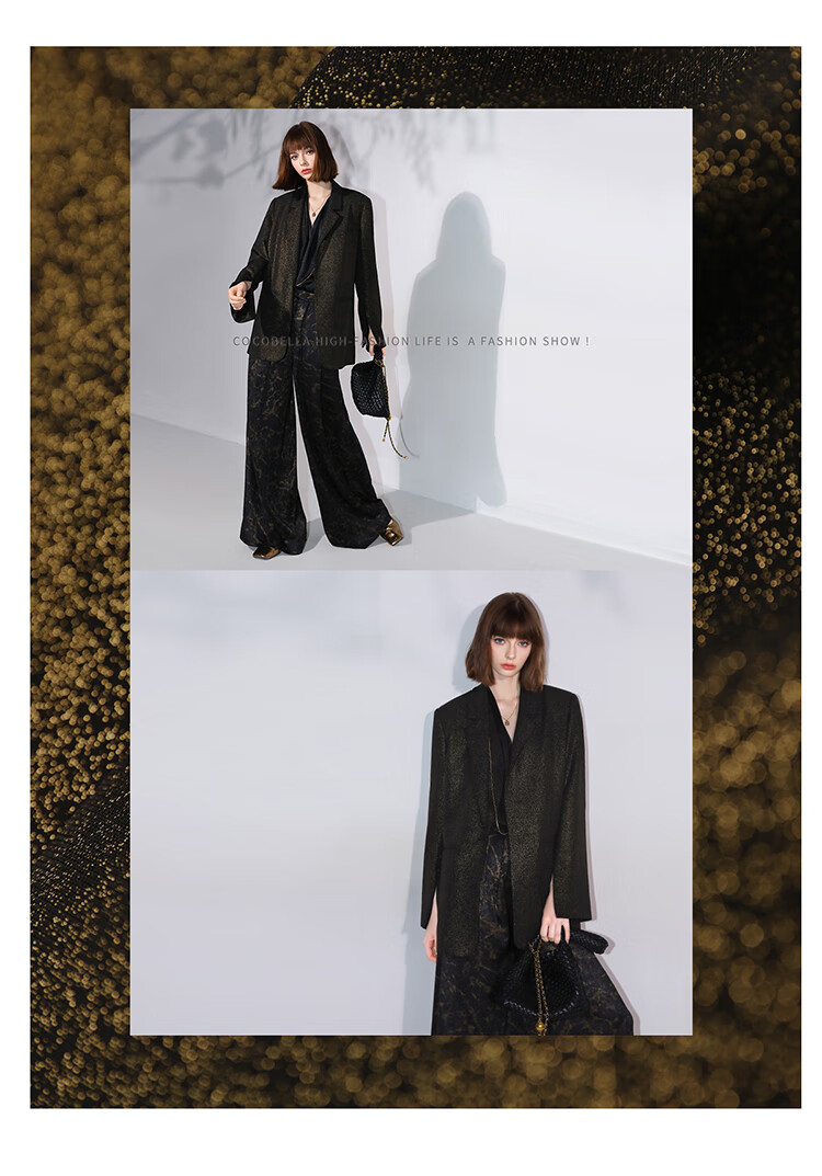 COCOBELLA奢感烫金两穿开叉袖西装秋冬商务通勤西服外套SI43B