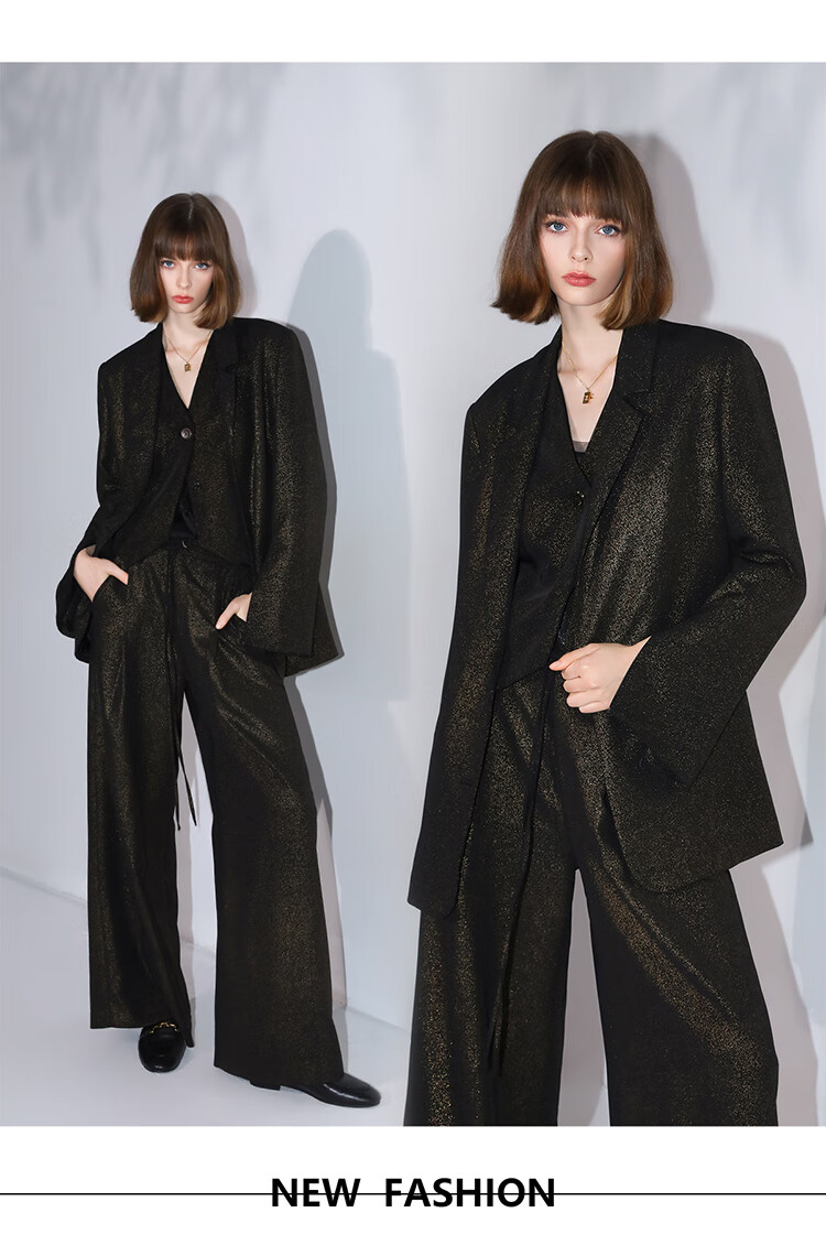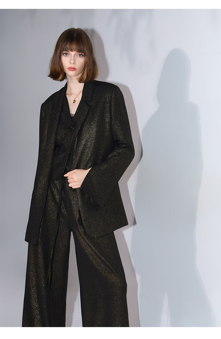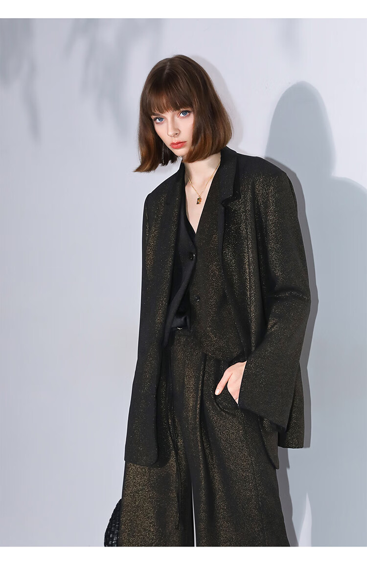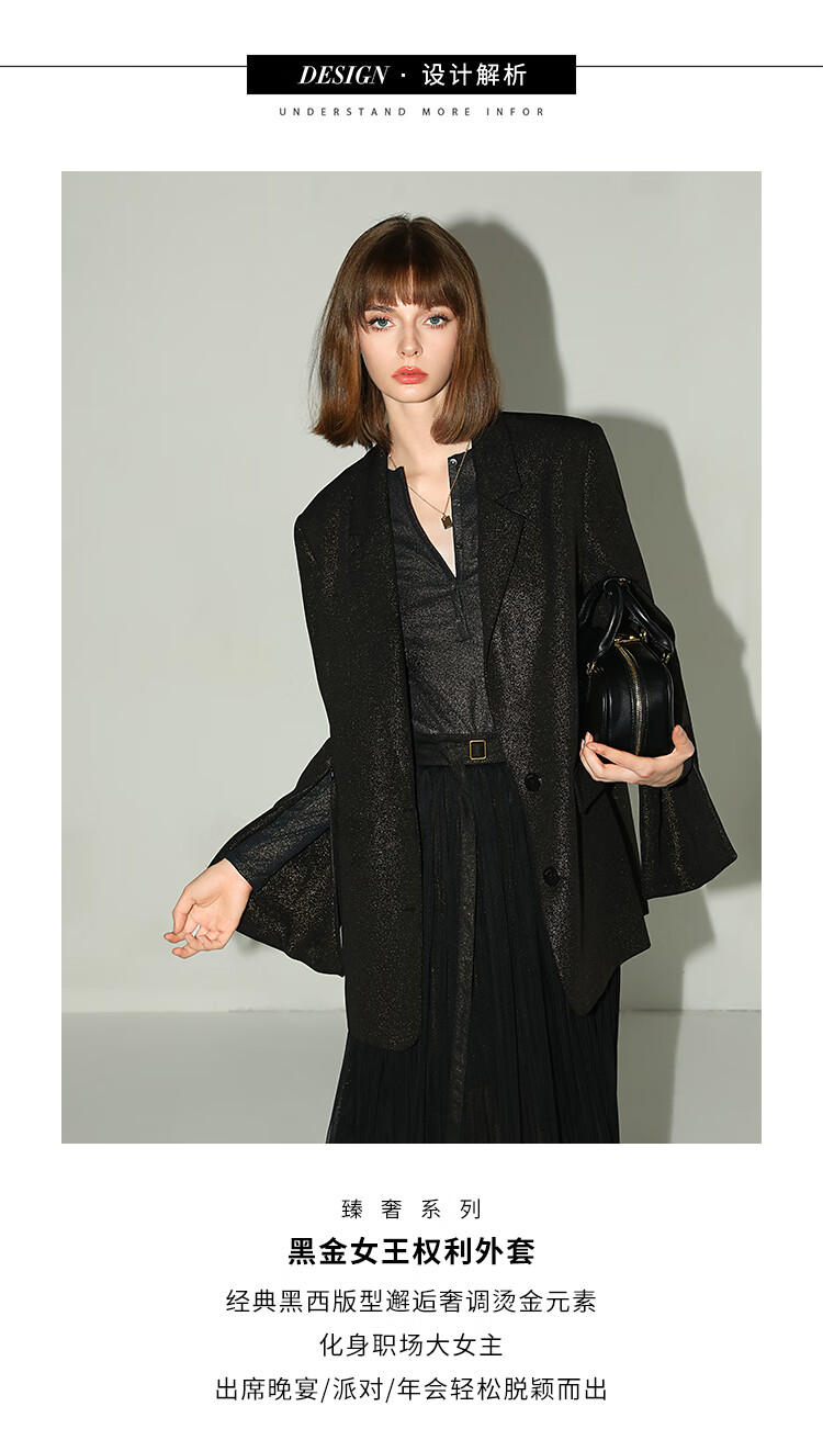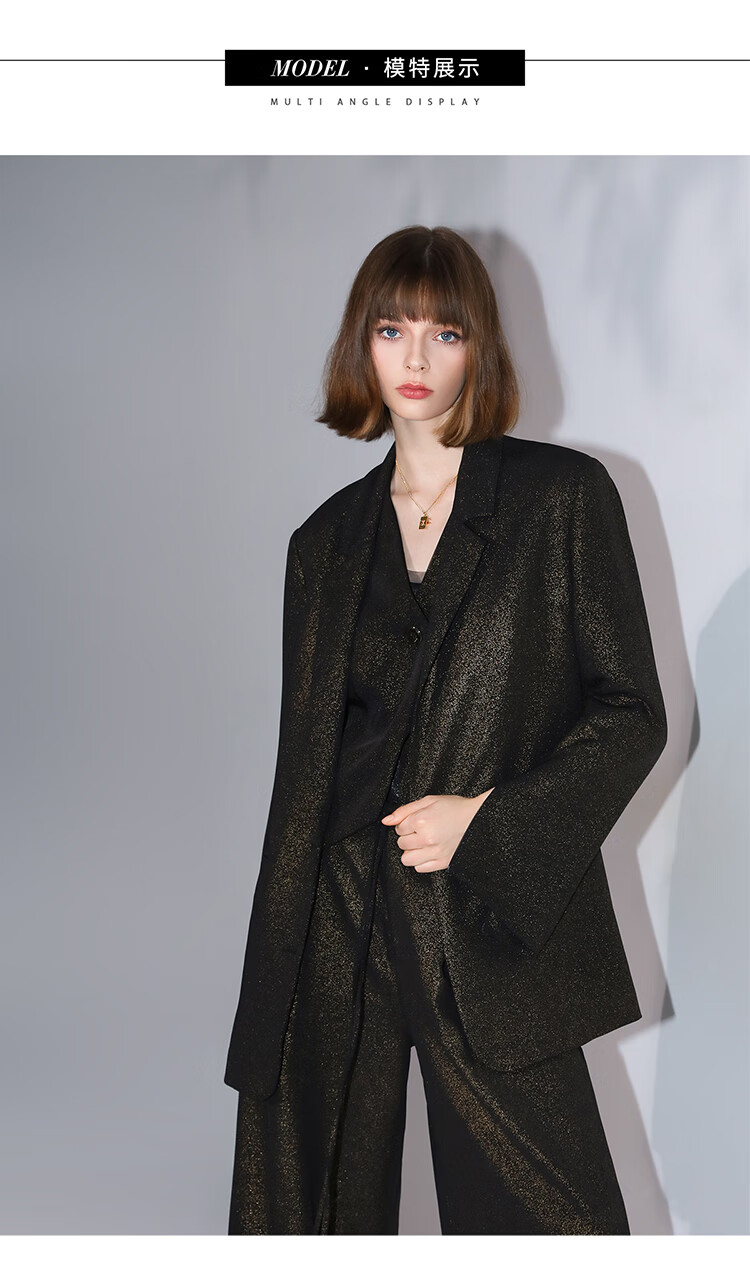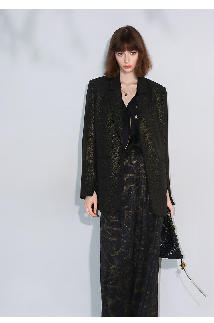 COCOBELLA奢感烫金两穿开叉袖西装秋冬商务通勤西服外套SI43B