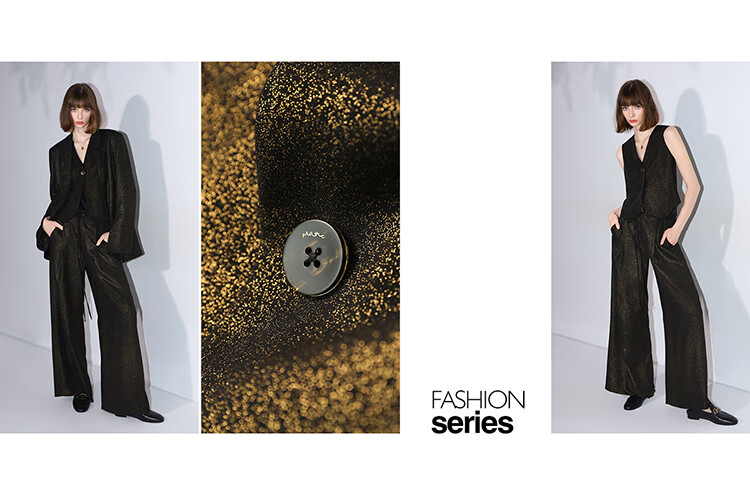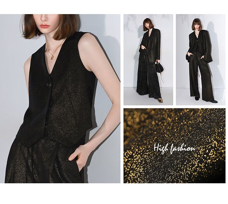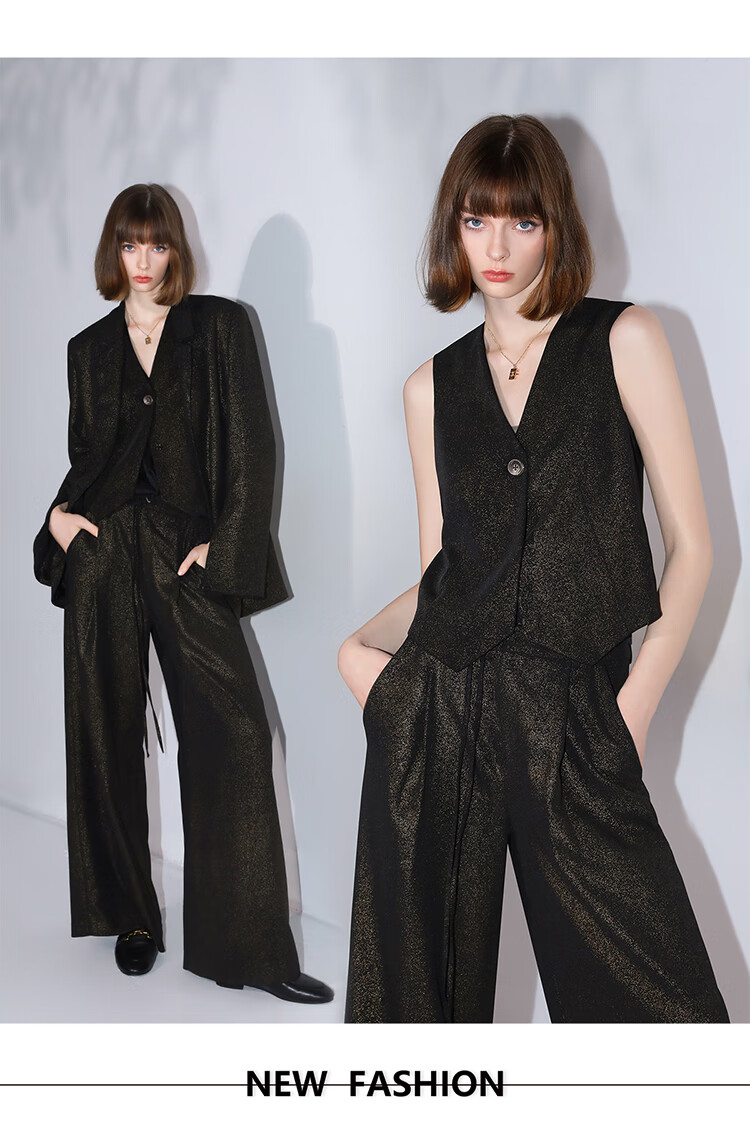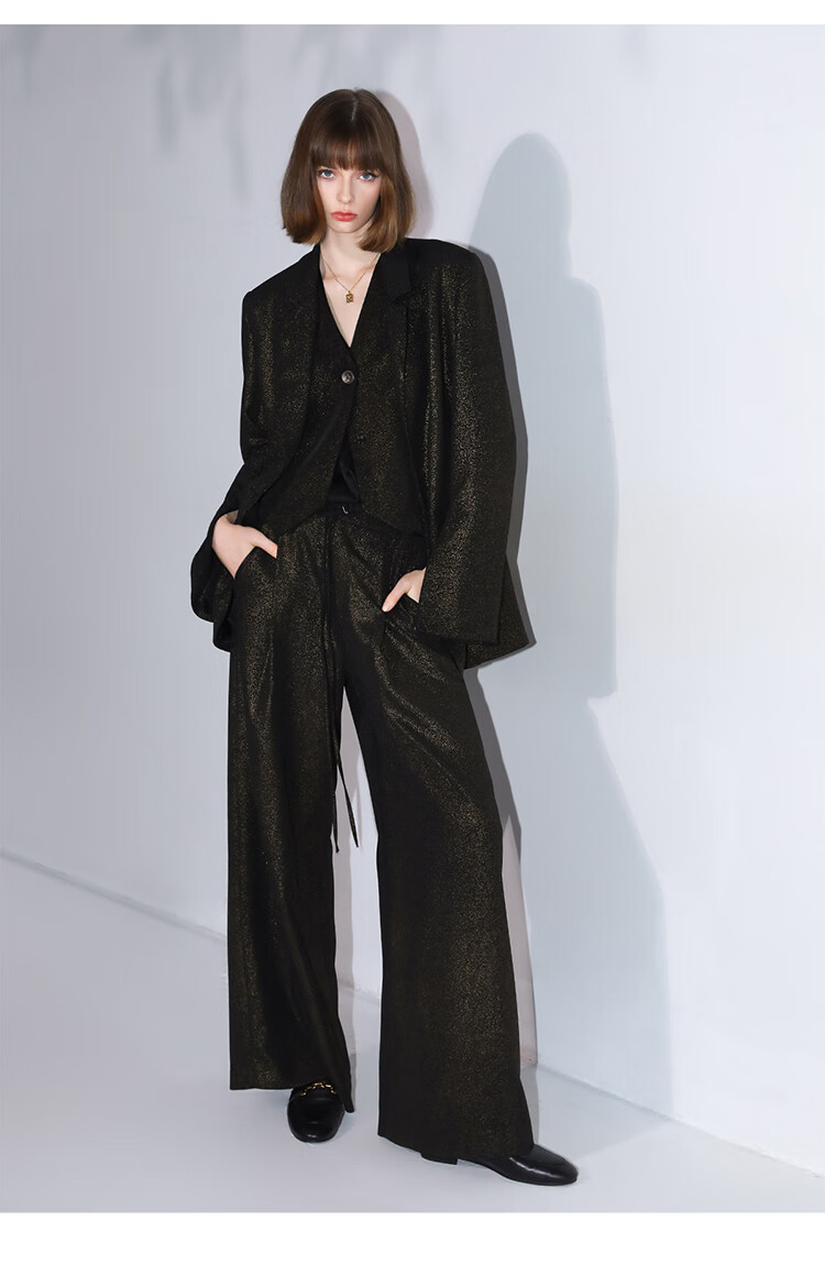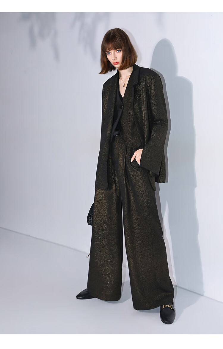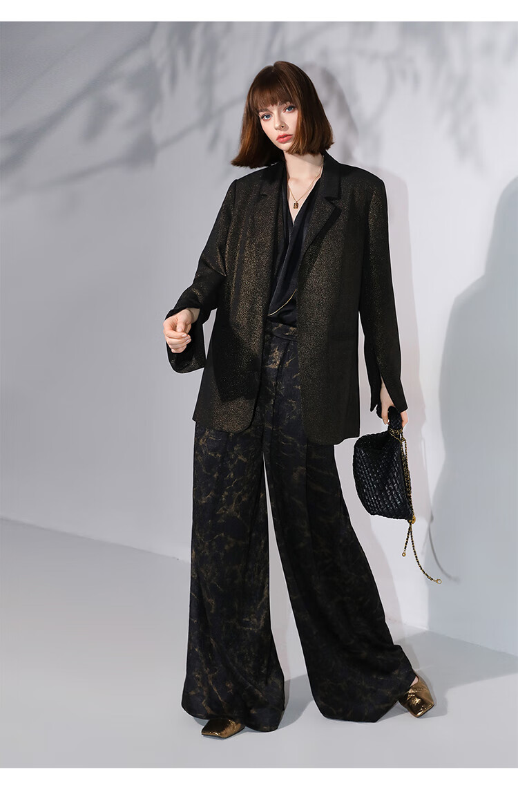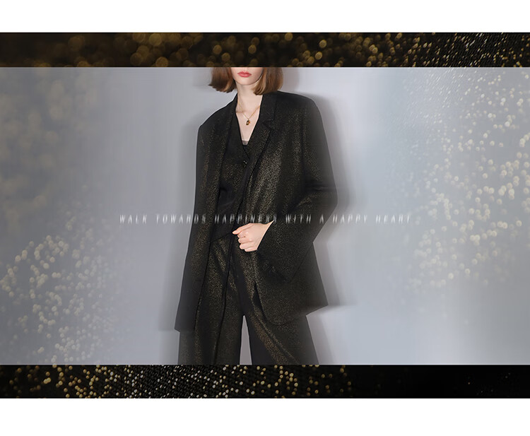 COCOBELLA奢感烫金两穿开叉袖西装秋冬商务通勤西服外套SI43B