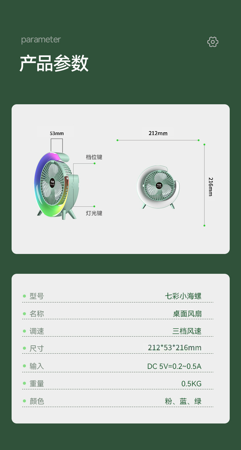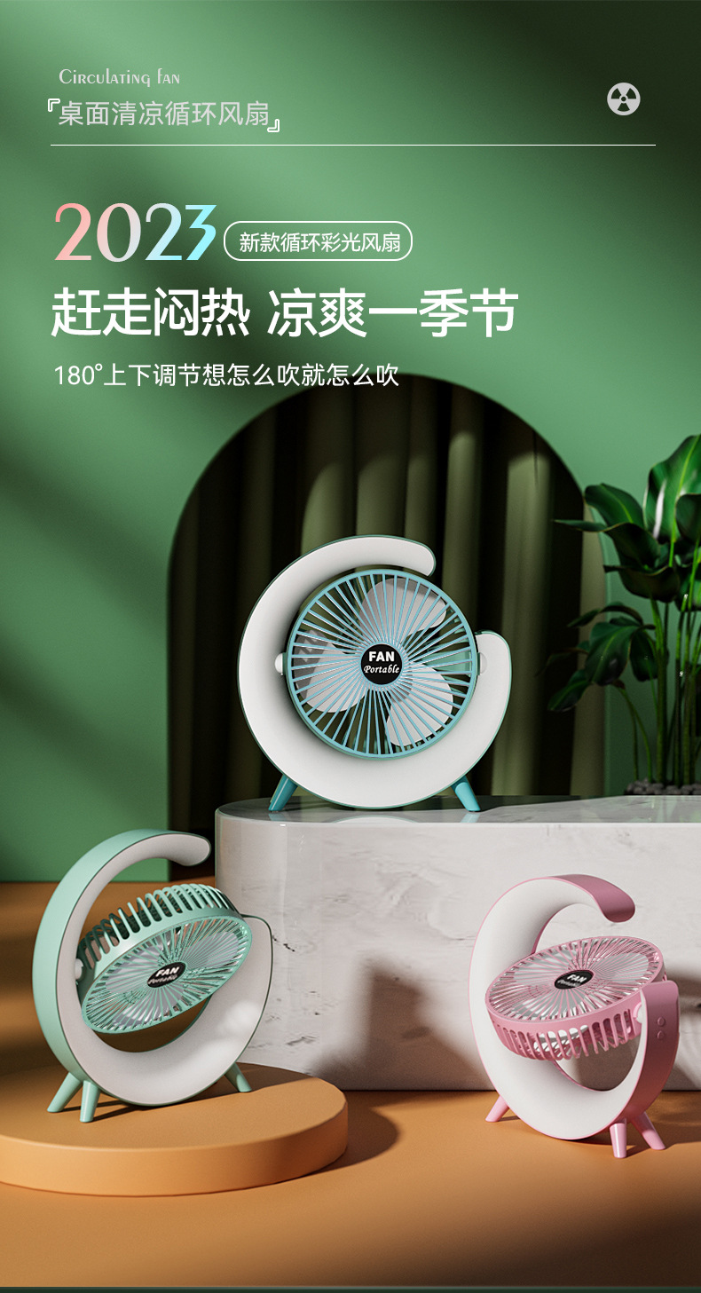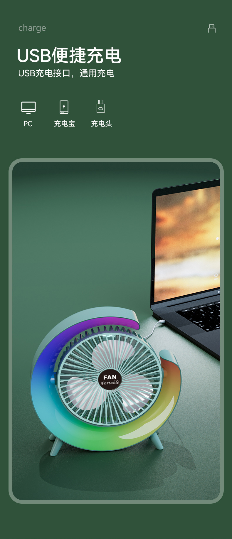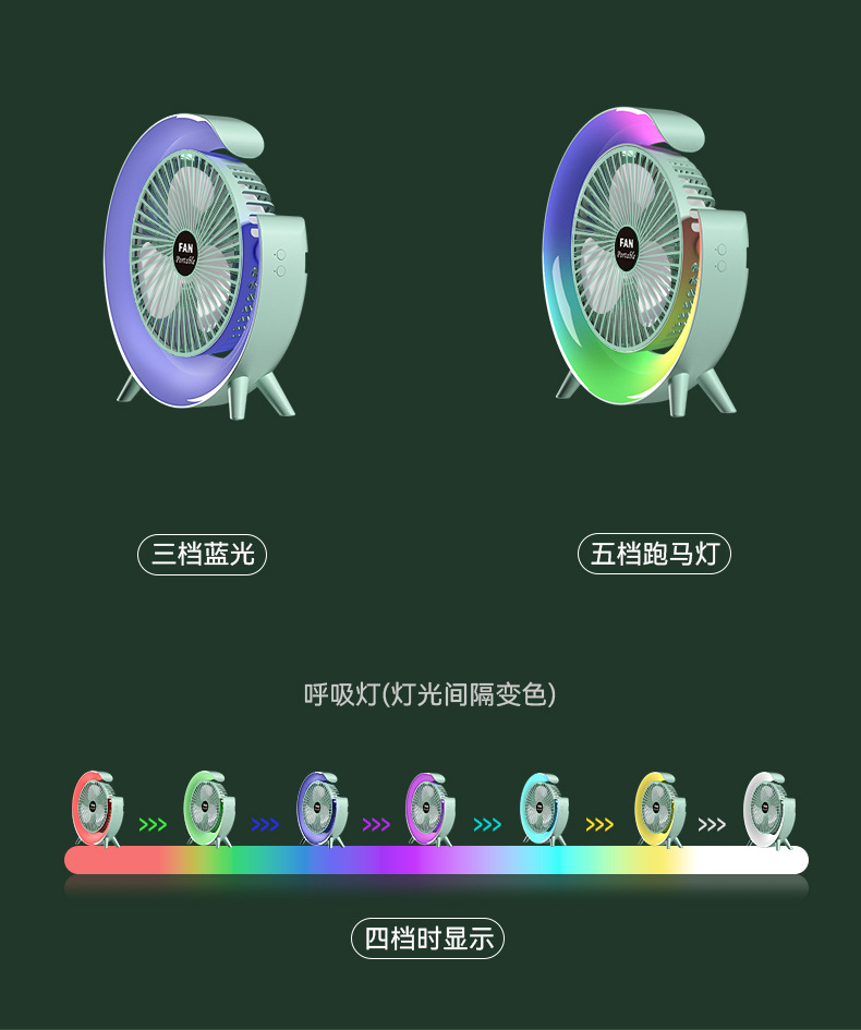 【新月幻彩!炫酷七彩跑马氛围灯风扇】炫彩灯光迷人如月,循环雷霆之力。USB灵便充电,180°自由操控。家办皆宜,生活乐趣无限。