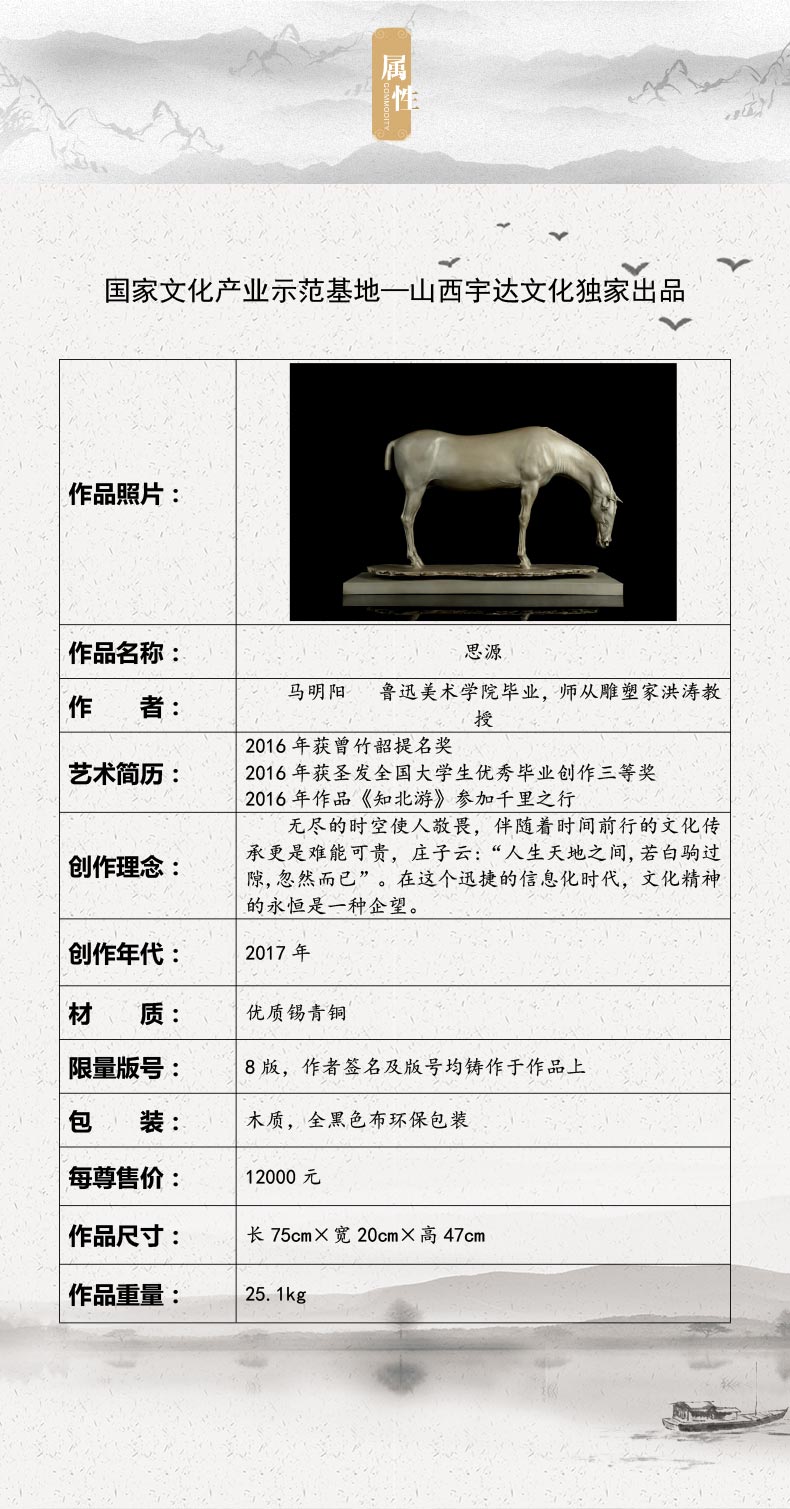 宇达青铜全铜摆件 马明阳作品《思源》限量8版 家居艺术摆件 长75cm