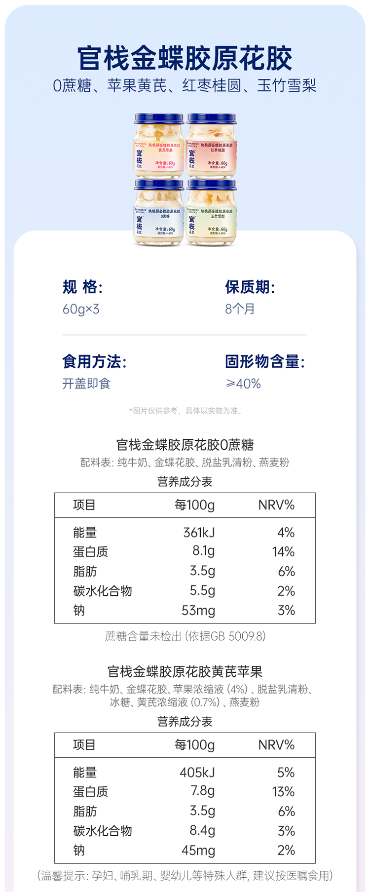 【限时特惠】官栈焕桃颜金蝶胶原花胶天然1型胶原蛋白滋补60g/瓶 商品图9