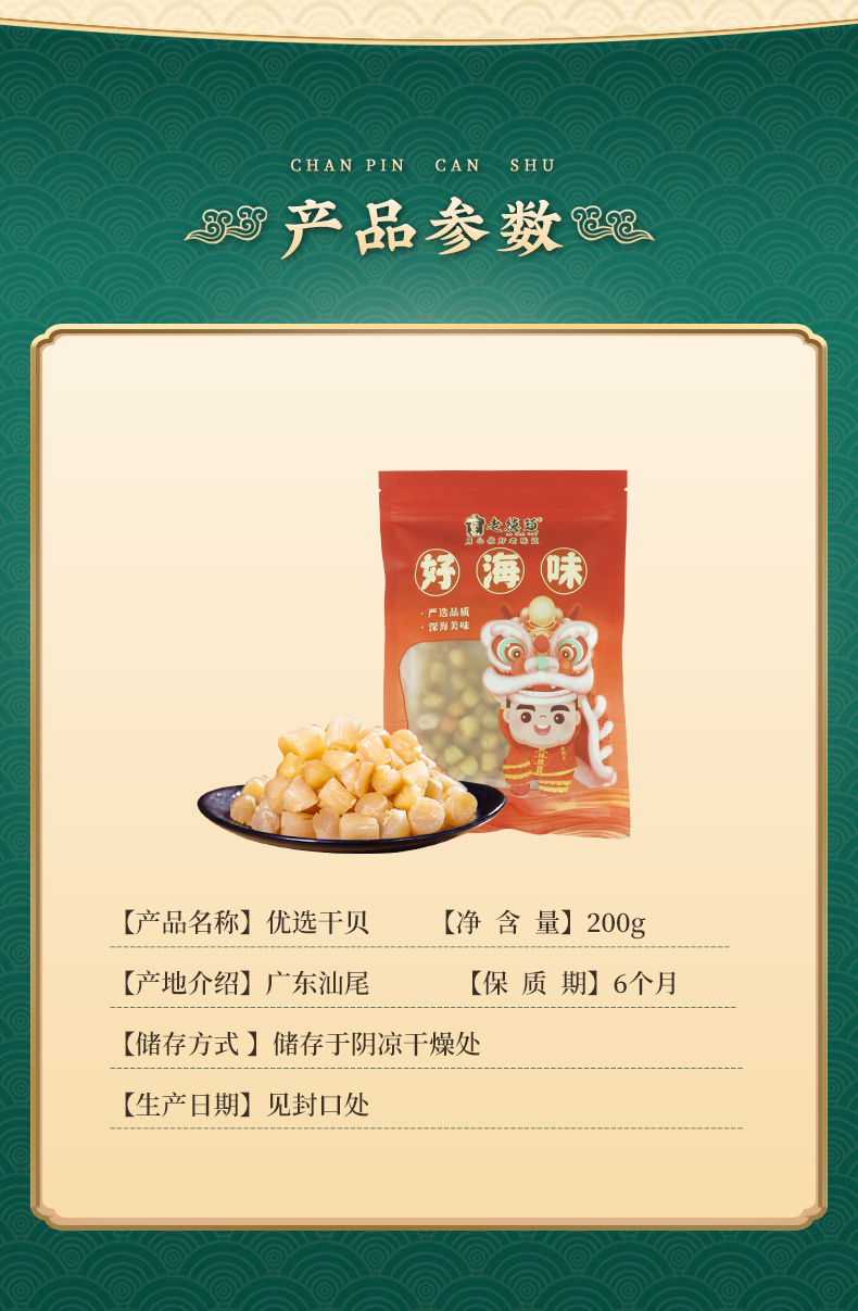 老德头优选干贝200g干货贝柱煲汤水产海鲜(云仓)