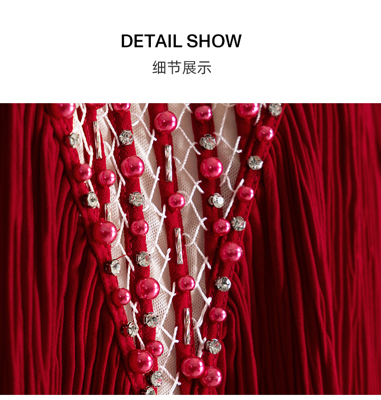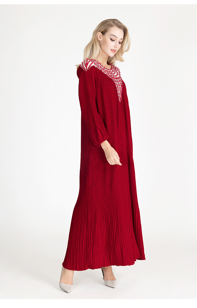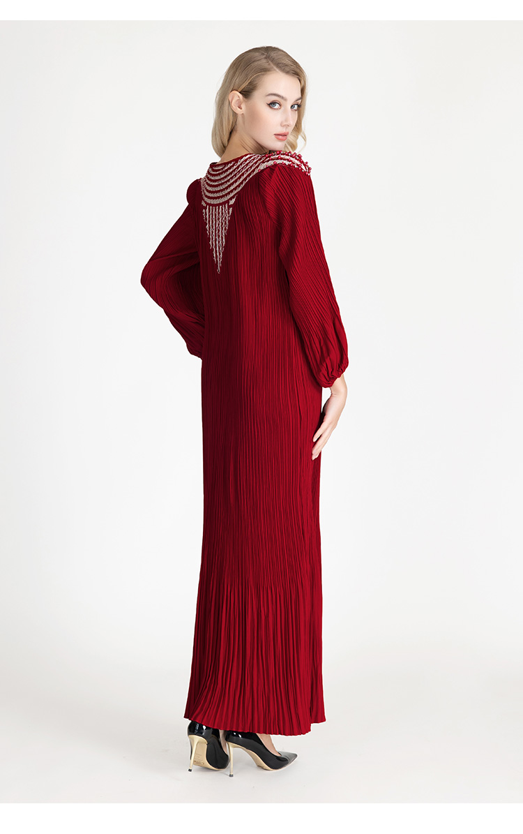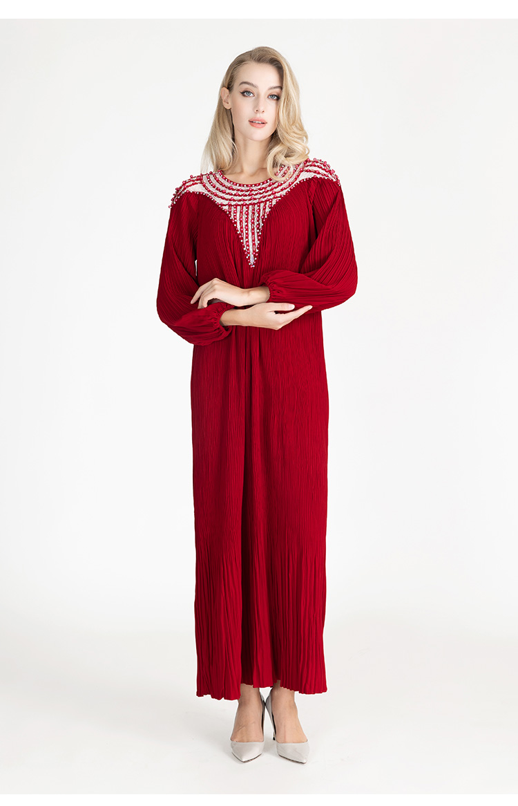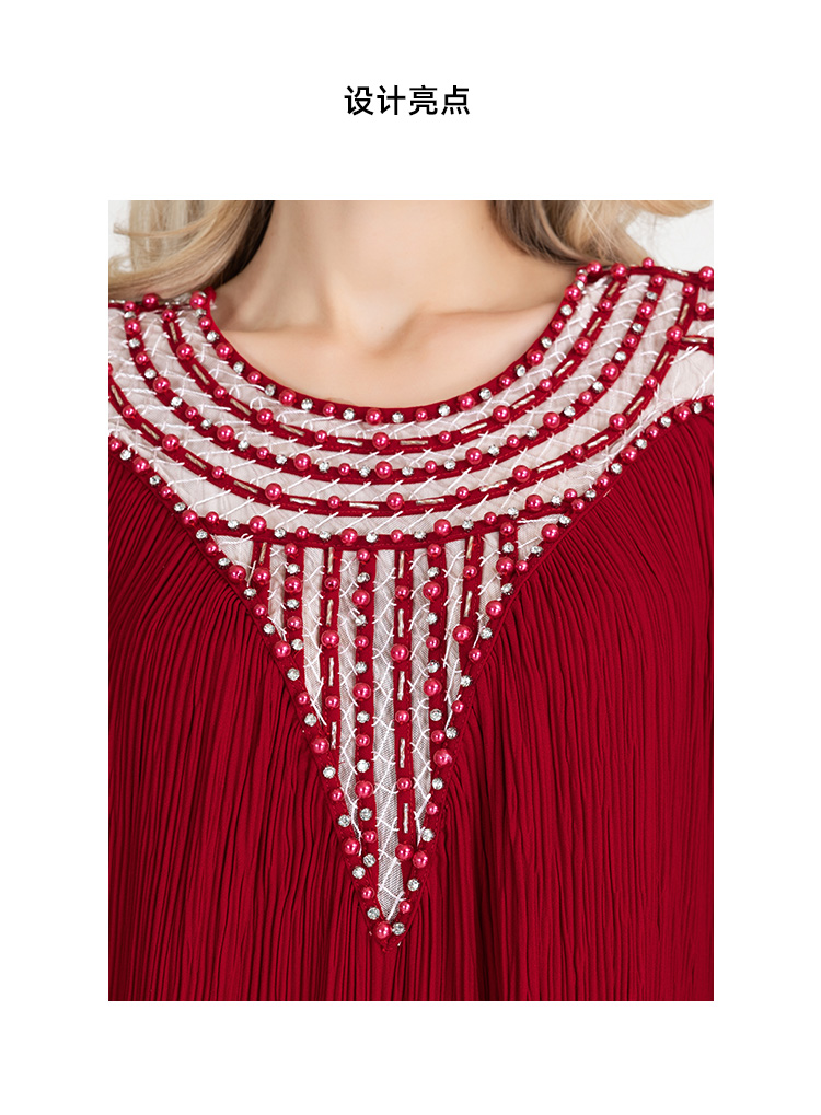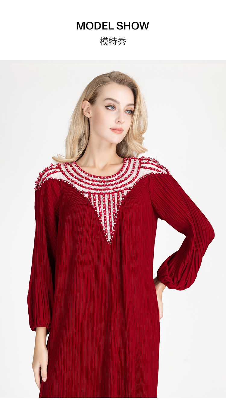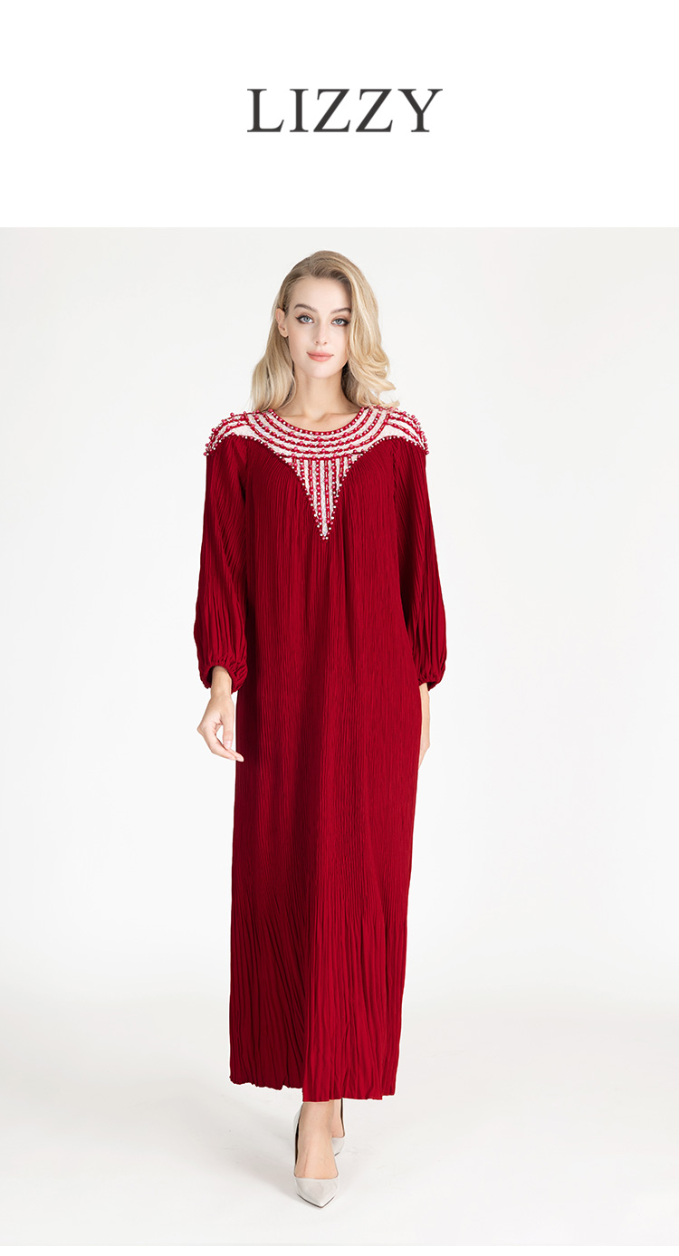 LIZZY早秋优雅长袍高贵宽松钉珠宴会派对礼服连衣裙8095