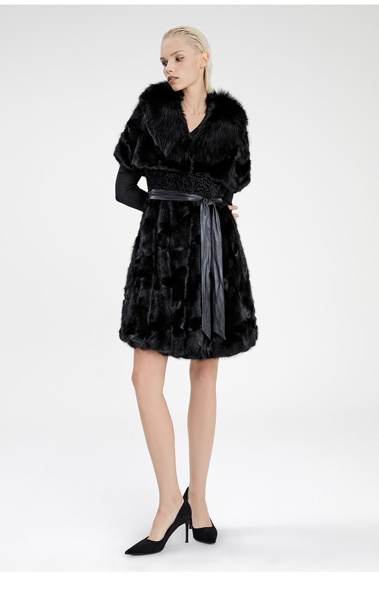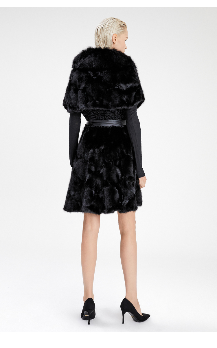 LIZZY 冬水貂卡拉古胎羊毛拼接斗篷式裘皮皮草大衣4642