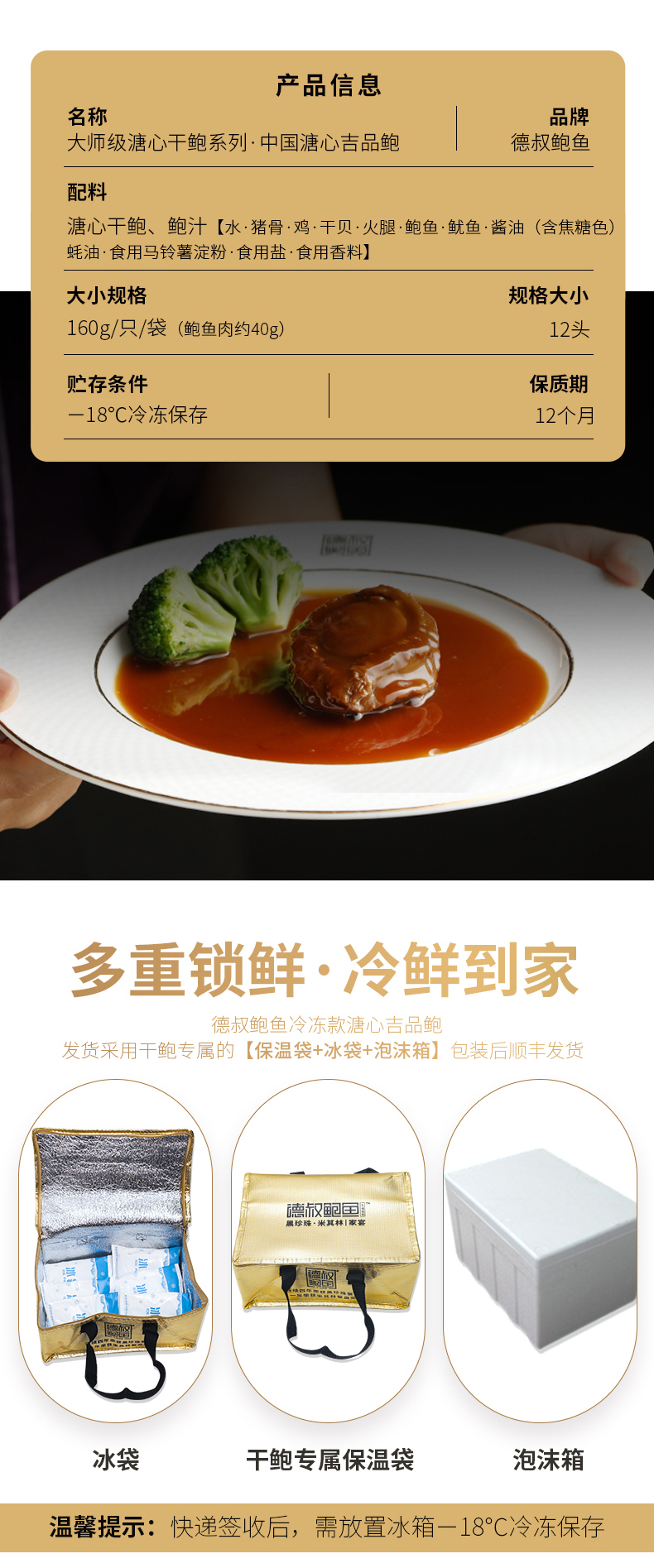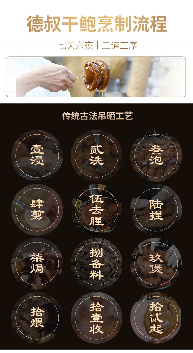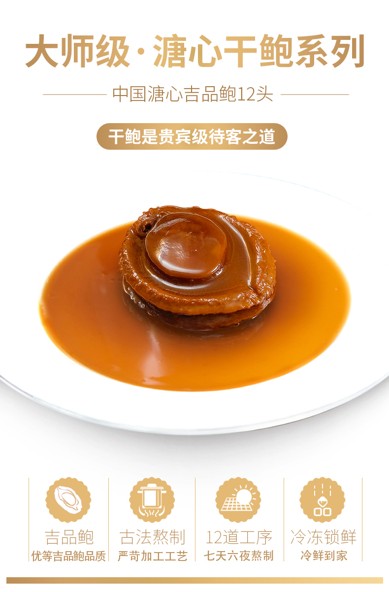 【德叔手工熬制】即食溏心干鲍12头吉品鲍 【买一送一】到手2份【顺丰到家冷冻储存】(每份有一只鲍鱼肉,鲍鱼肉≥40克,含鲍汁共160克)