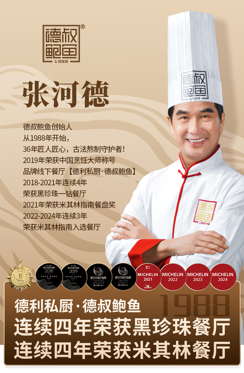 - 德叔鲍鱼官方商城,客服热线:4006111977 德叔鲍鱼创始于1988年,专注鲍鱼研究34年。线下粤菜餐厅,主打溏心干鲍,荣获米其林和黑珍珠等称号。线上全平台推广,本商城提供微信端的便捷购买。