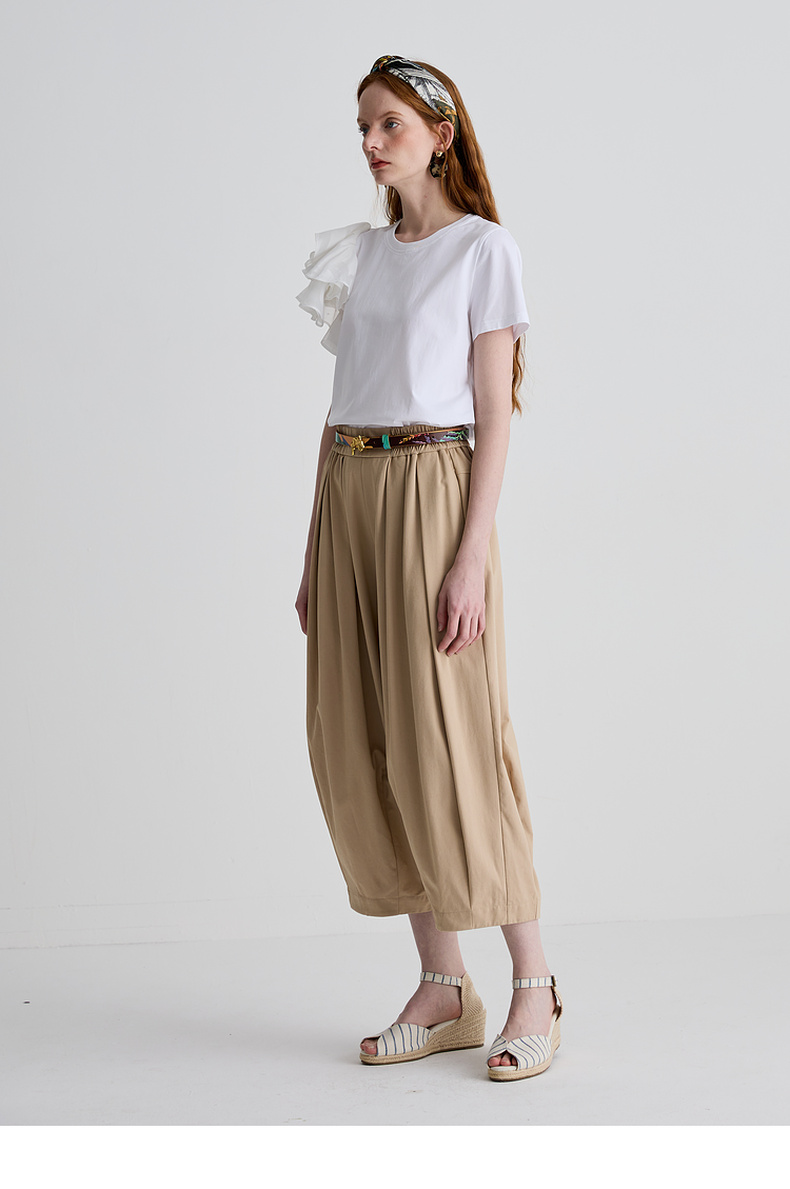 谜底休闲裤女2025夏新品通勤时髦挺阔大廓形哈伦九分裤252MK0663