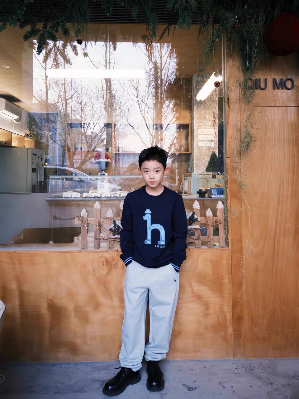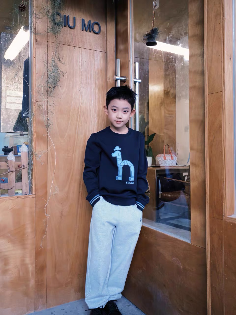 微宽松卫裤版型,裤脚收口,活动无束缚