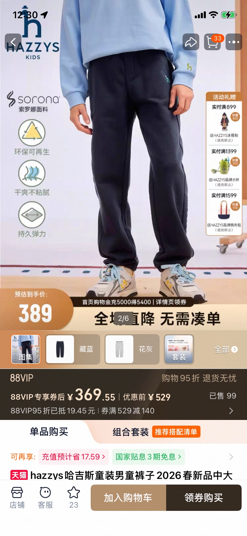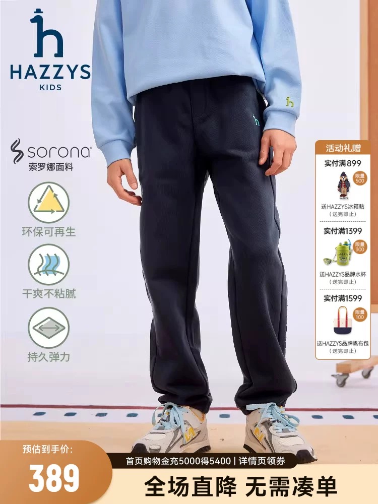 💰 59元包邮,【哈吉狗】 儿童索罗娜双面棉运动裤 舒适透气 不易皱