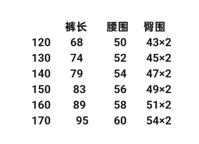 尺码表, 120-170码, 身高+1码拍