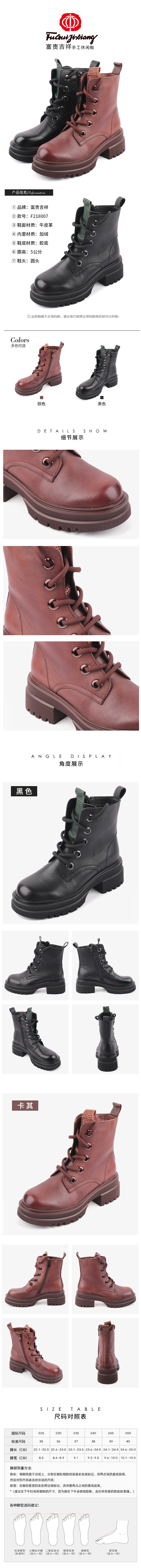 富贵吉祥2021平底休闲超轻加绒马丁靴F218007