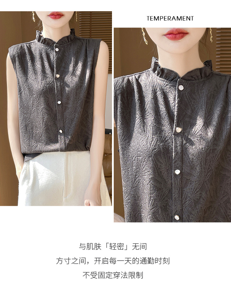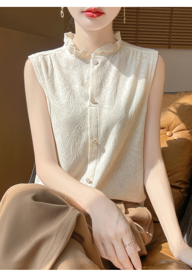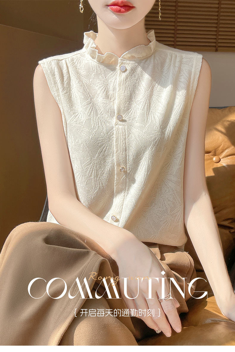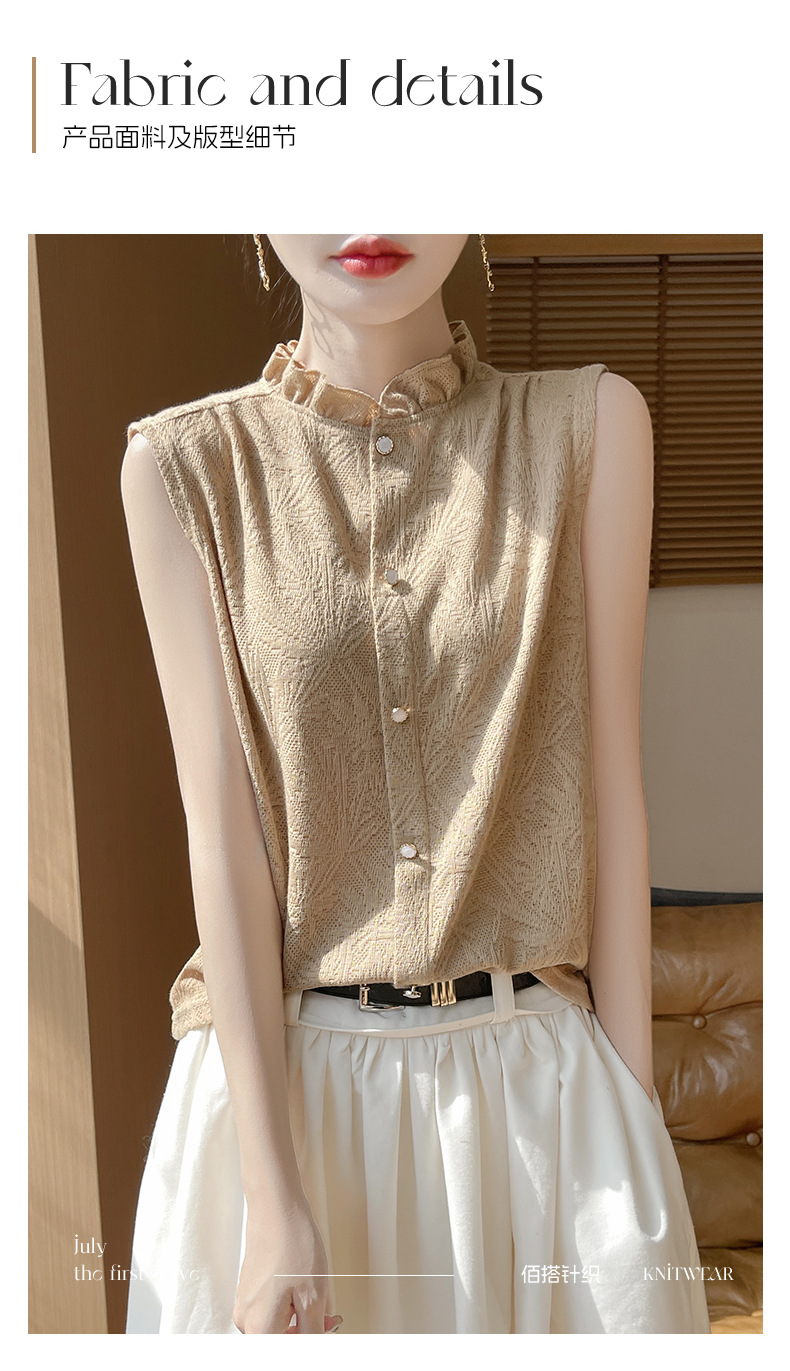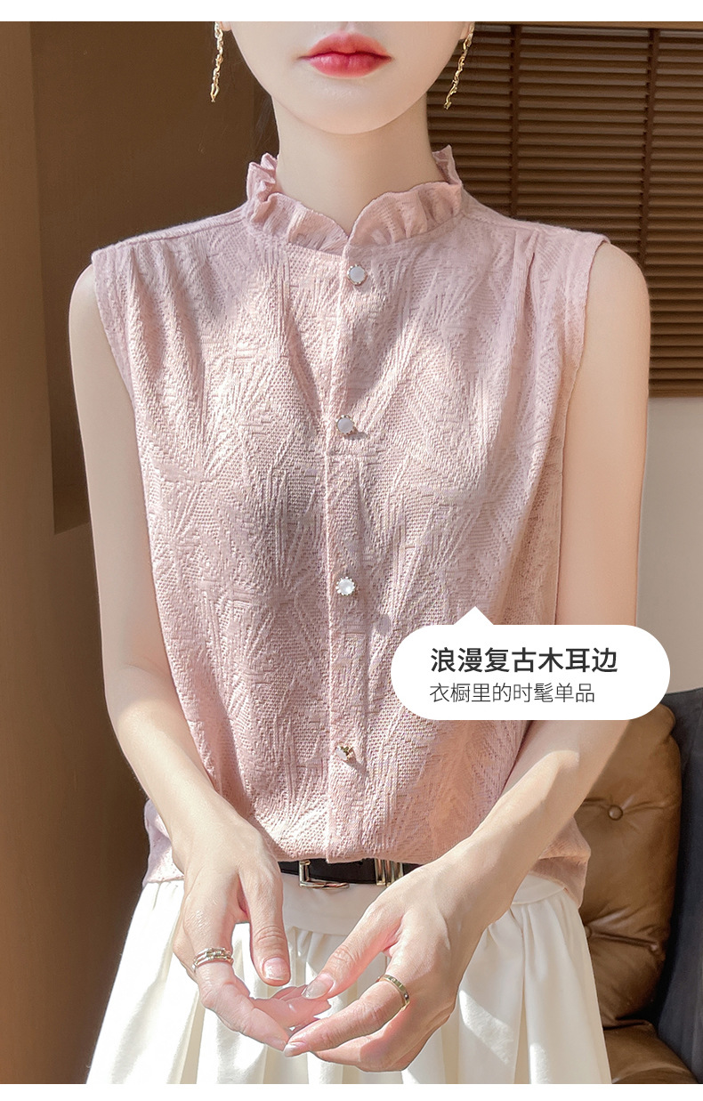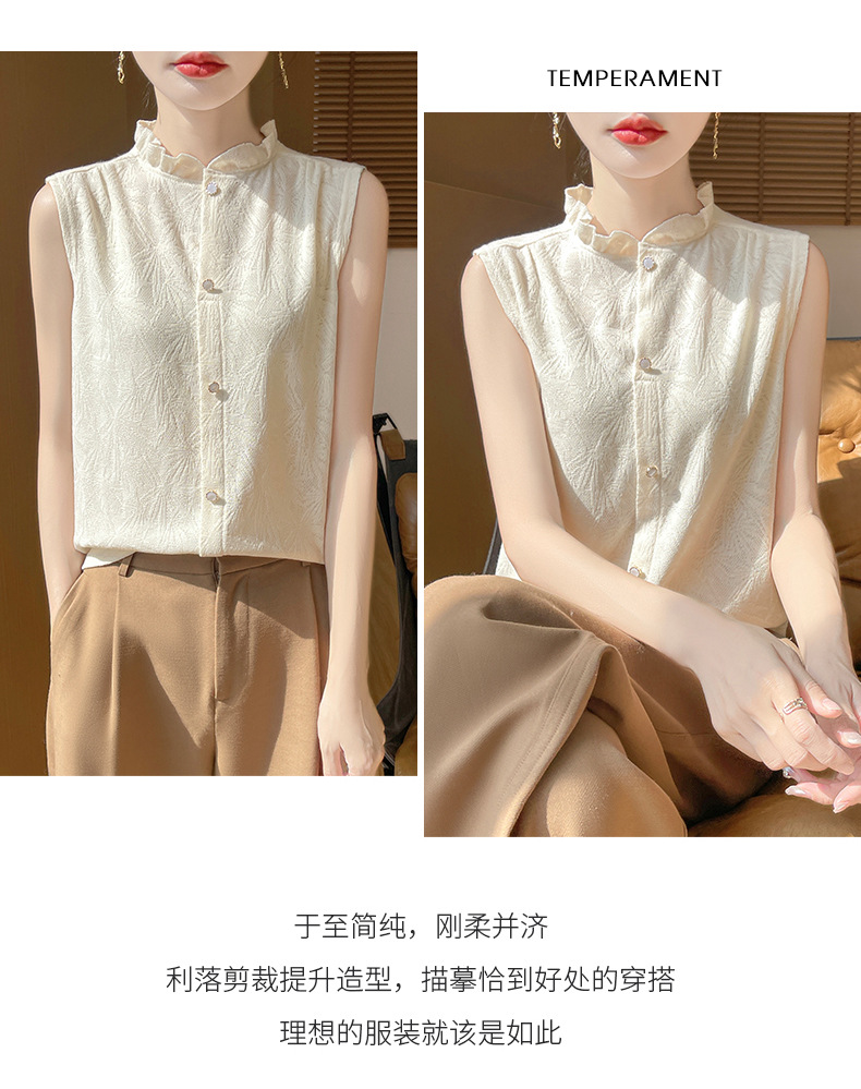 2025夏季新款女装木耳边领扣无袖打底衫上衣短款背心服饰针织衫女