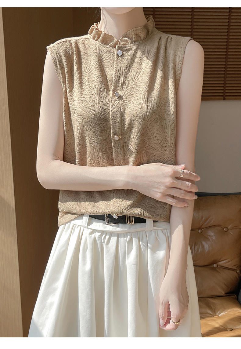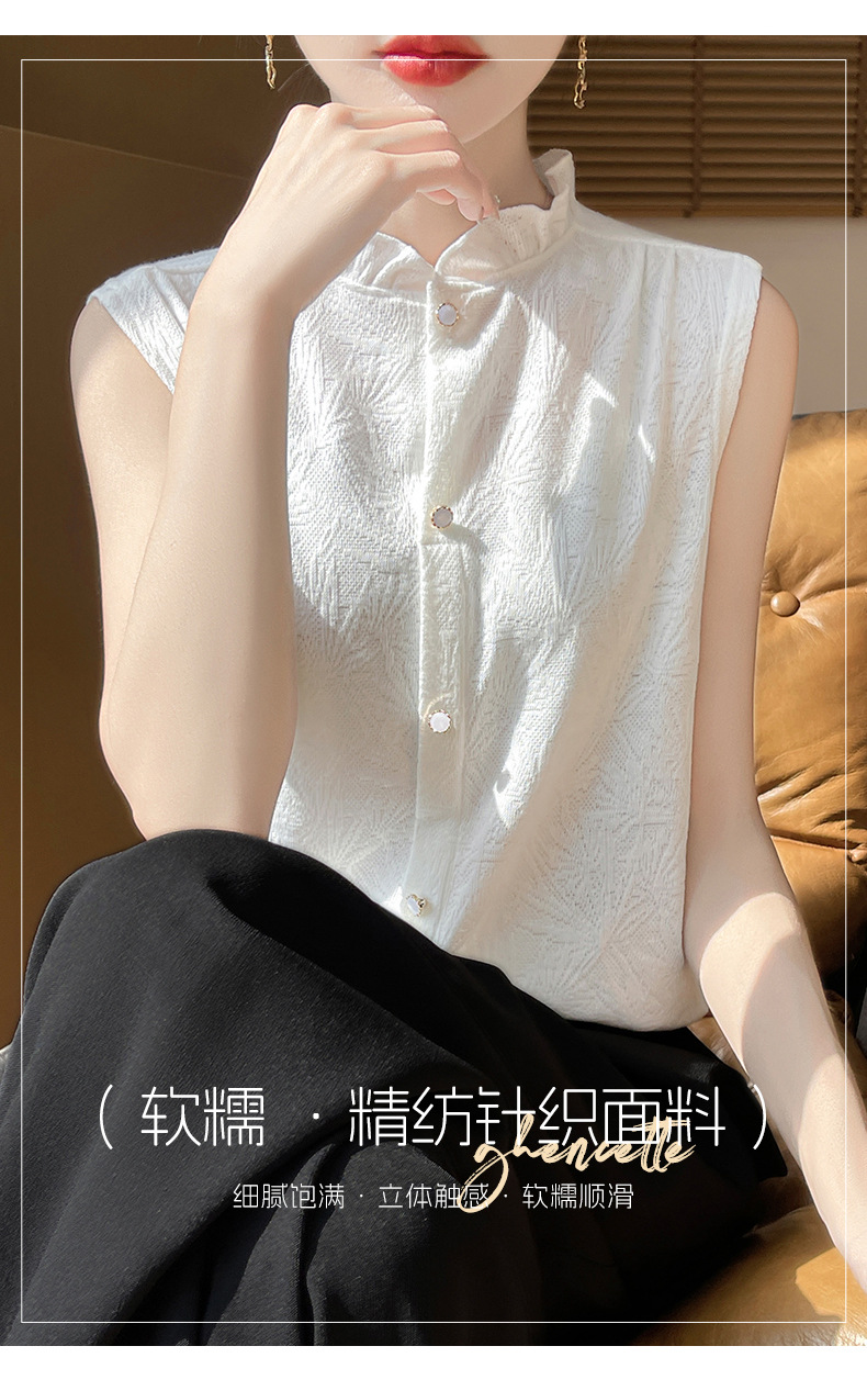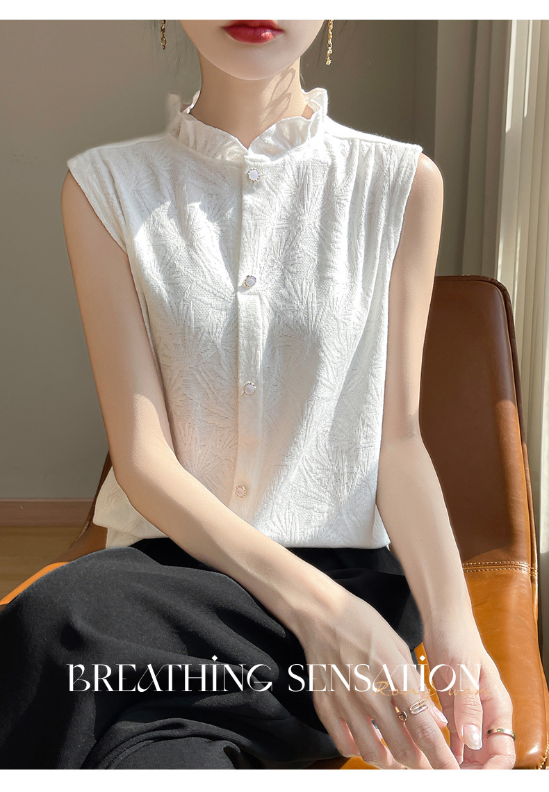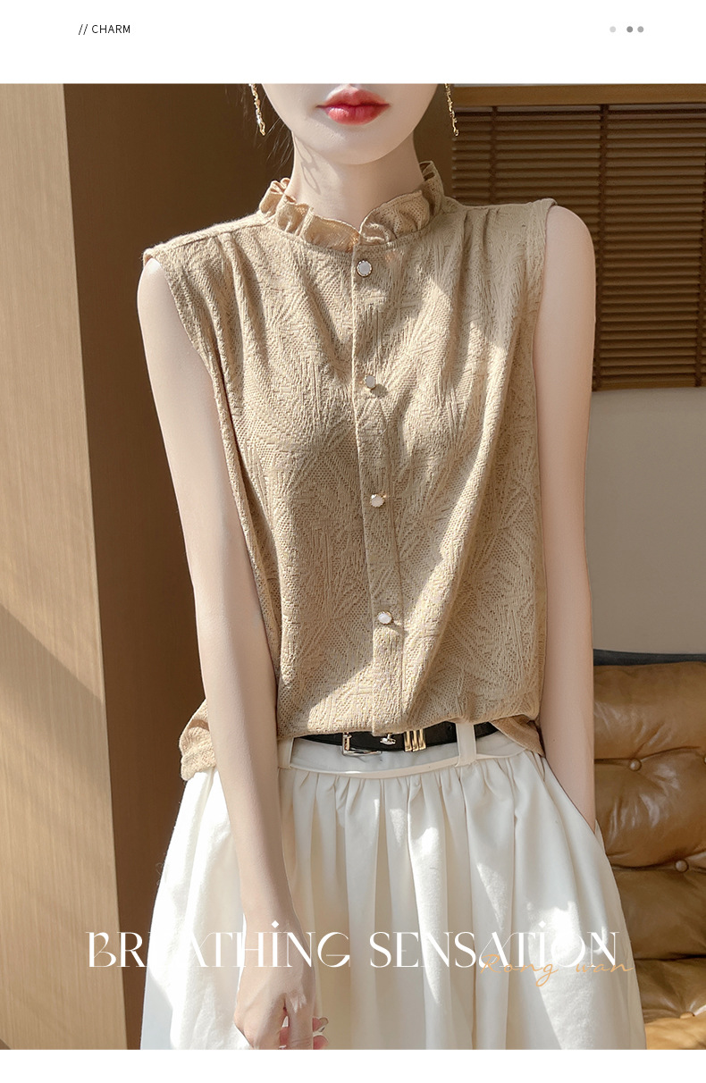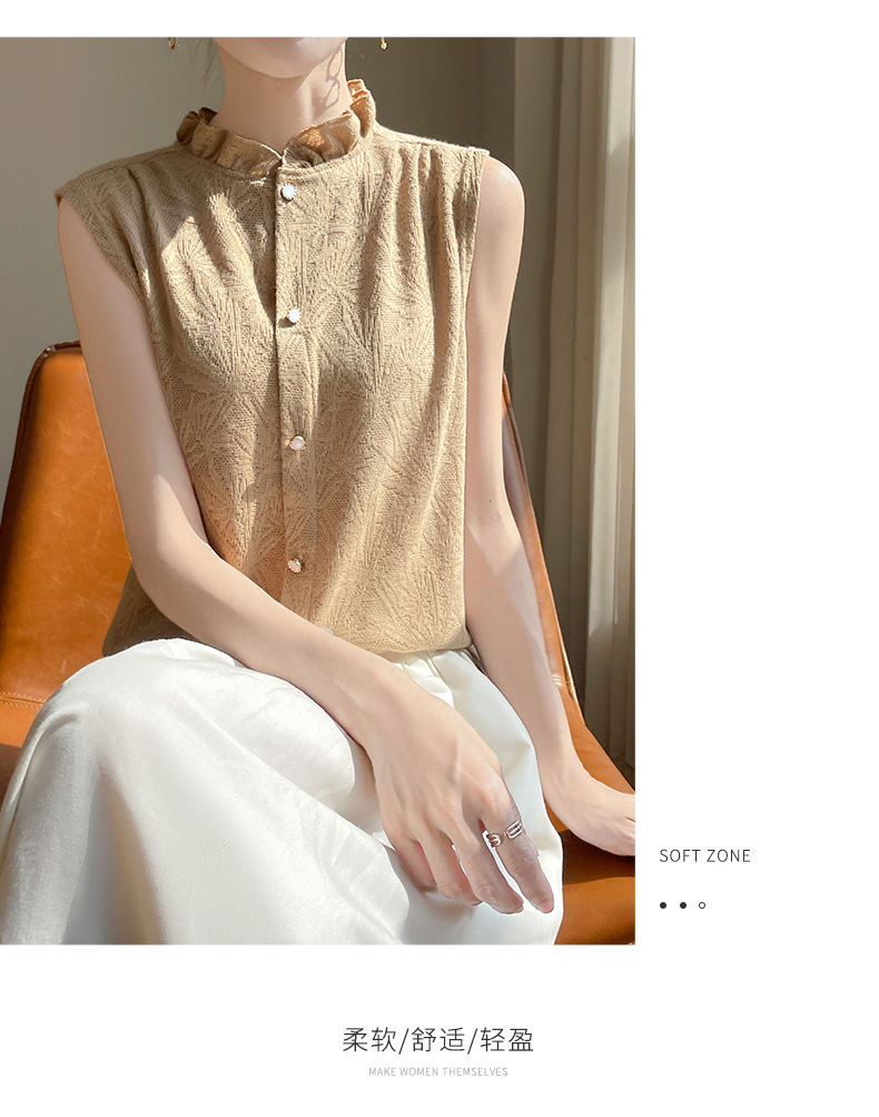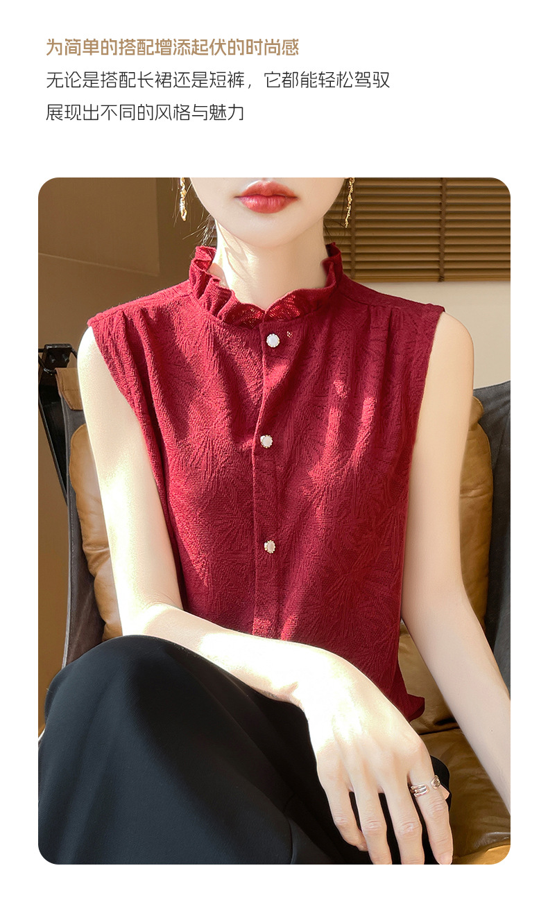2025夏季新款女装木耳边领扣无袖打底衫上衣短款背心服饰针织衫女