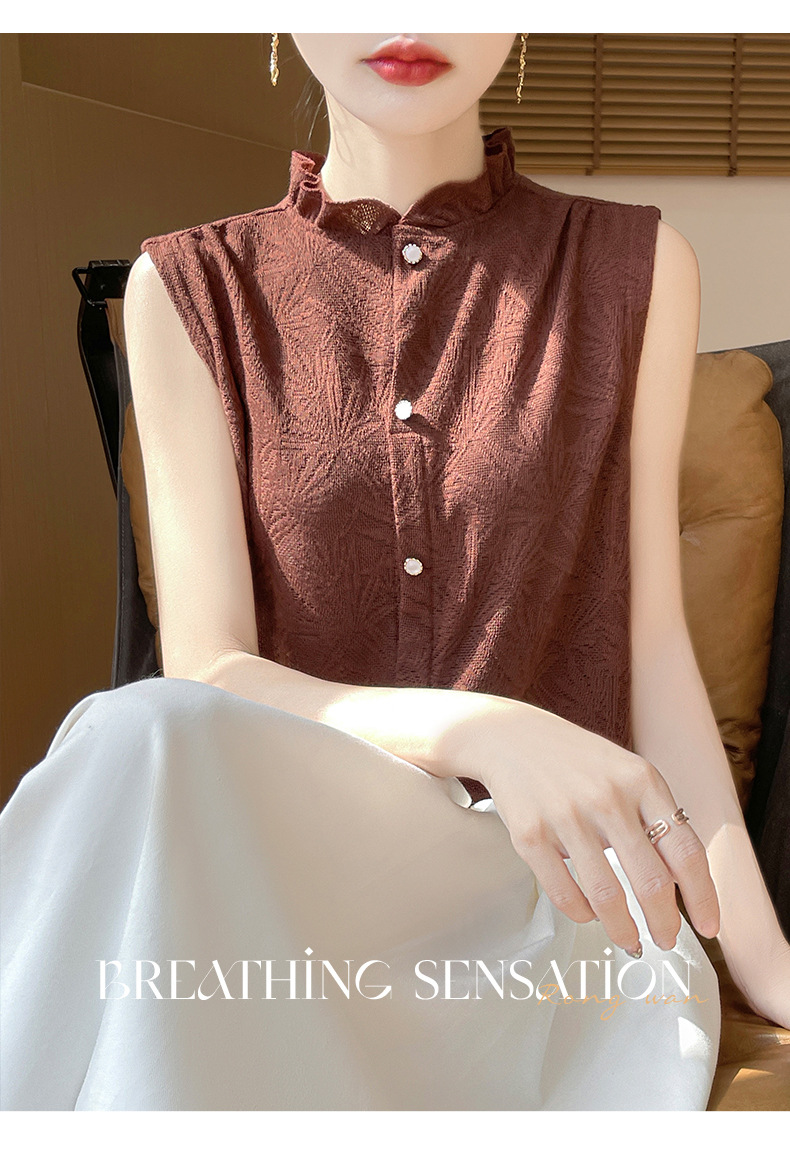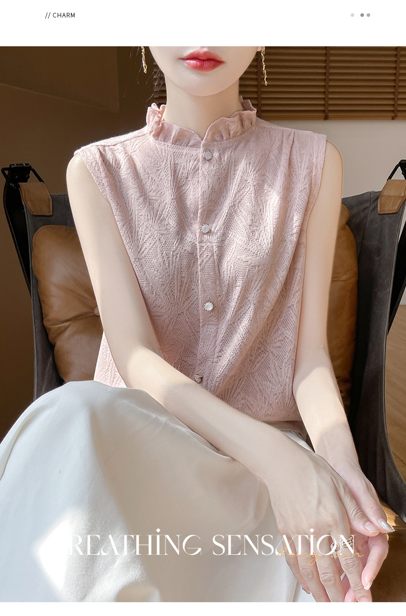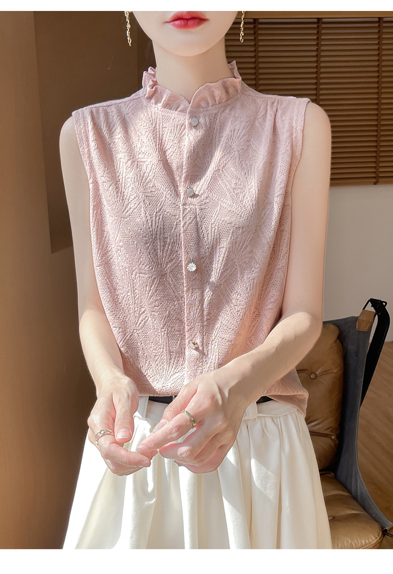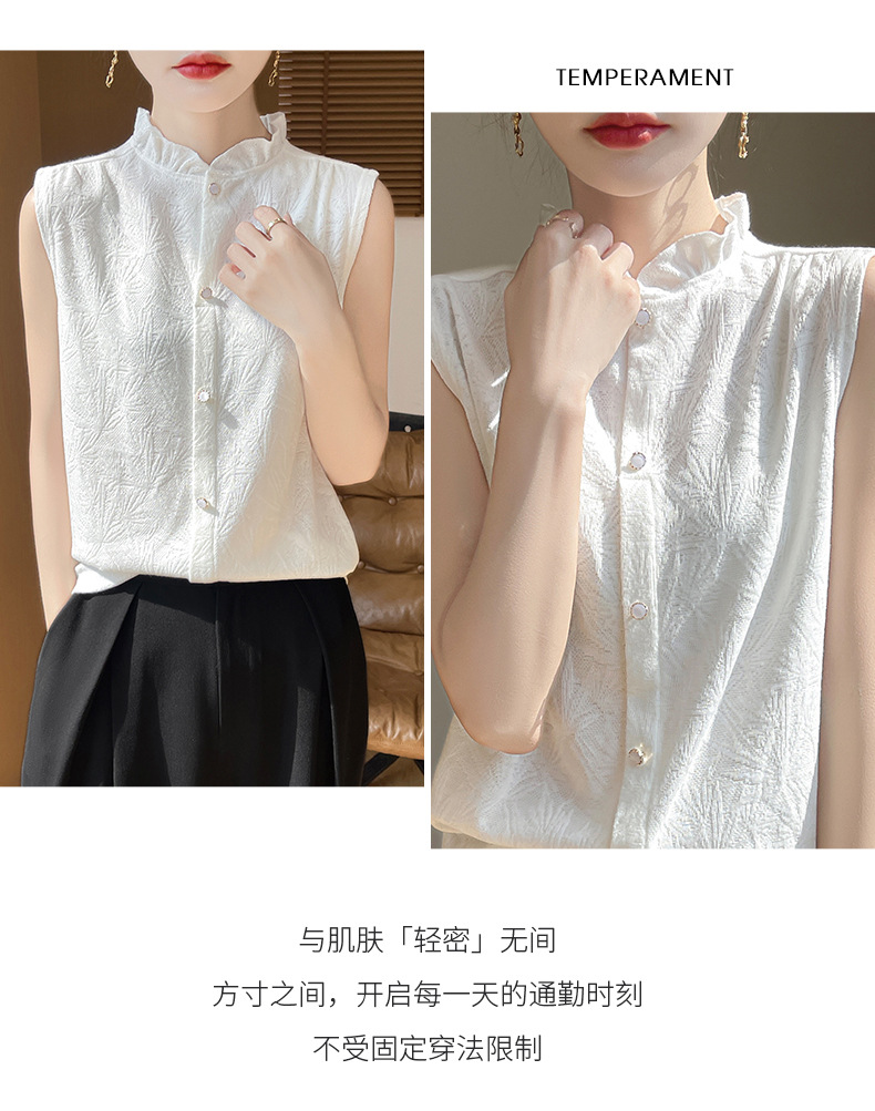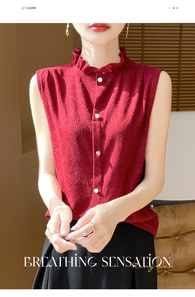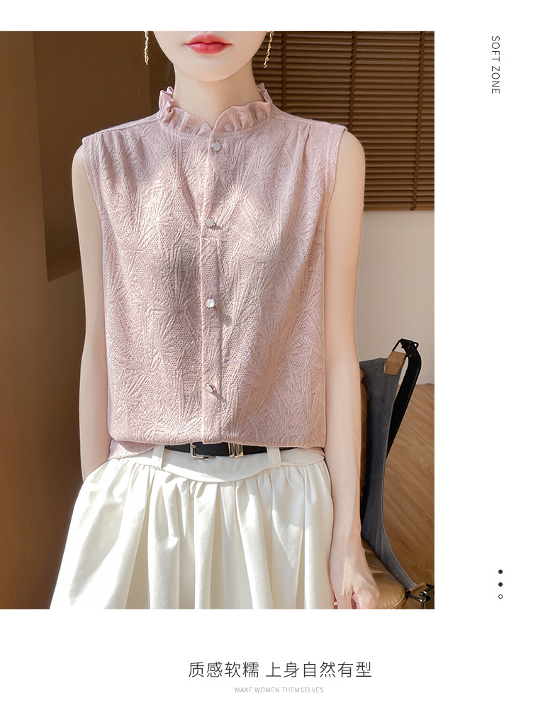 2025夏季新款女装木耳边领扣无袖打底衫上衣短款背心服饰针织衫女