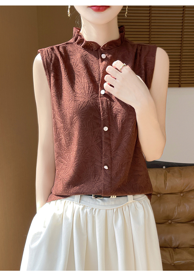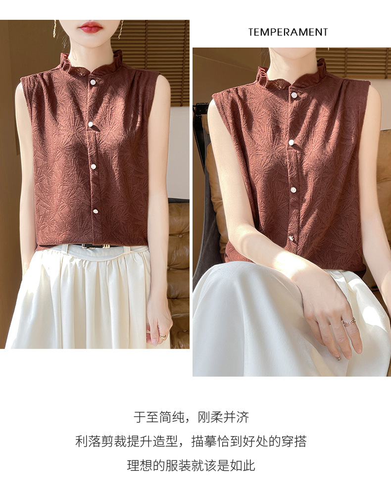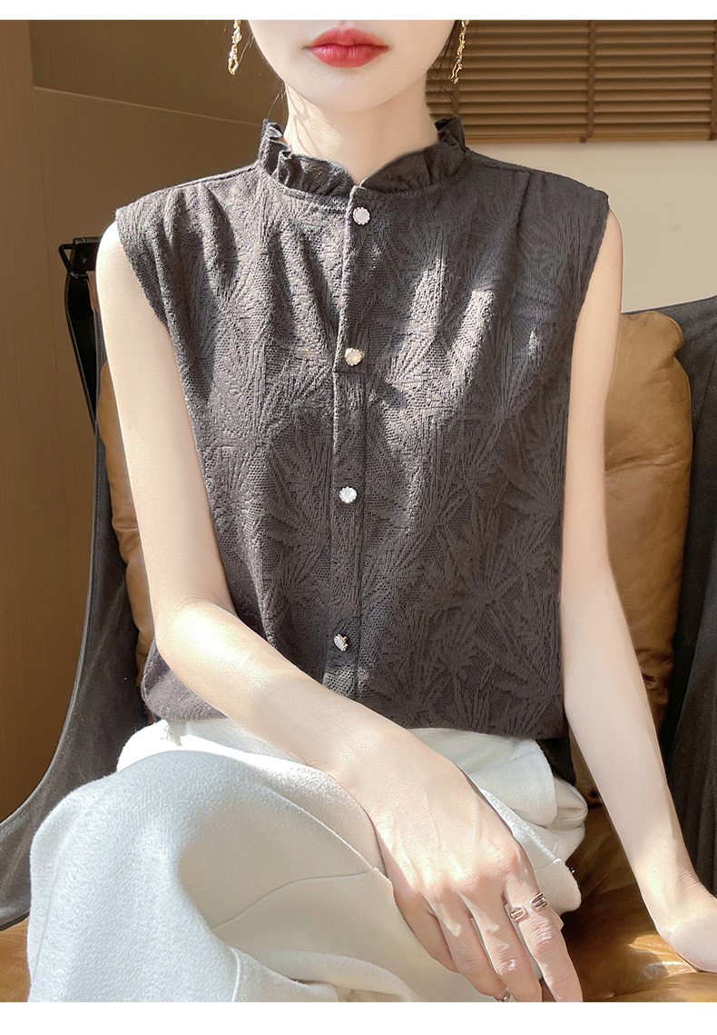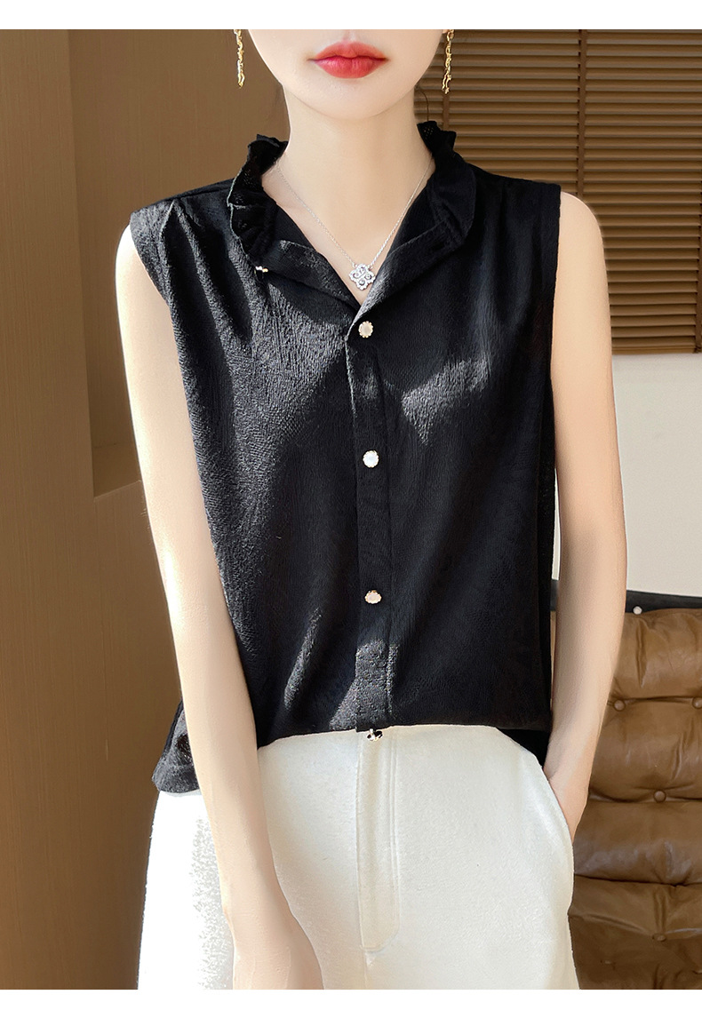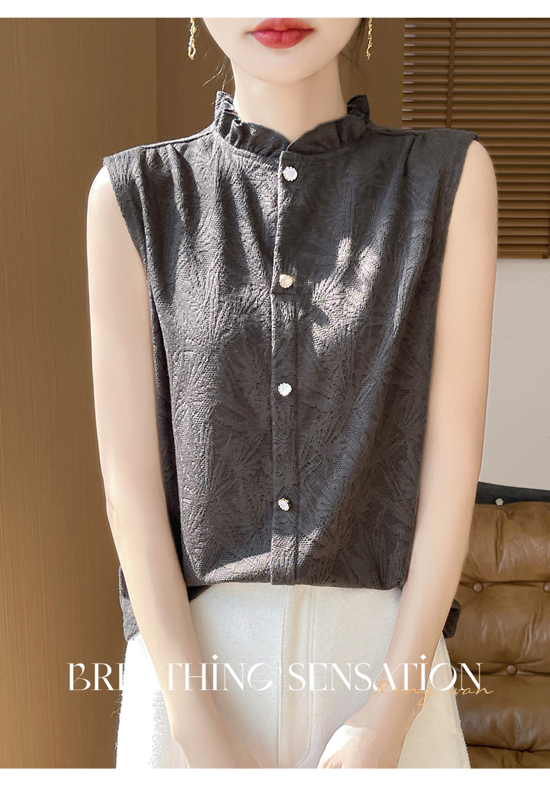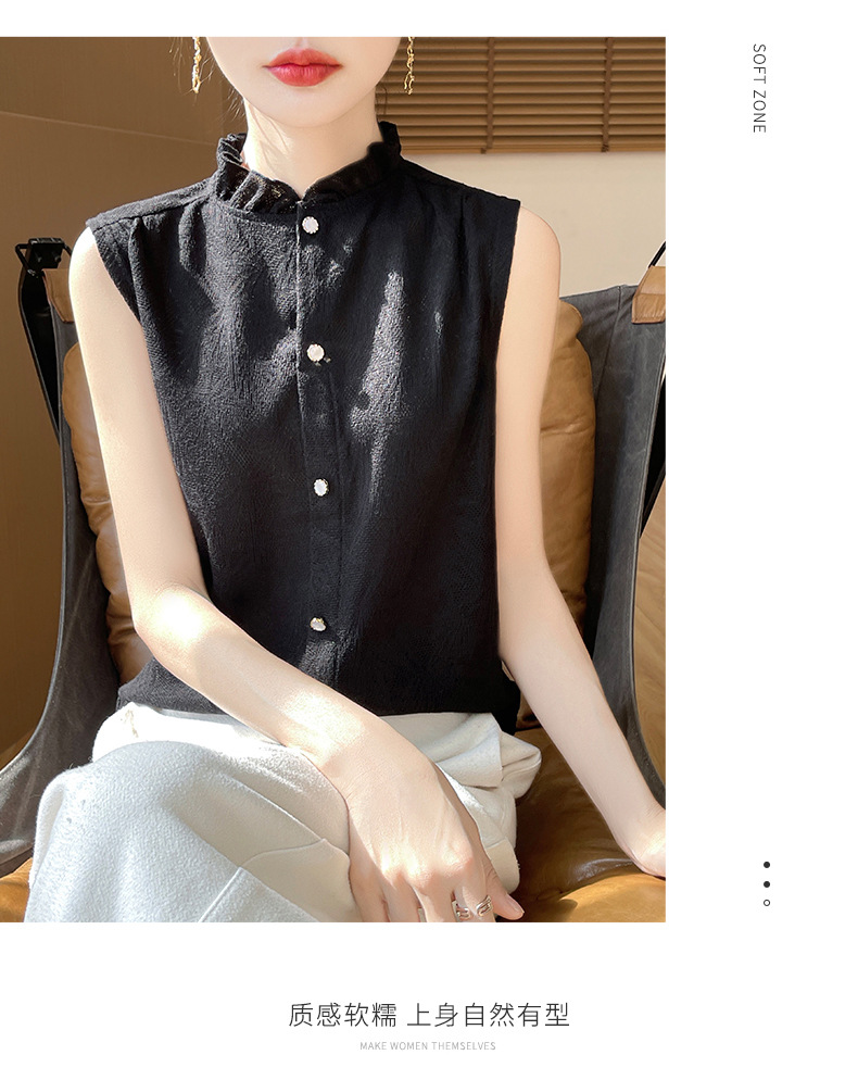 2025夏季新款女装木耳边领扣无袖打底衫上衣短款背心服饰针织衫女