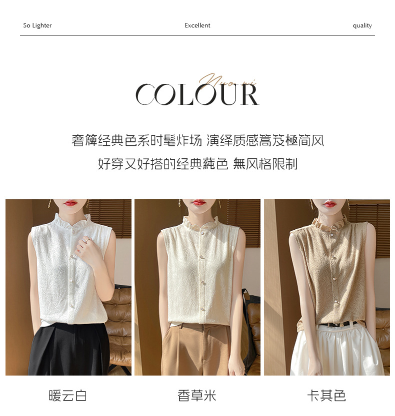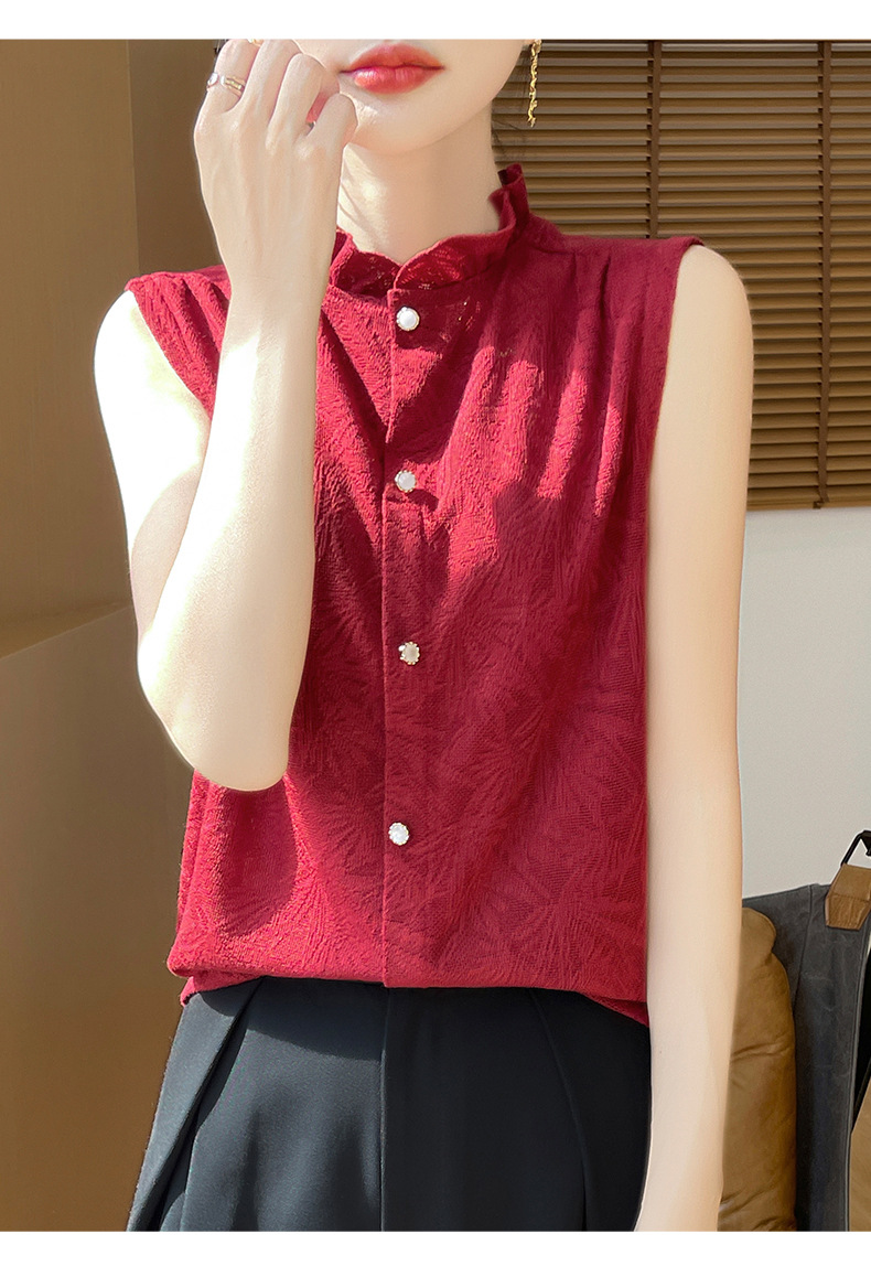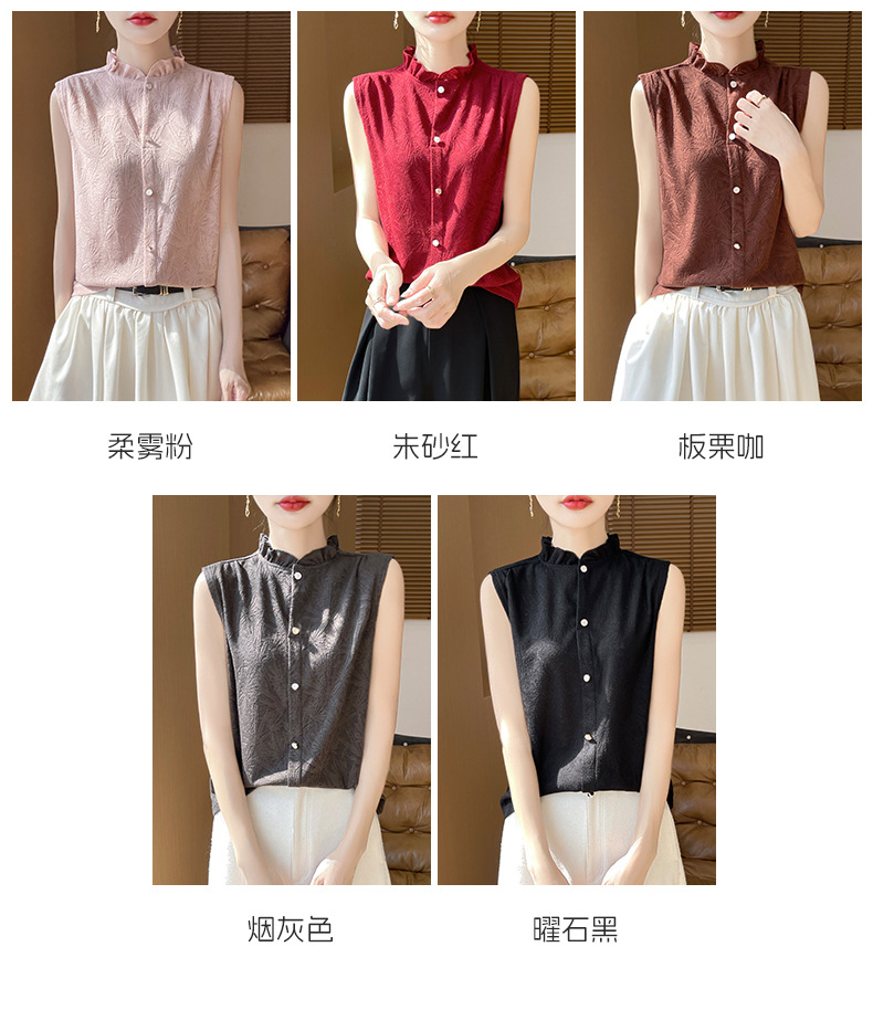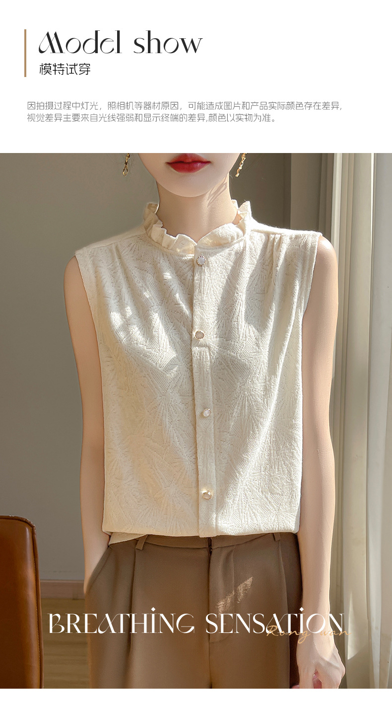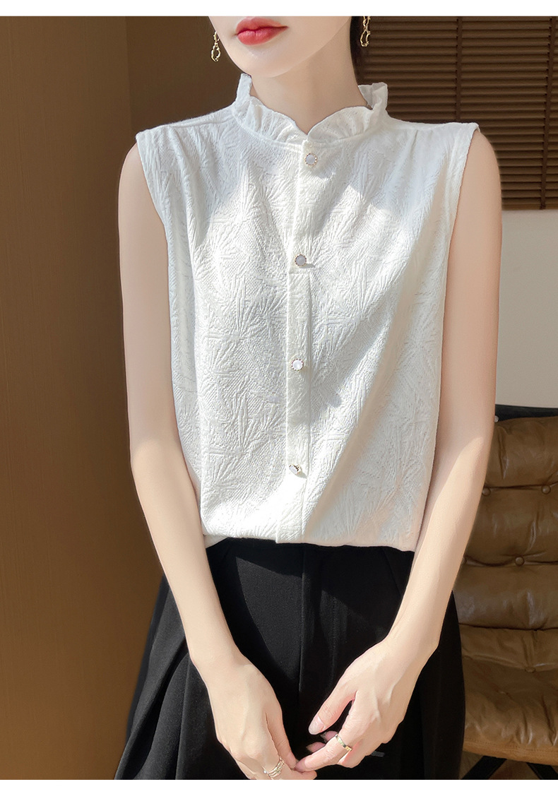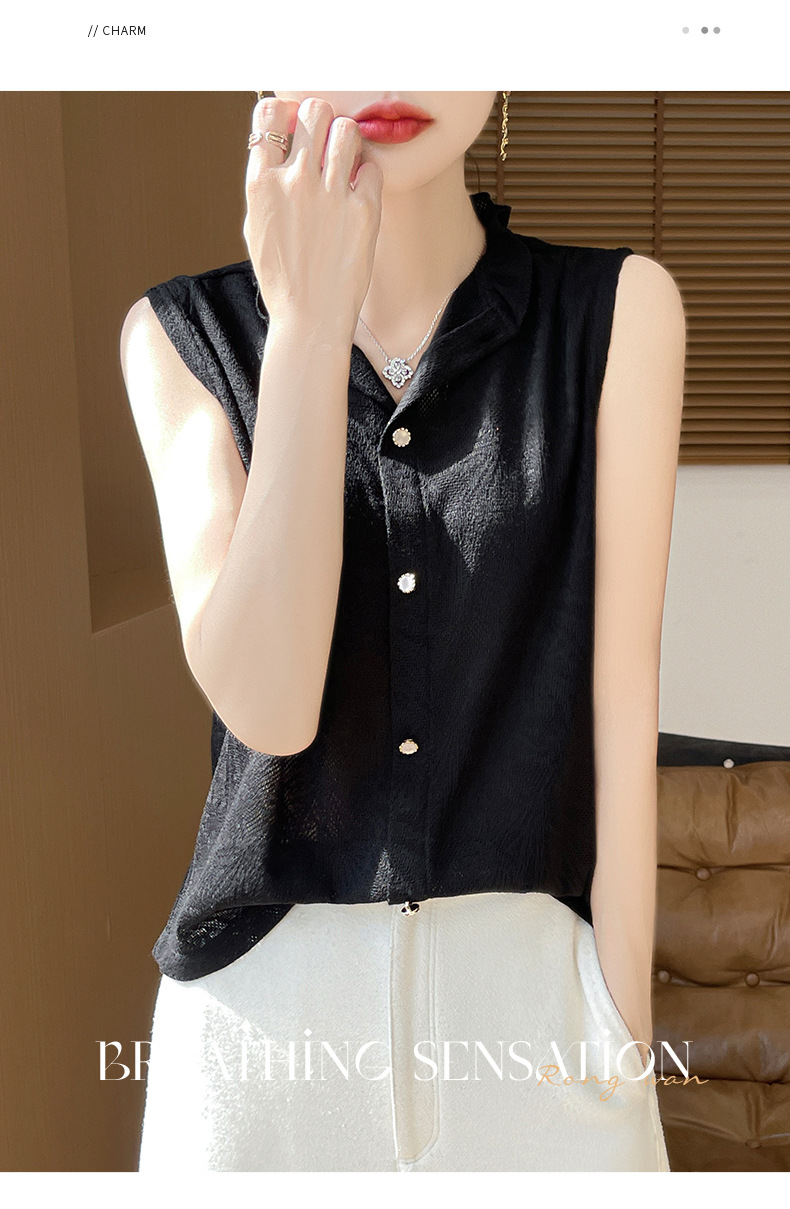 2025夏季新款女装木耳边领扣无袖打底衫上衣短款背心服饰针织衫女
