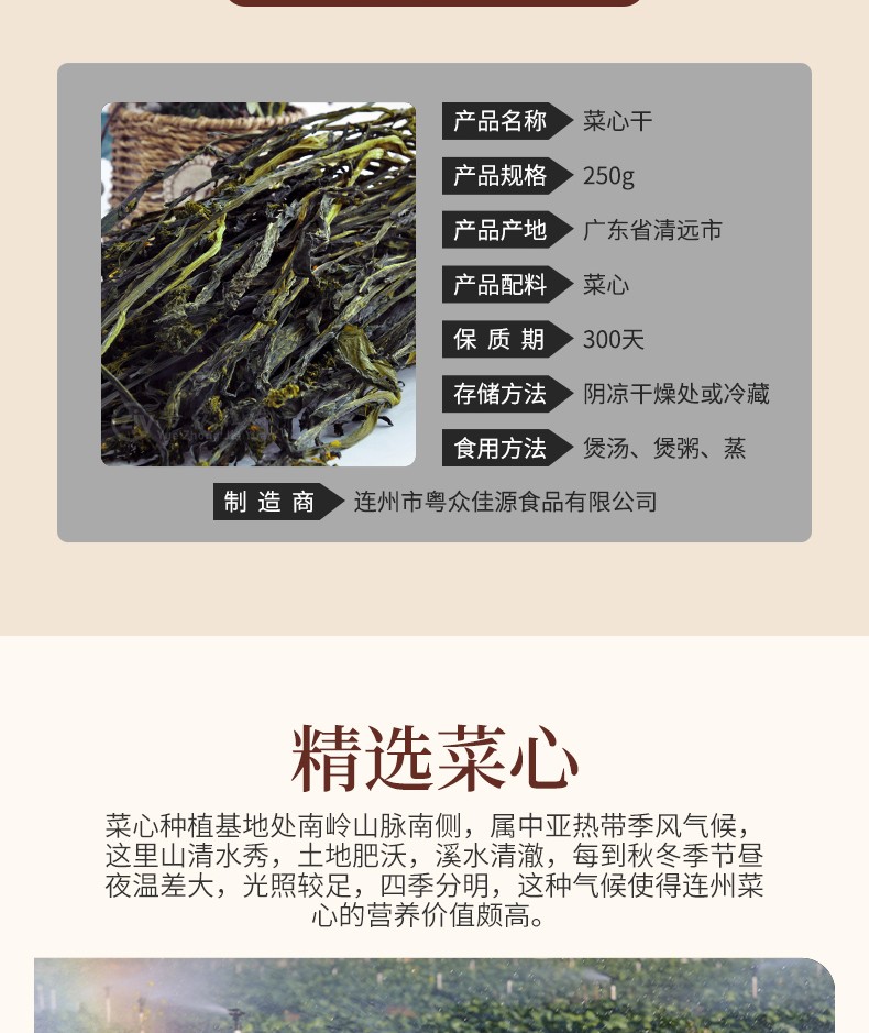 【粤众佳源】菜心干250g
