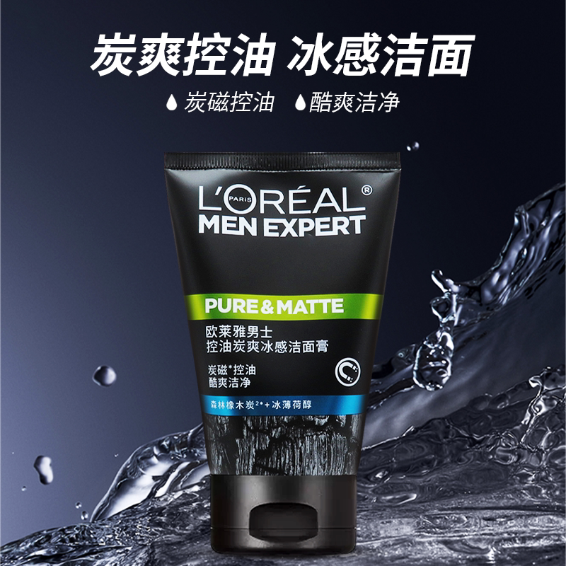 欧莱雅男士控油碳爽冰感洁面膏100ml