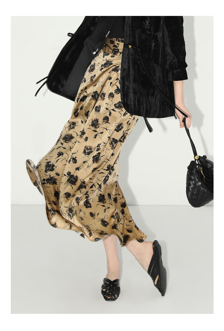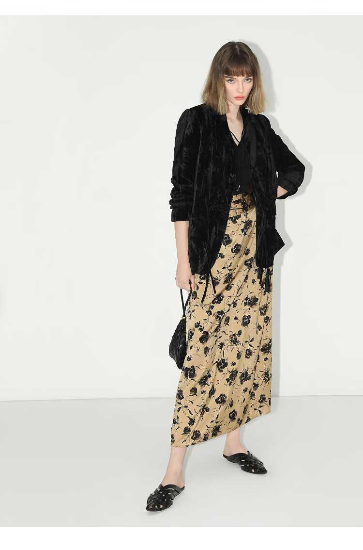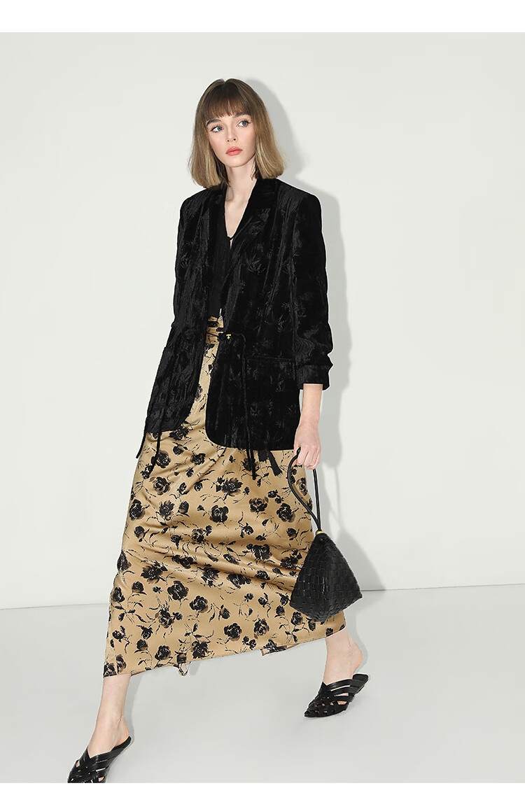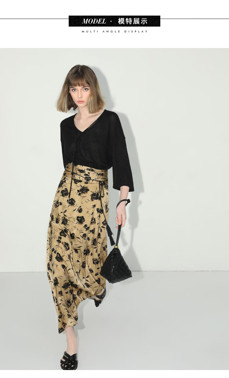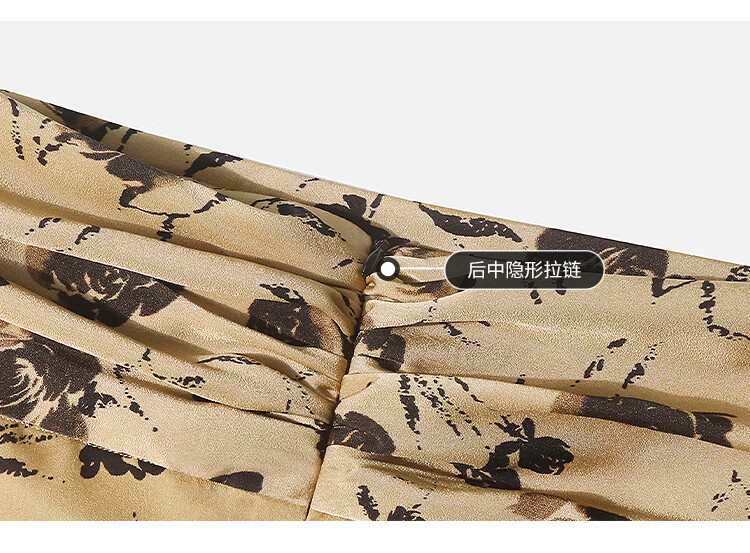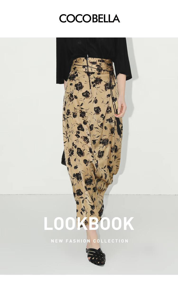 【限时秒杀】COCOBELLA国风流苏飘带高腰捏褶印花半身裙开叉直筒裙HS0019