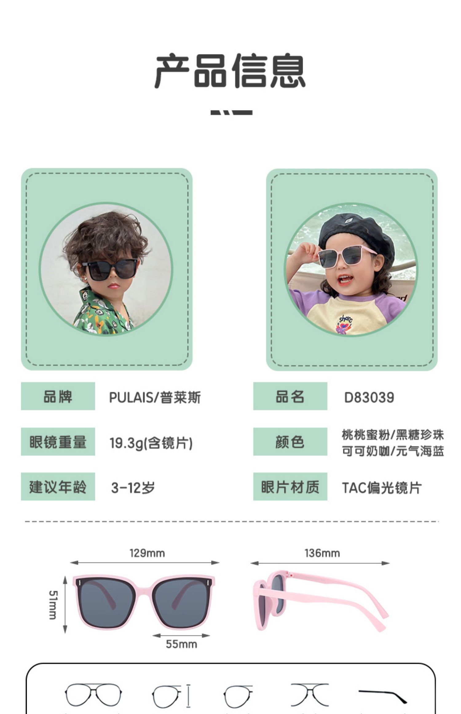 普莱斯儿童太阳镜D83039 超酷一夏 镜享眼光 硅胶材质 四色可选