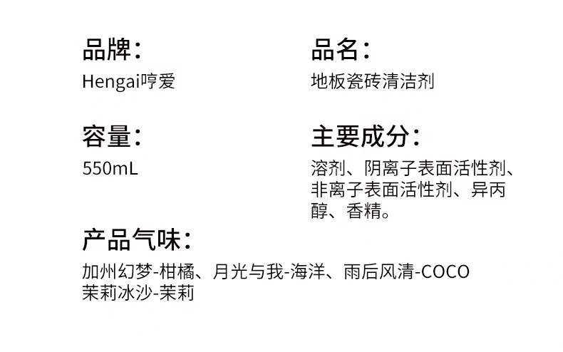 哼爱地板瓷砖清洗剂*550ml 瓷砖清洗杀菌清香拖地专用液