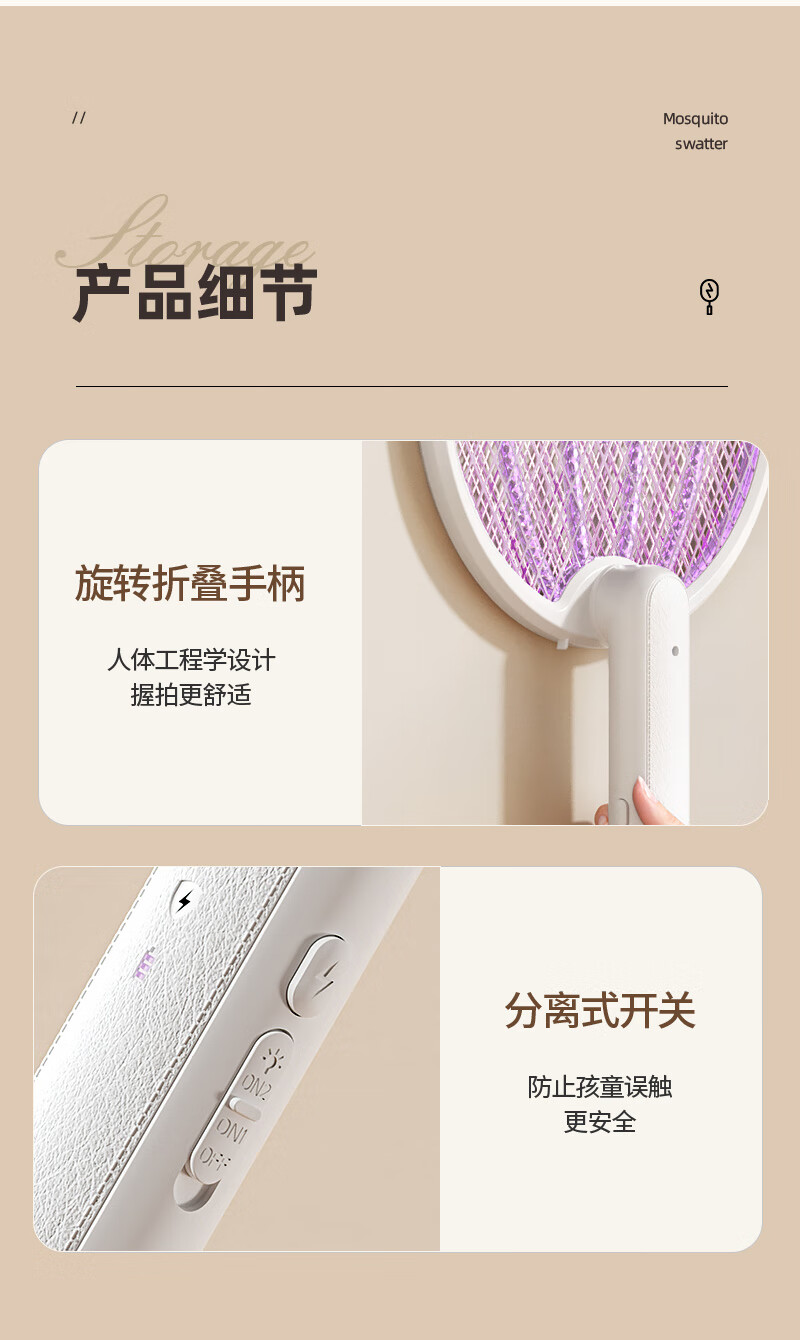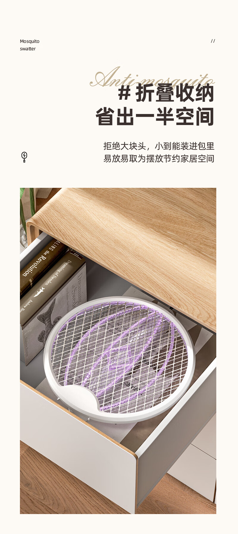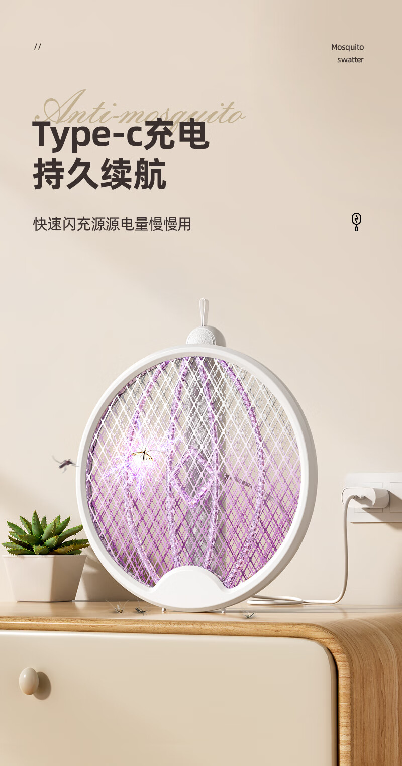 【多样屋专柜】臻邦 折叠电蚊拍 白色