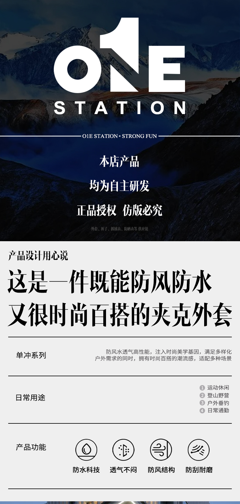 【精选】01E STATION男女同款户外潮流风衣553 面料舒适 时尚百搭