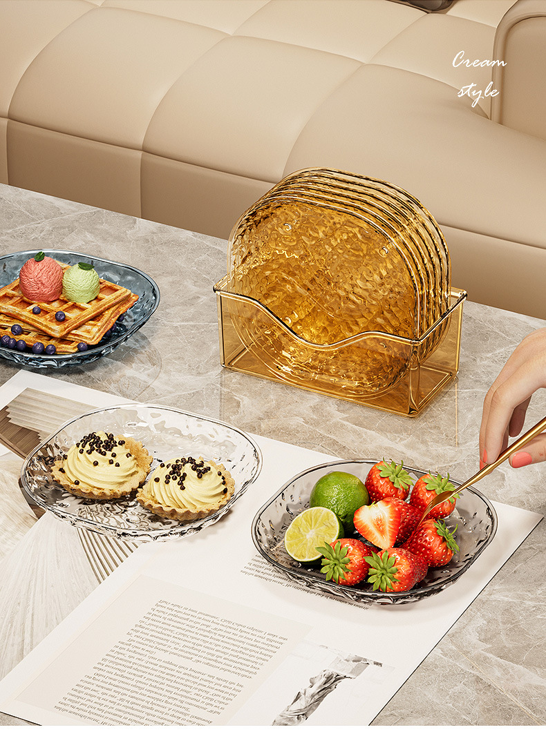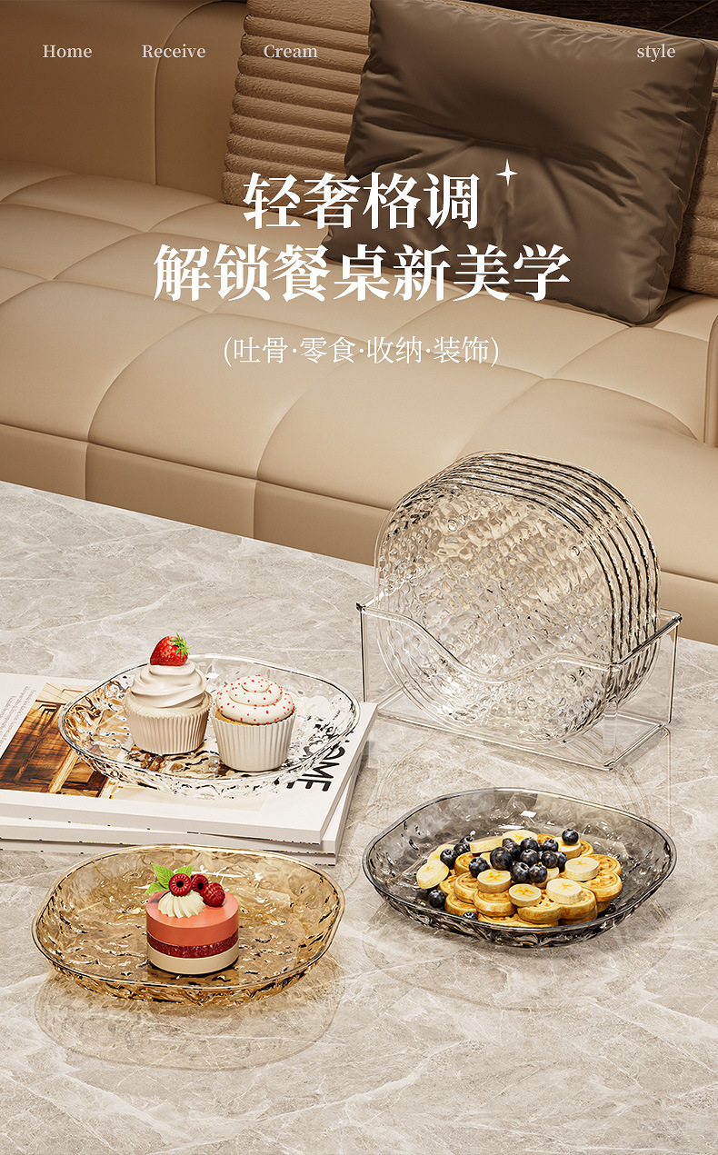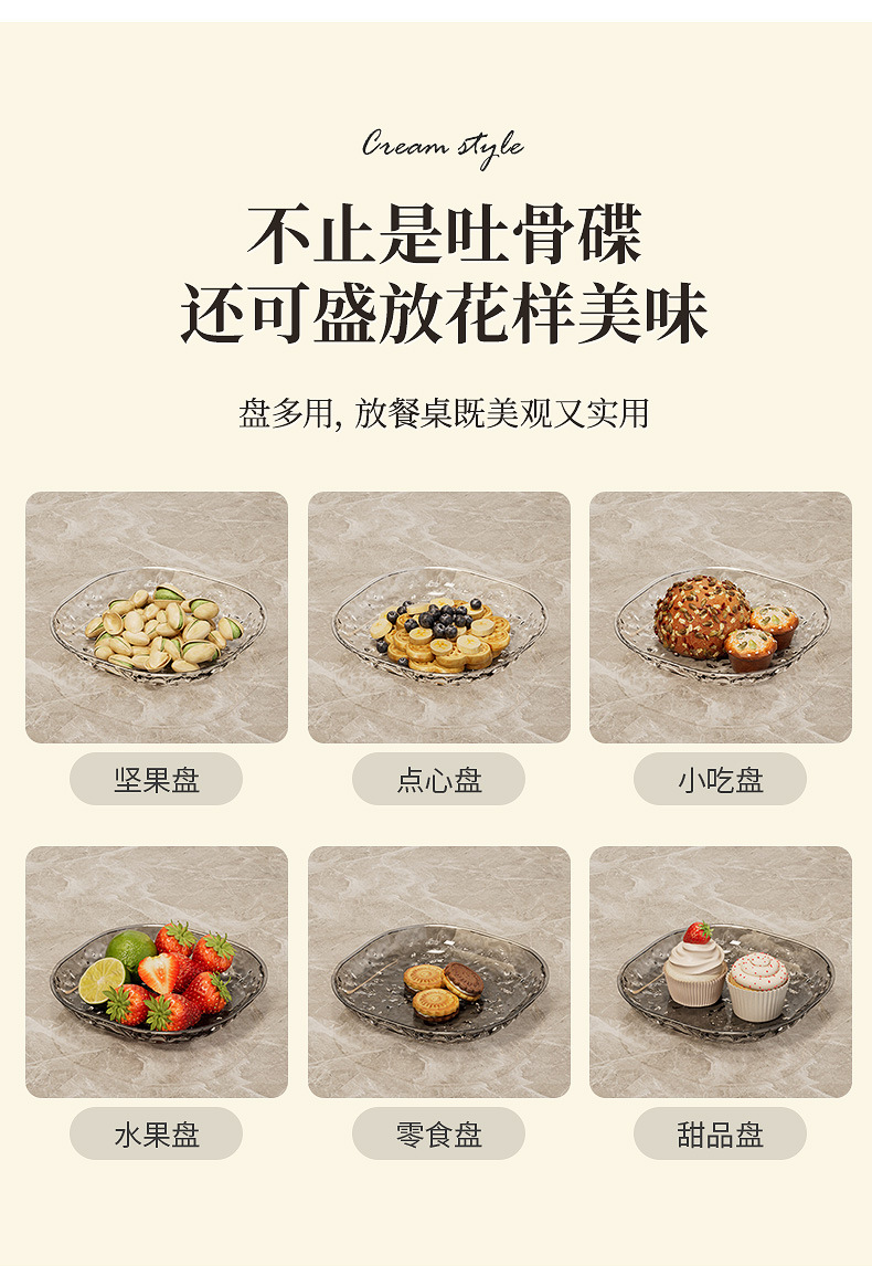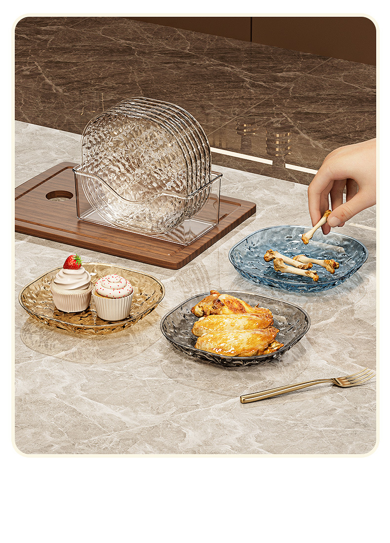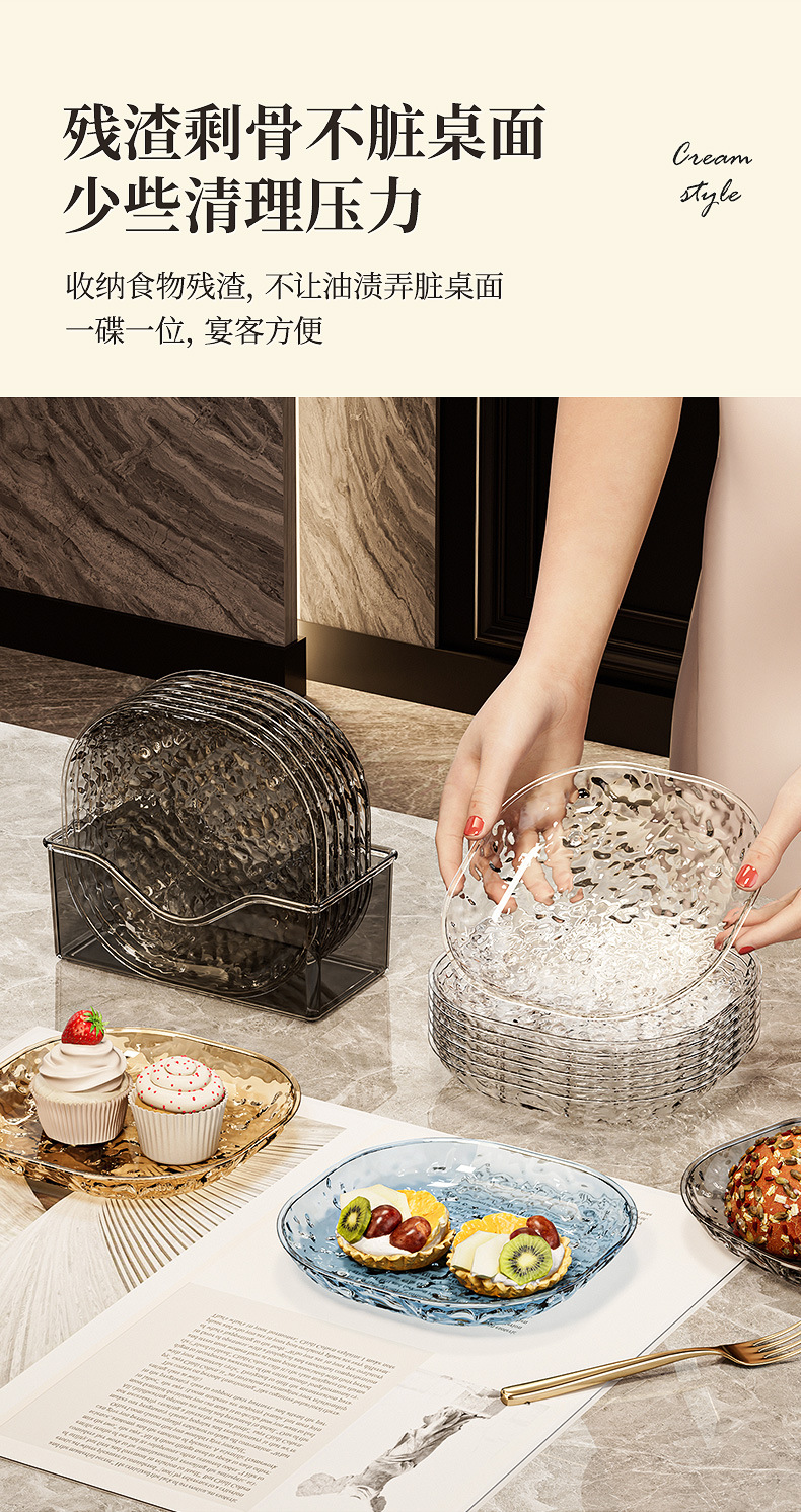 吐骨碟水波纹路家用轻奢透明小盘子食品级餐桌水果小吃碟吐骨头盘