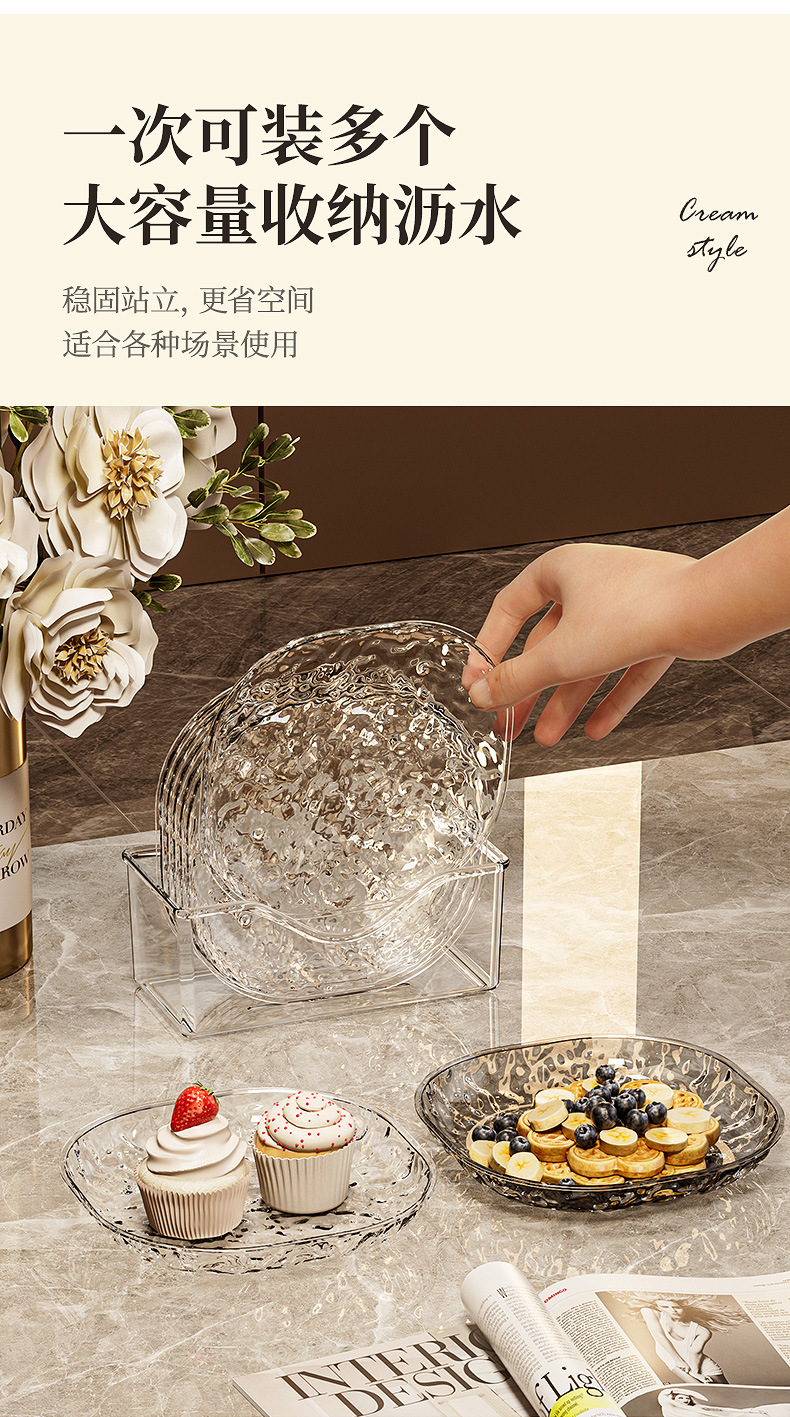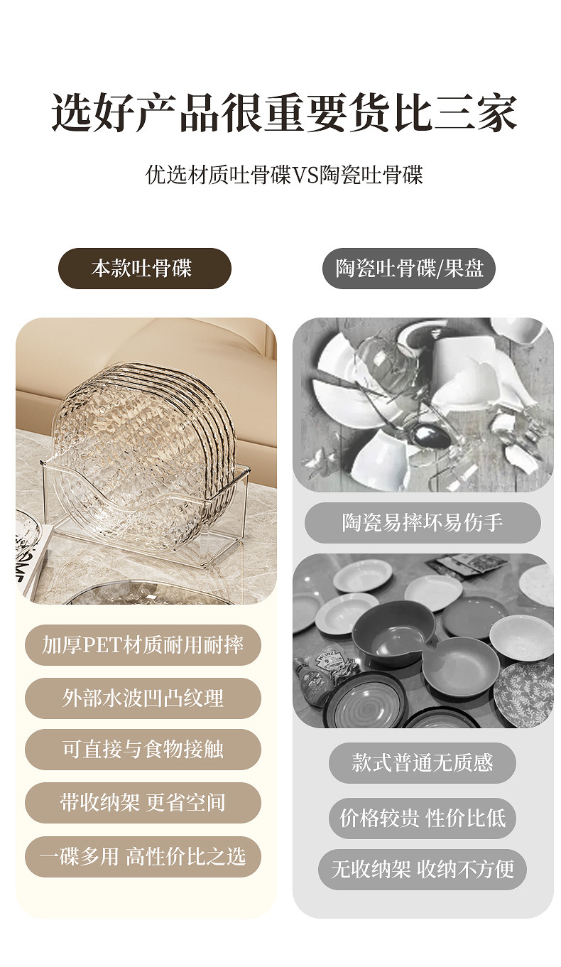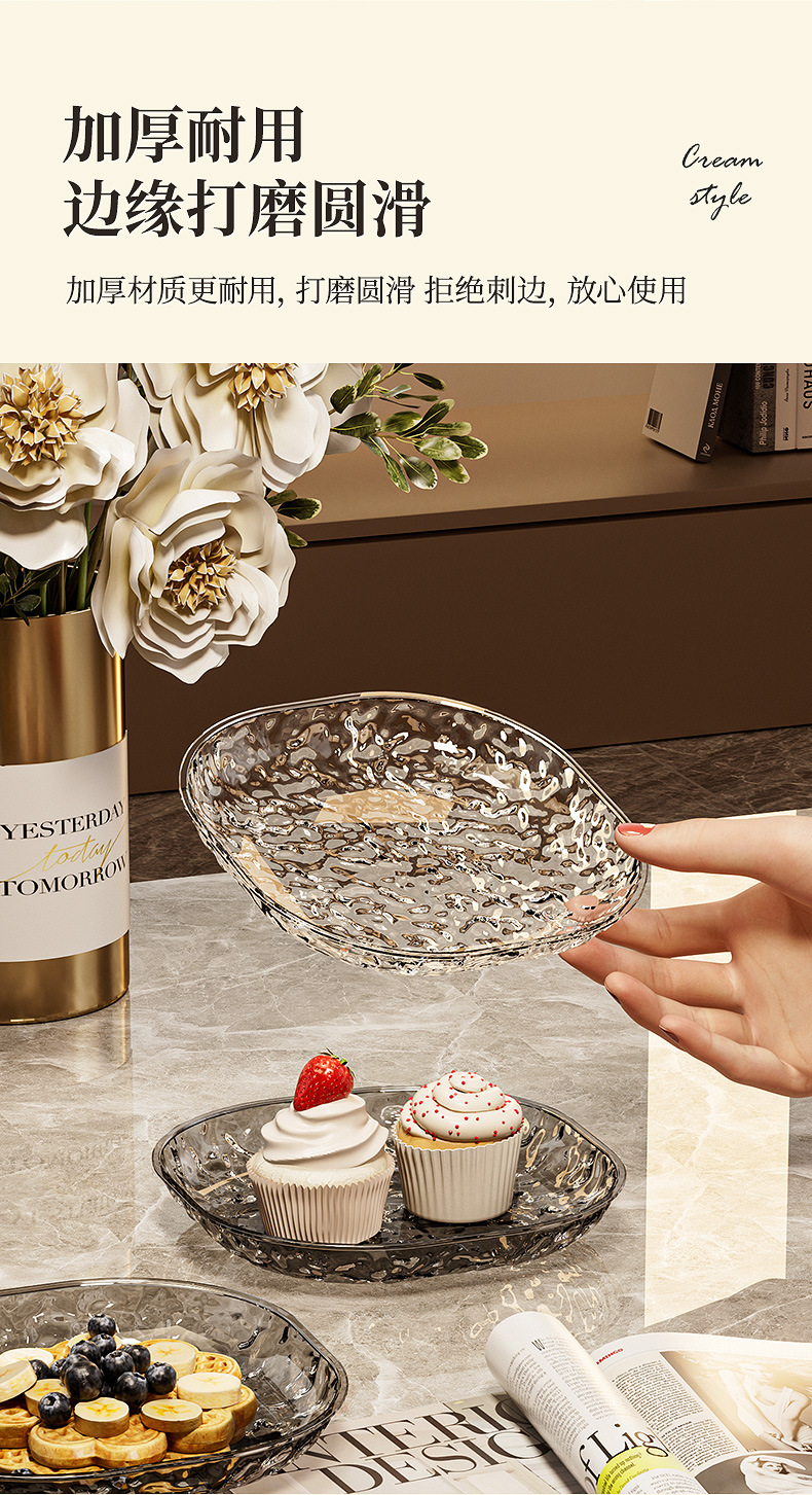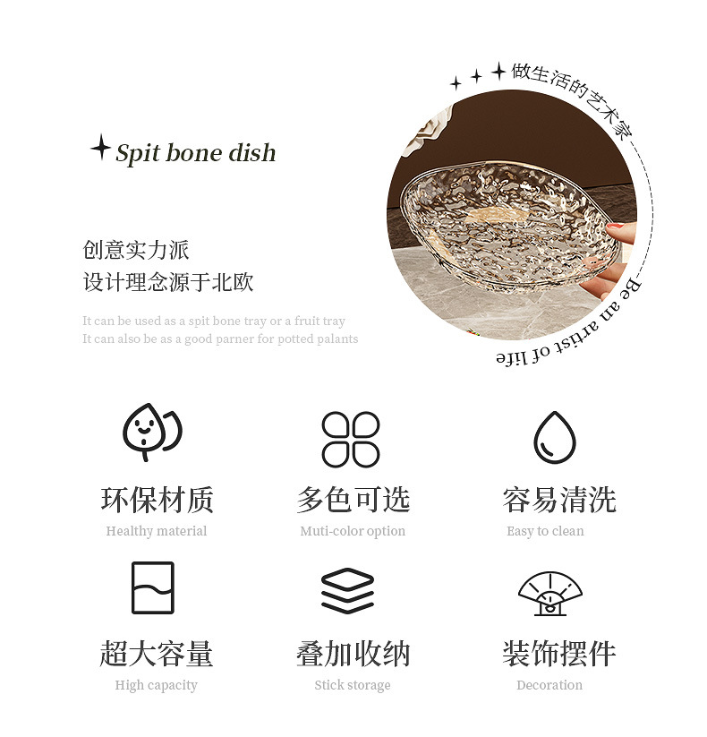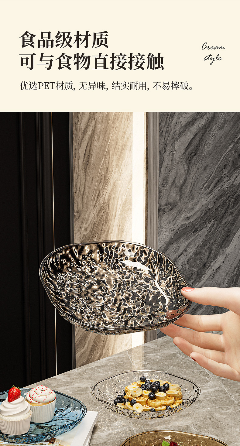 吐骨碟水波纹路家用轻奢透明小盘子食品级餐桌水果小吃碟吐骨头盘