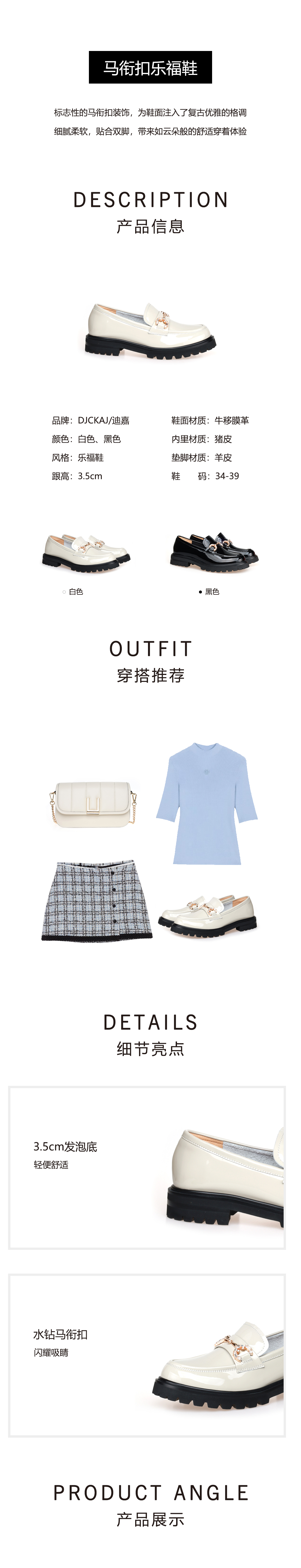 豪麟名鞋奥莱迪嘉女鞋乐福鞋DJXXO51WS201白色 原价1660元