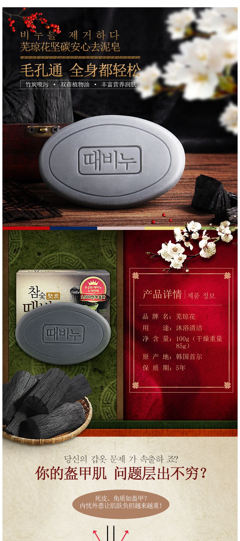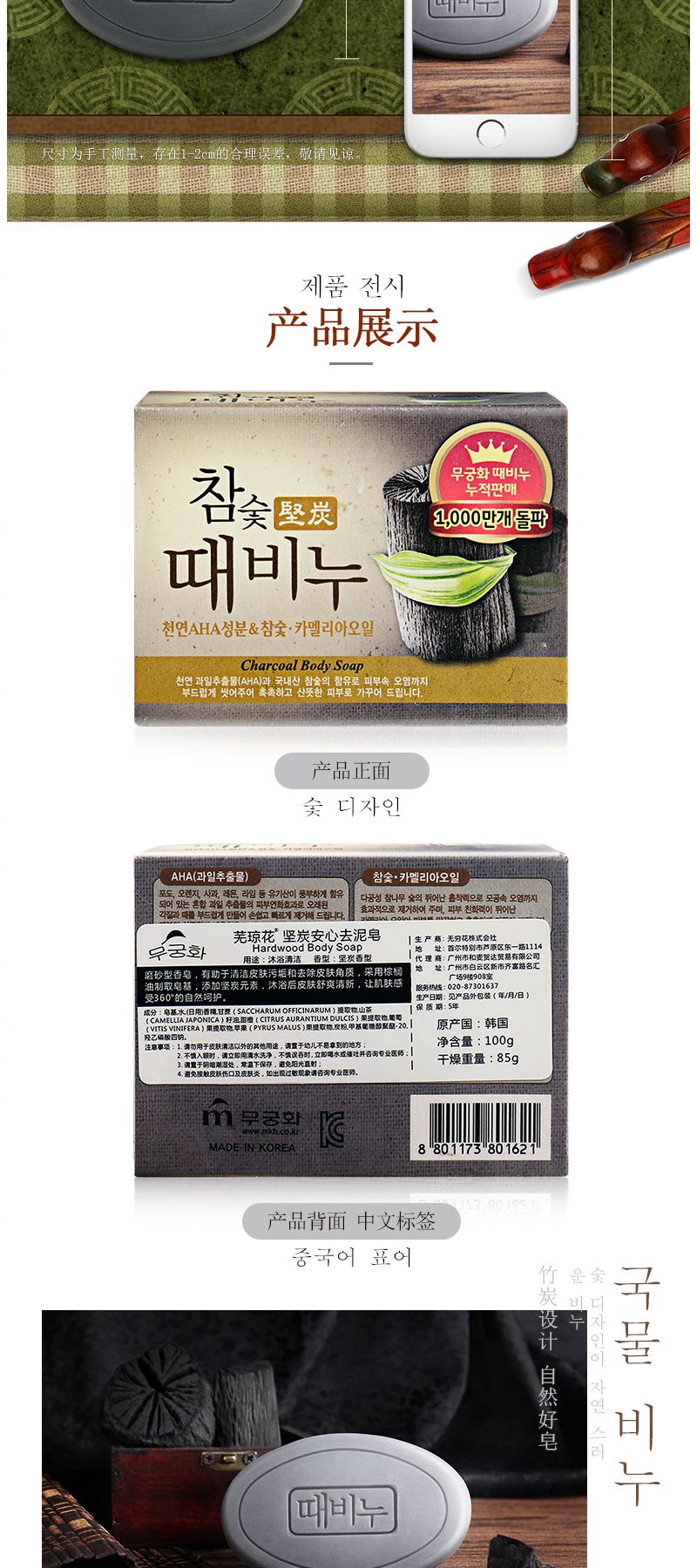 【中欧班列】韩国进口芜琼花坚炭香皂100g/块