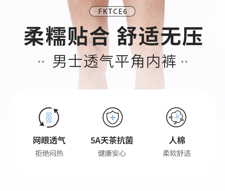 都市丽人都市锋尚内裤简约基础平角裤50S人棉罗纹抽针男士内裤FKTCE6