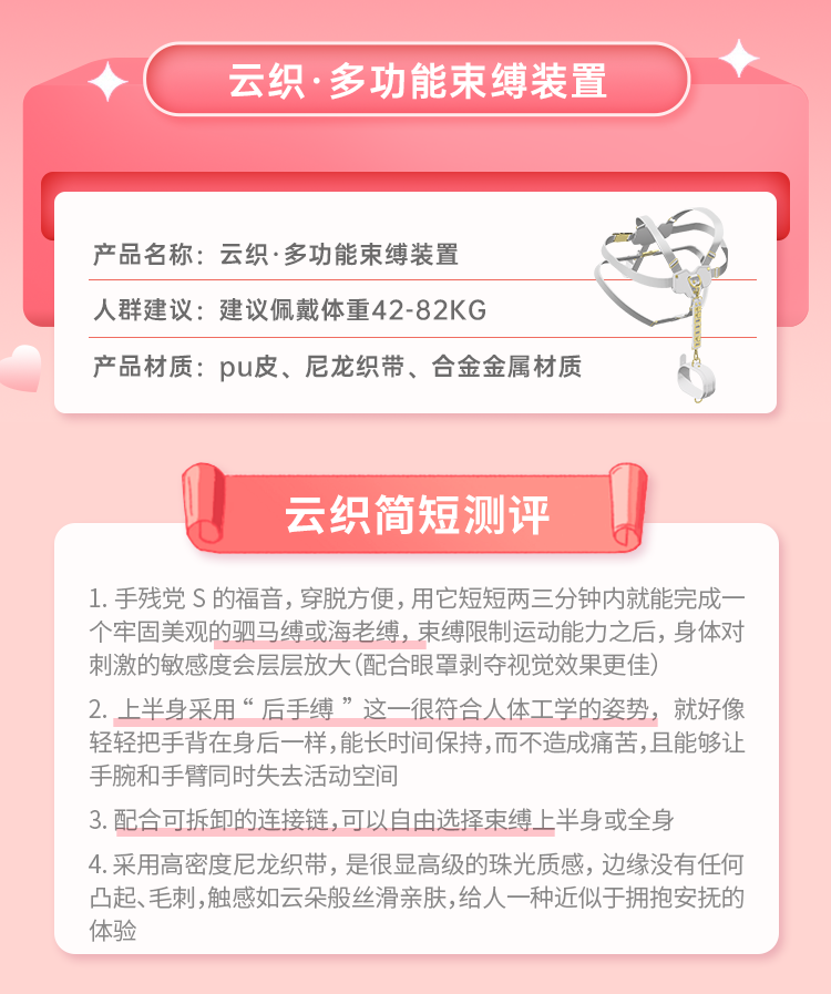 原创情趣手脚拷调教用品新手友好操作简单多功能支持海老缚云织后手缚束缚带捆绑羞耻玩具