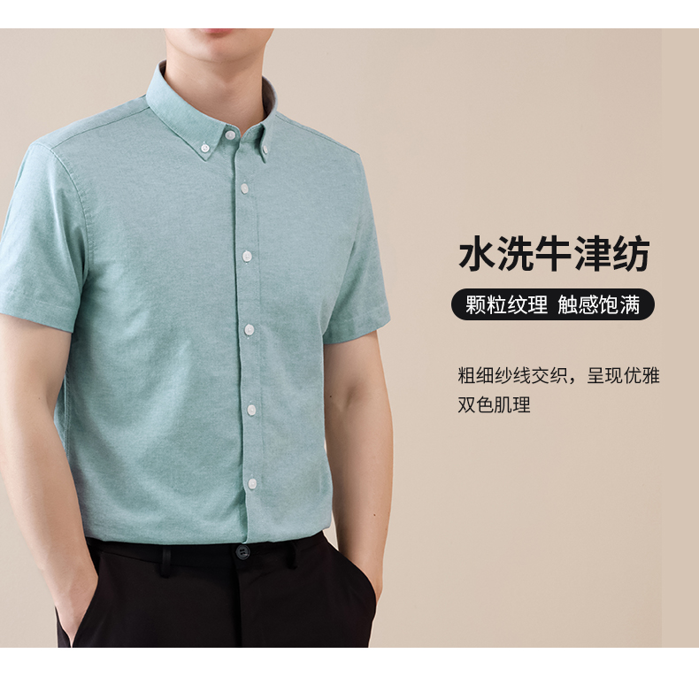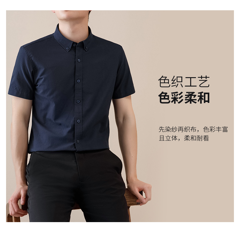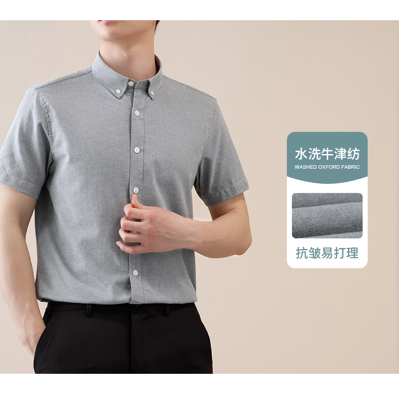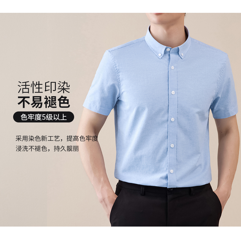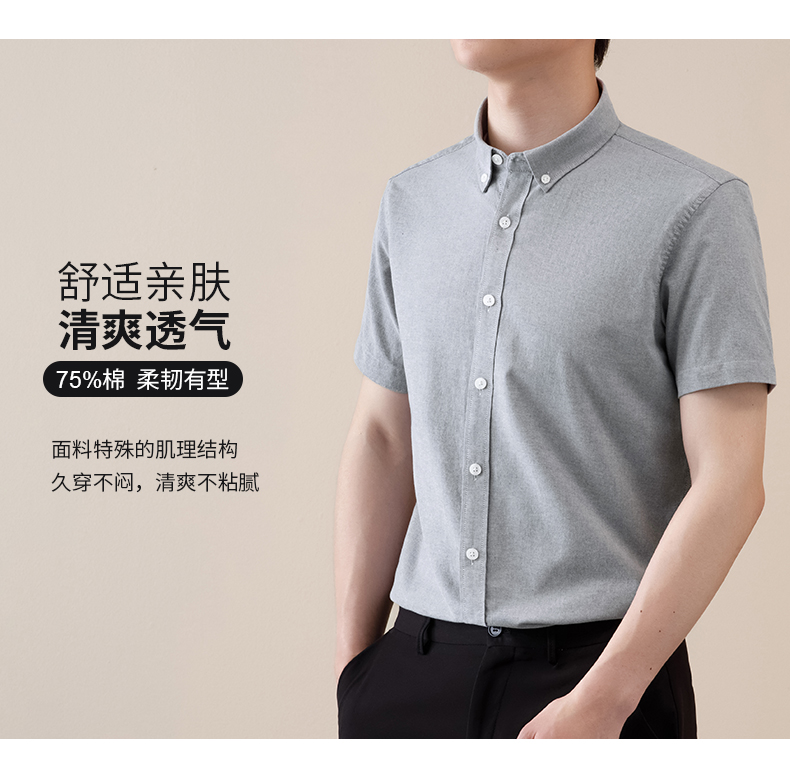 【牛津纺】罗蒙男士夏季短袖衬衫舒适百搭经典纯色简约休闲通勤上班男衬衫